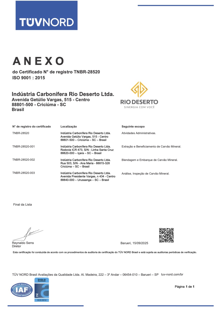 Para cumprir com as exigências de órgãos certificadores nacionais e internacionais, a Rio Deserto adota e respeita todas as medidas que asseguram as certificações. O profissionalismo, compromisso com o meio ambiente e a busca por melhorias estimulam a manutenção dos certificados.