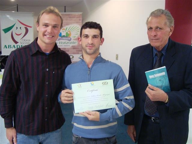 A Associação Beneficente Abadeus formou na noite desta quinta-feira oito novos profissionais na área de hidráulica e pneumática. O curso é idealizado no Projeto Novos Horizontes desenvolvido pelas empresas Rio Deserto. Conforme o professor da capacitação, Fernando Arns Rampinelli, os profissionais estão aptos para atuarem na manutenção de máquinas e equipamentos em diversas empresas da região. Valdonir Albuquerque, de 23 anos, foi um dos novos capacitados pela Abadeus. “Ainda não trabalho na área, mas o conhecimento adquirido é único e imensurável” comentou o morador de Morro da Fumaça.