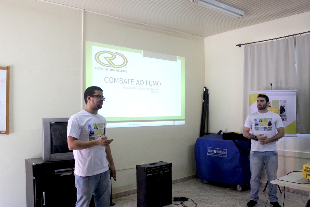 As Empresas Rio Deserto, por meio do departamento médico, estão promovendo ações de conscientização quanto aos malefícios do fumo. A campanha contra o tabagismo é composta por várias atividades, que envolvem tanto os colaboradores quanto as comunidades onde as unidades estão inseridas. A campanha é realizada todos os anos e se intensifica em meados do mês de agosto, quando se comemora o Dia Nacional de Combate ao Fumo. A iniciativa faz parte do calendário de ações do Programa Qualidade de Vida e Saúde.