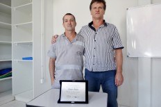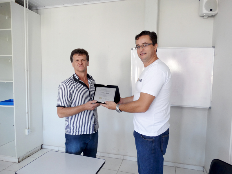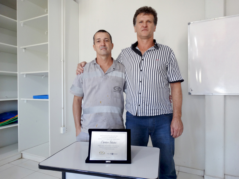 A placa de reconhecimento foi entregue pelo analista de Planejamento, Programação e Controle de Produção (PPCP), Reginaldo Manentti, que representou a gerência da Unidade de Extração Mina Novo Horizonte, e pela assistente de recursos humanos da empresa, Nathalia Silveira Machado. “Edmilson era disposto e muito prestativo, sempre ajudava a todos. Sem dúvida, um excelente profissional”, disse Manentti.
