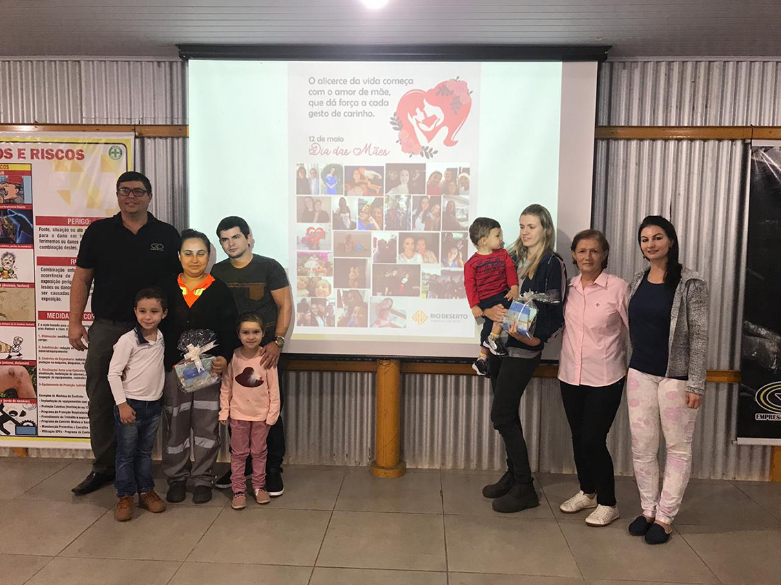 Abraço, reflexão, música, emoção. Em todas as unidades da Rio Deserto, o Dia das Mães, comemorado no domingo, dia 12, foi celebrado de forma especial. No decorrer da última semana, as 24 mães que fazem parte do quadro funcional da empresa foram contempladas com uma nécessaire (bolsa para guardar objetos de uso pessoal) e uma toalha de rosto, ambas personalizadas com o nome da colaboradora e da empresa.