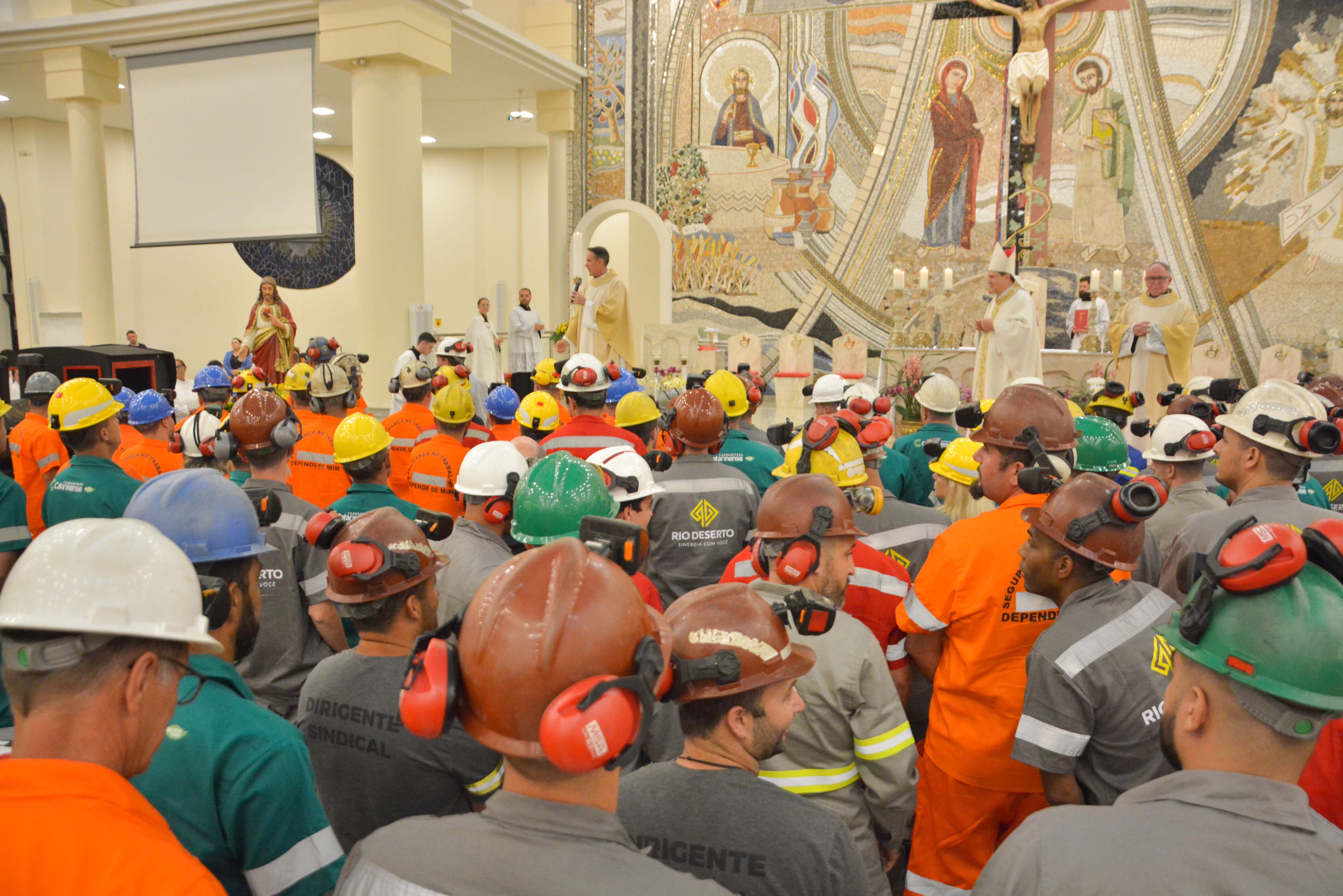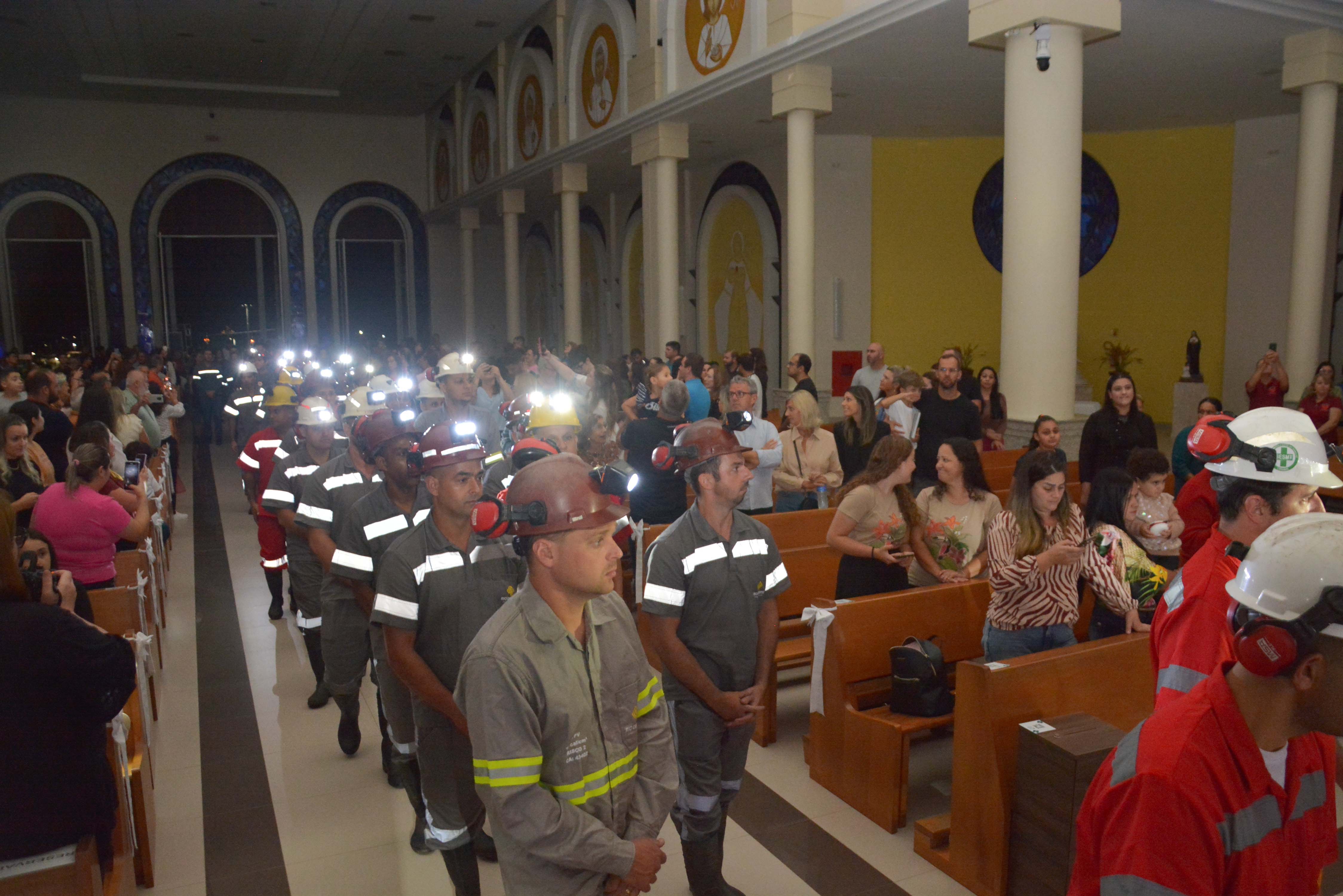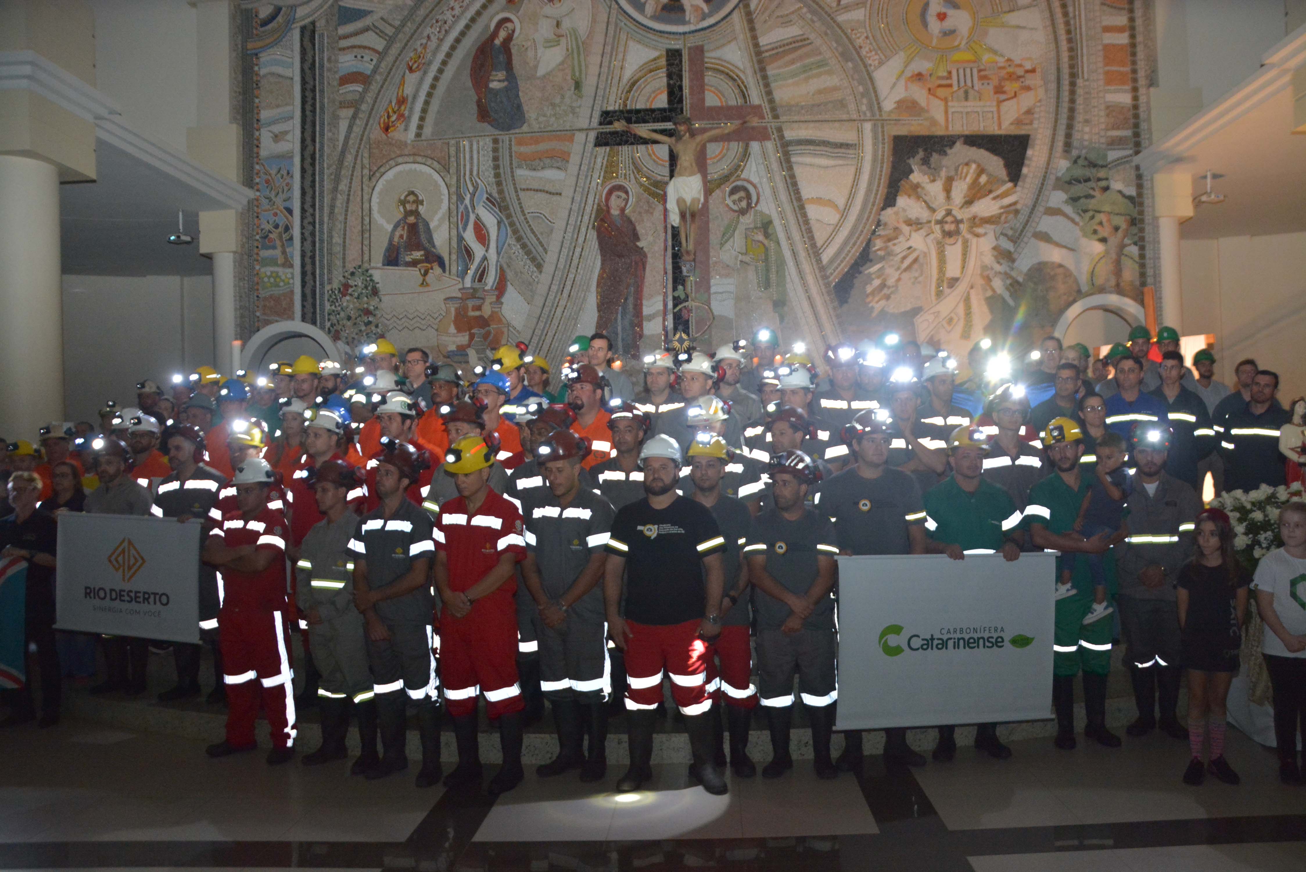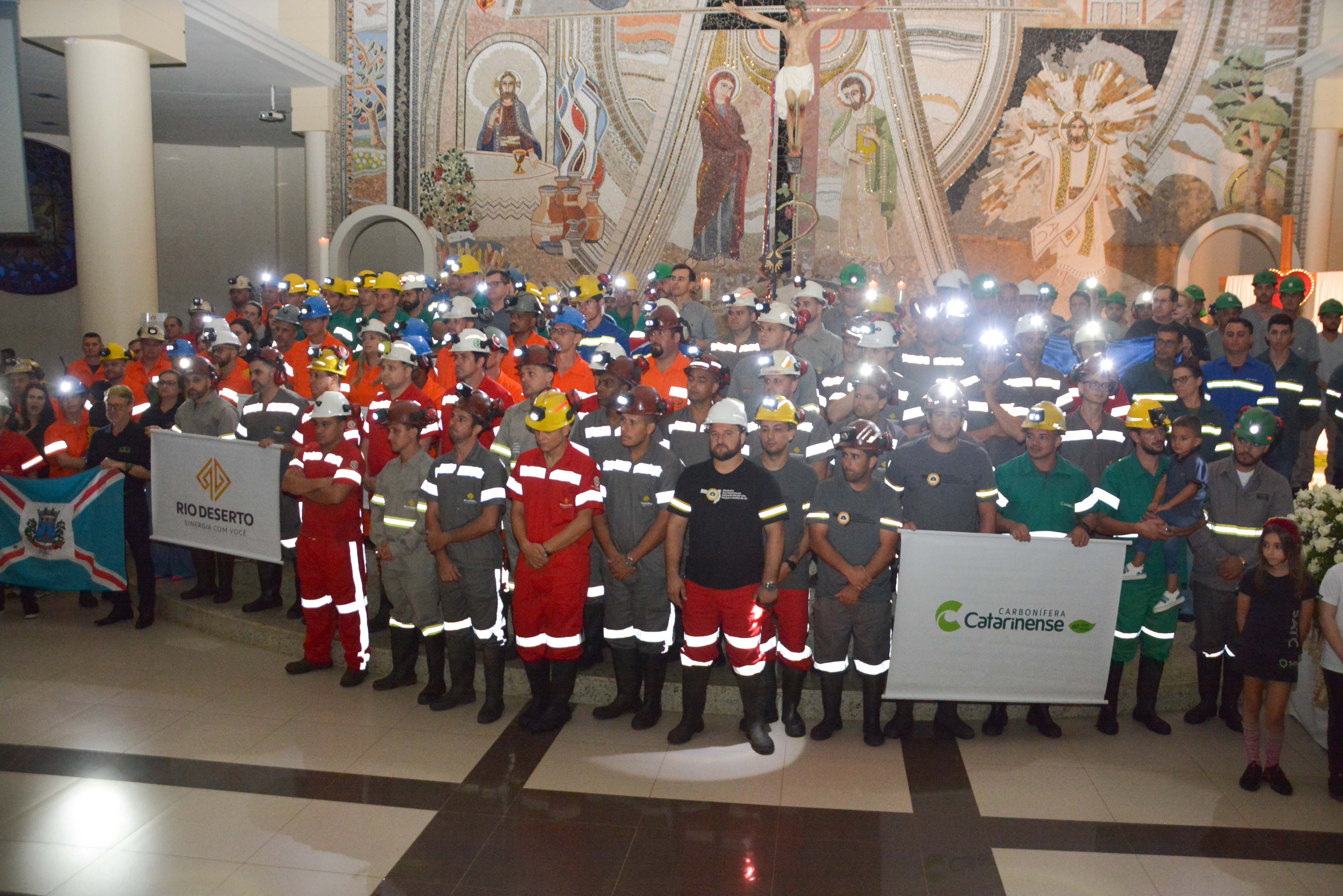 Com uniformes de trabalho, capacetes e lanternas, os mineiros entraram no Santuário levando as bandeiras dos municípios onde há mineração, bem como os banners das empresas em que atuam. Também levaram a imagem da padroeira Santa Bárbara e a réplica de uma locomotiva, representando o transporte do carvão mineral. Entre os momentos mais marcantes, destaque para a Bênção dos Capacetes, quando os mineiros de todas as carboníferas se reuniram em torno do altar.