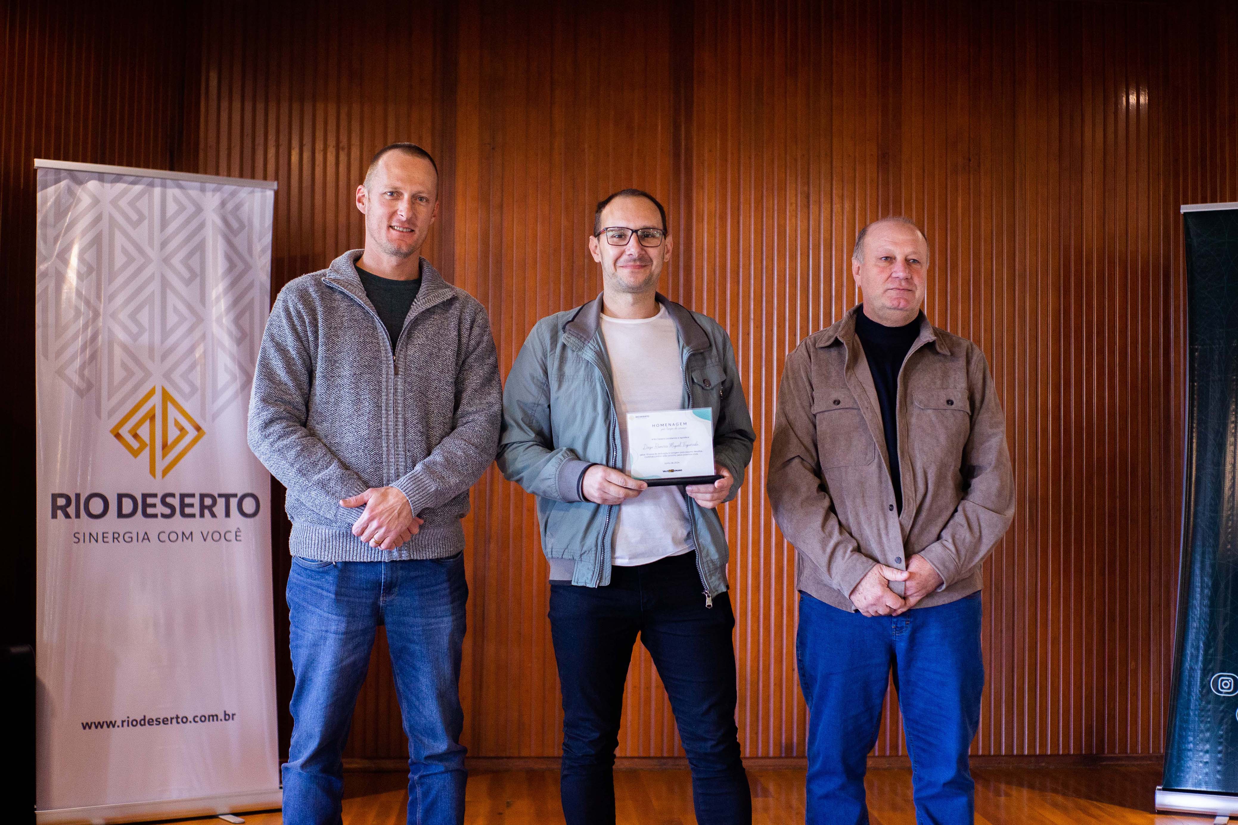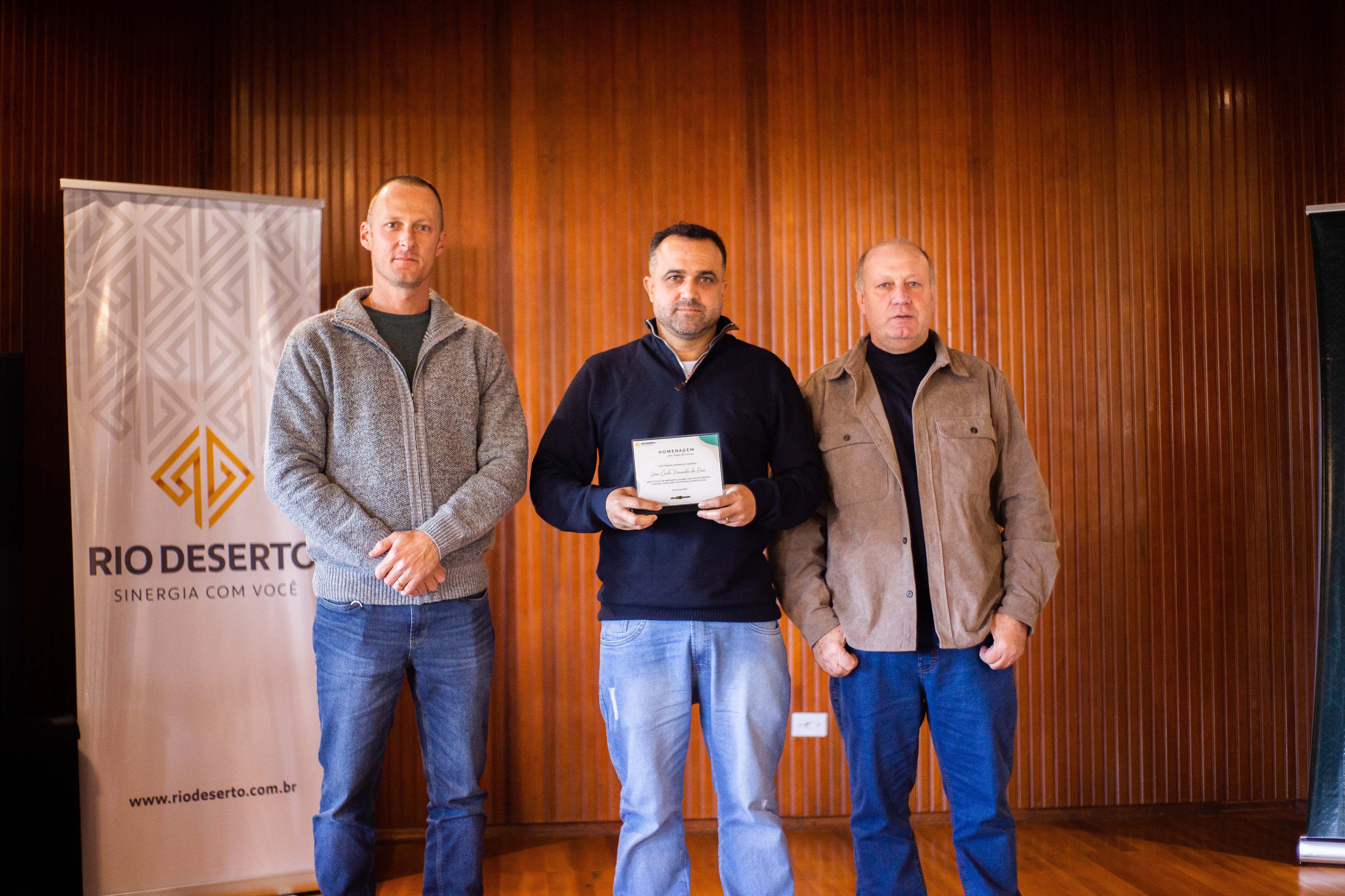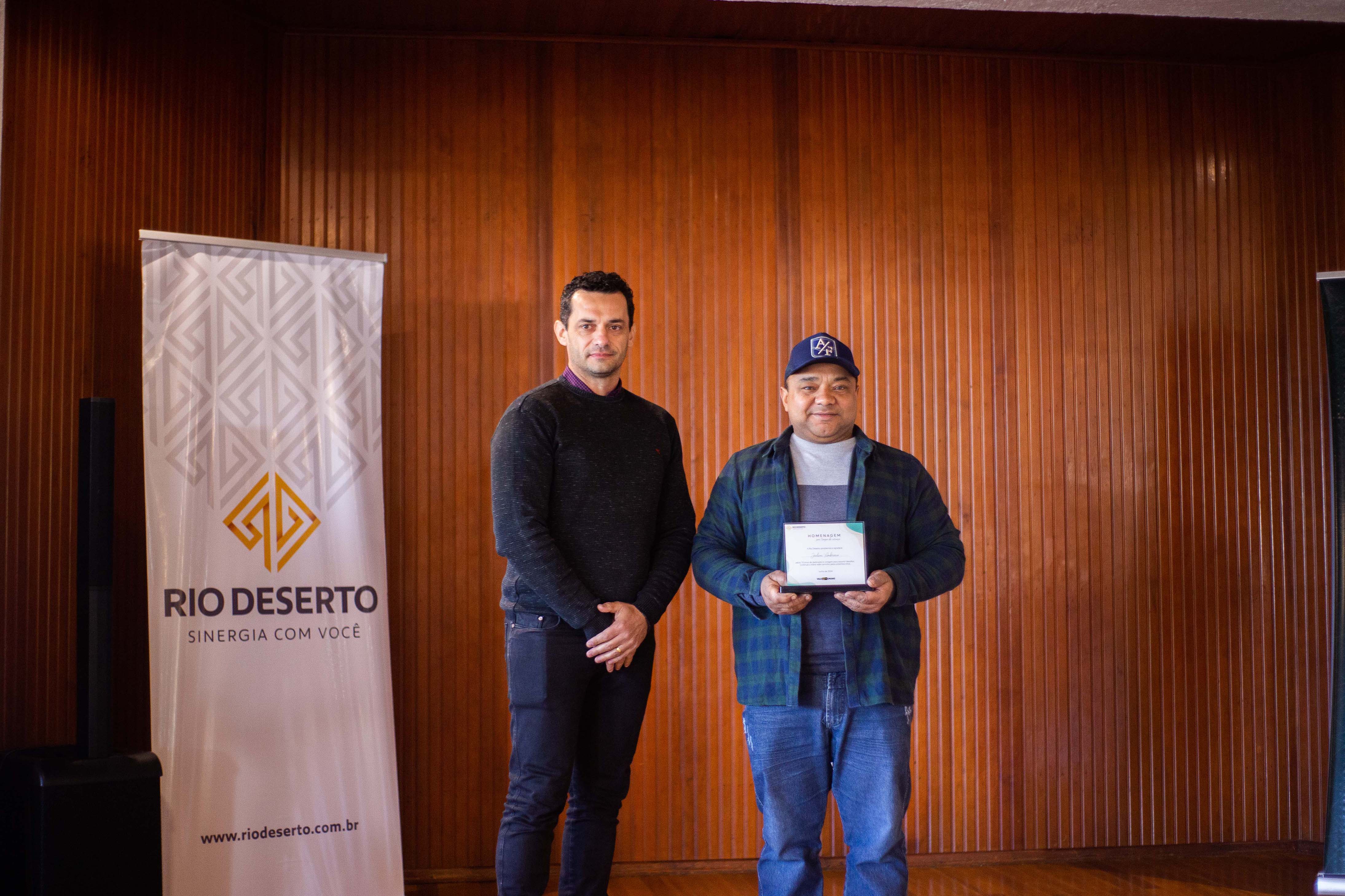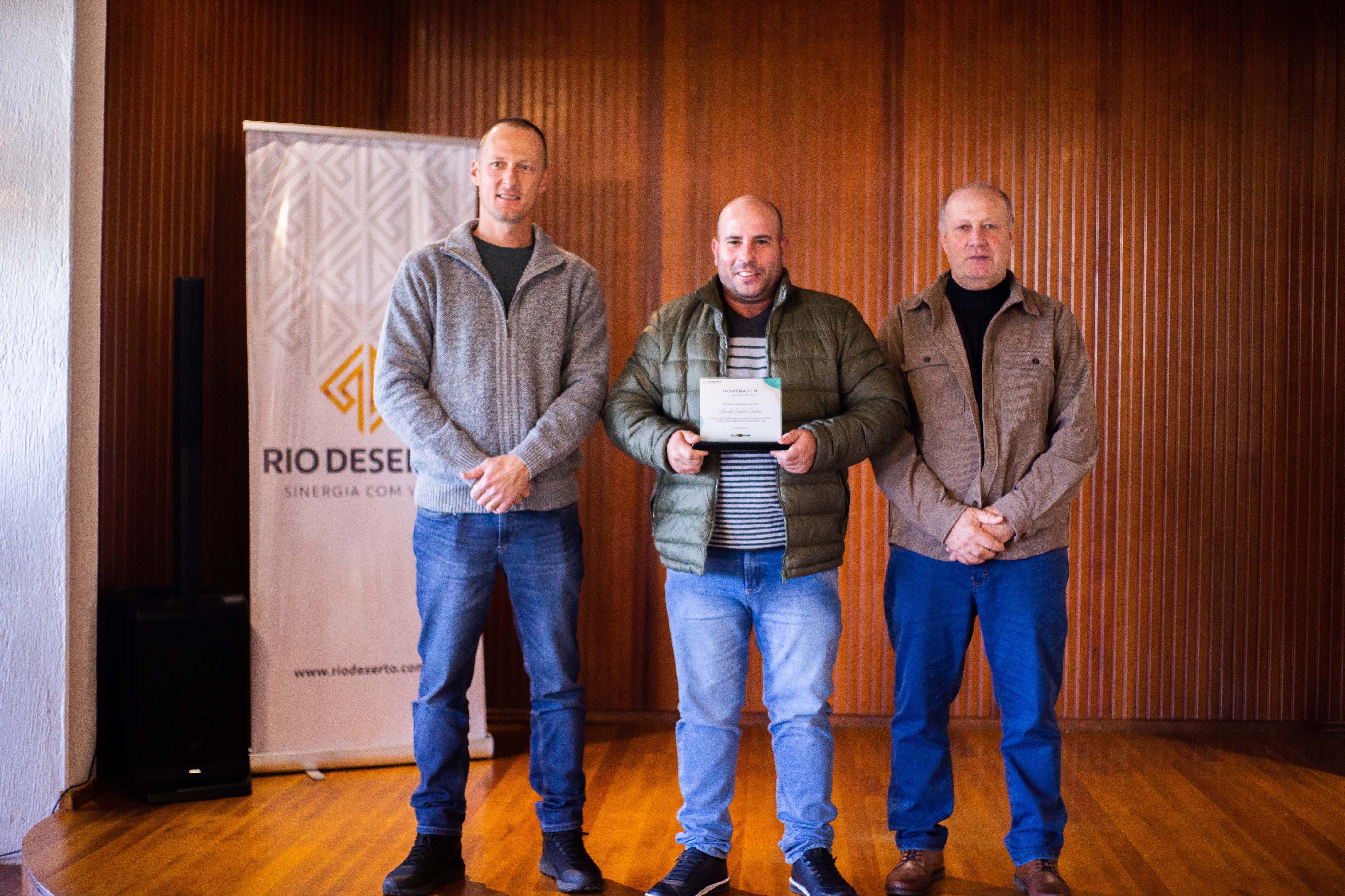 Outro homenageado, Paulo Sérgio da Rosa, falou do orgulho em estar na empresa. “Agradeço todos os dias pela oportunidade de trabalhar na Rio Deserto. Tudo o que tenho foi conquistado por meio do trabalho”, ressaltou. Segundo ele, a dedicação foi exemplo também para os filhos. “Tive a felicidade de ver a minha filha e o meu filho participarem do programa Jovem Aprendiz da empresa”, sublinhou.