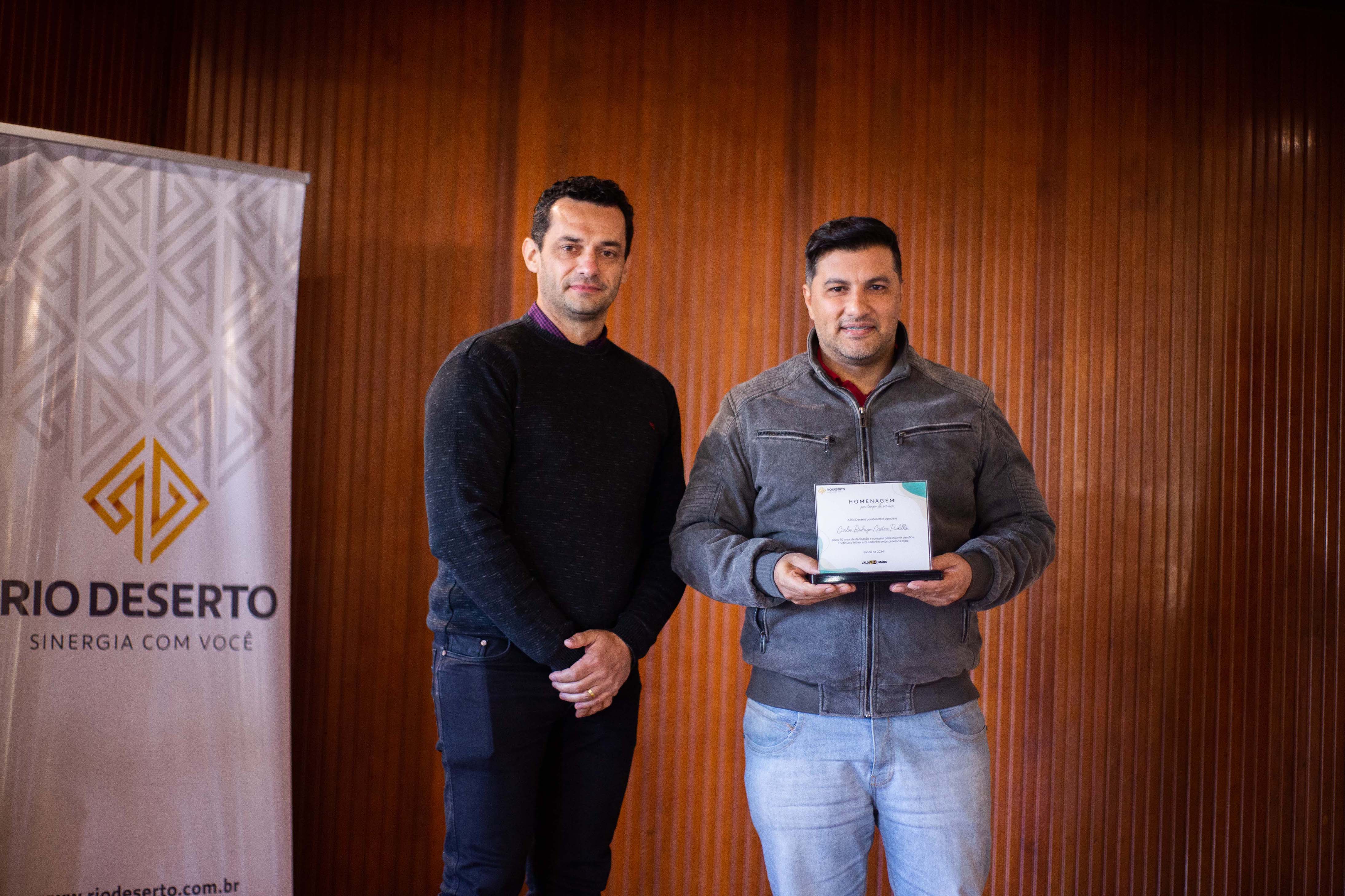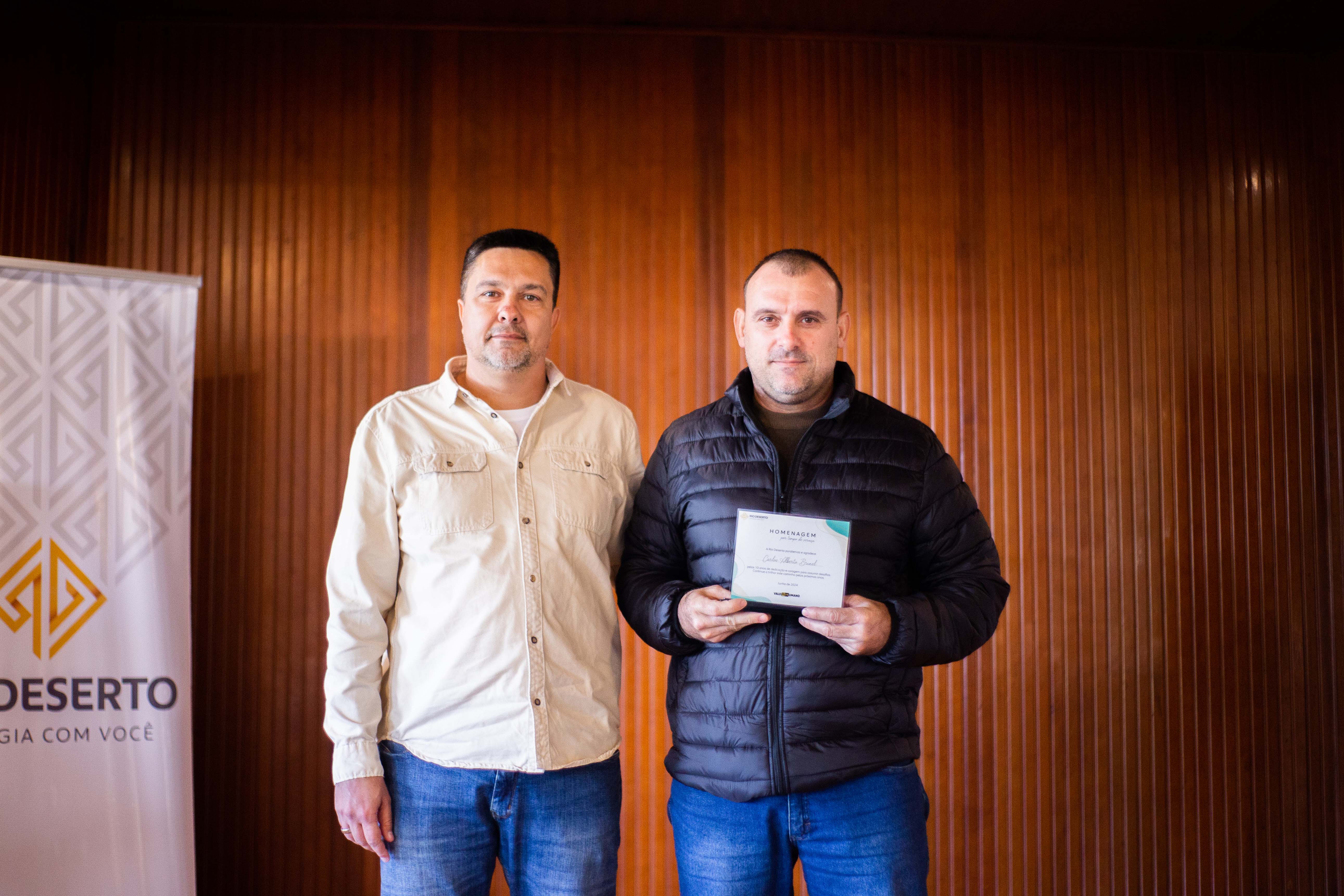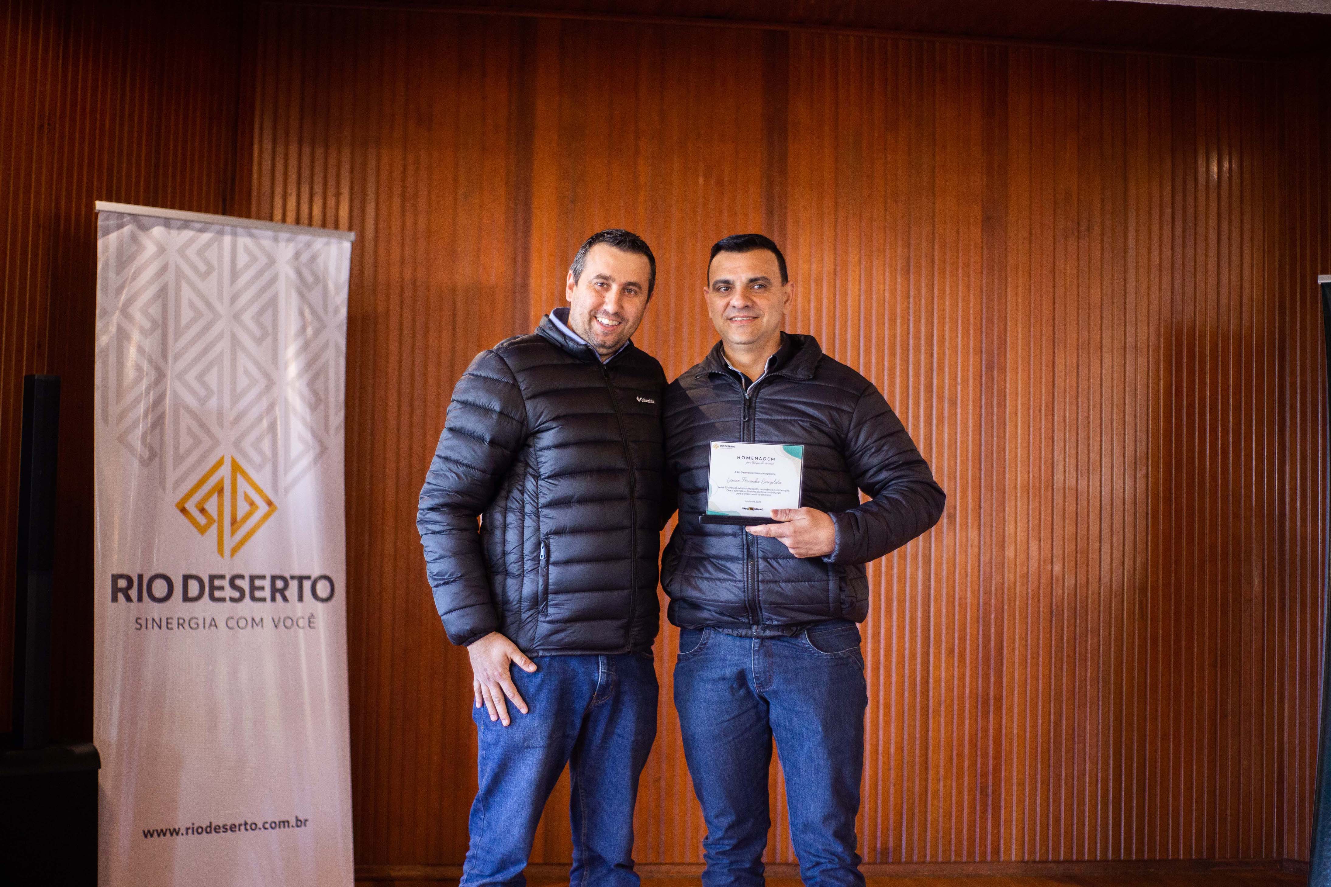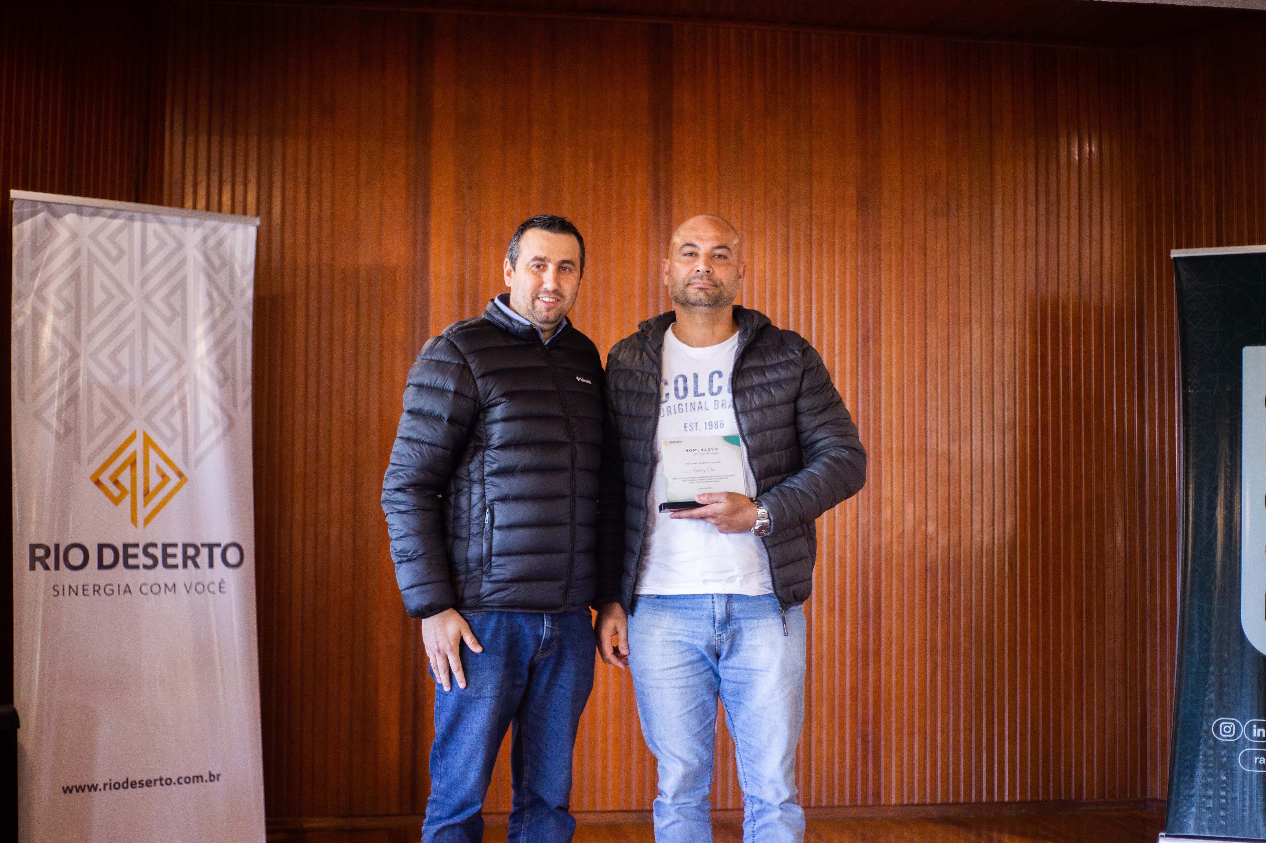 Outro homenageado, Paulo Sérgio da Rosa, falou do orgulho em estar na empresa. “Agradeço todos os dias pela oportunidade de trabalhar na Rio Deserto. Tudo o que tenho foi conquistado por meio do trabalho”, ressaltou. Segundo ele, a dedicação foi exemplo também para os filhos. “Tive a felicidade de ver a minha filha e o meu filho participarem do programa Jovem Aprendiz da empresa”, sublinhou.