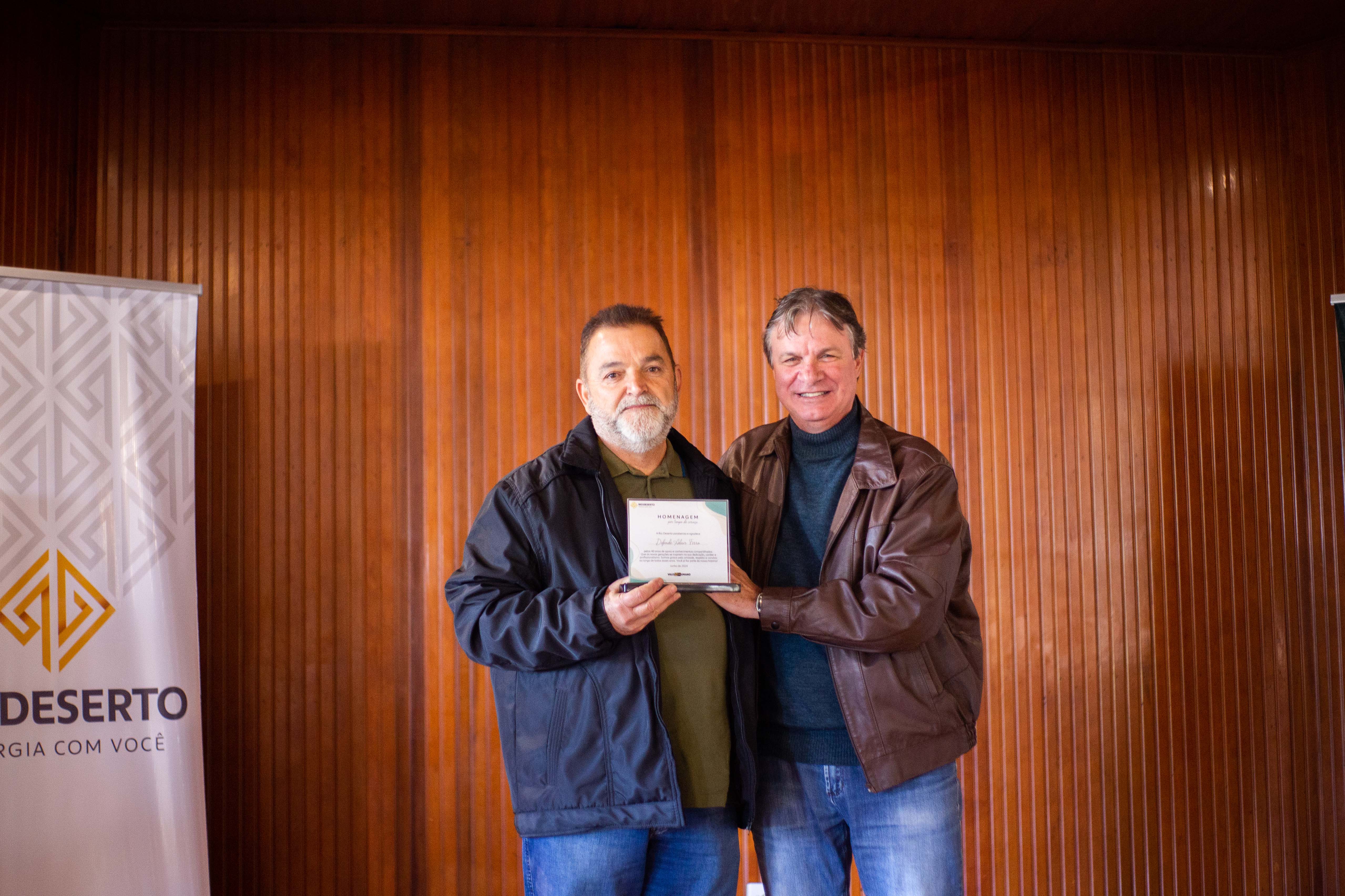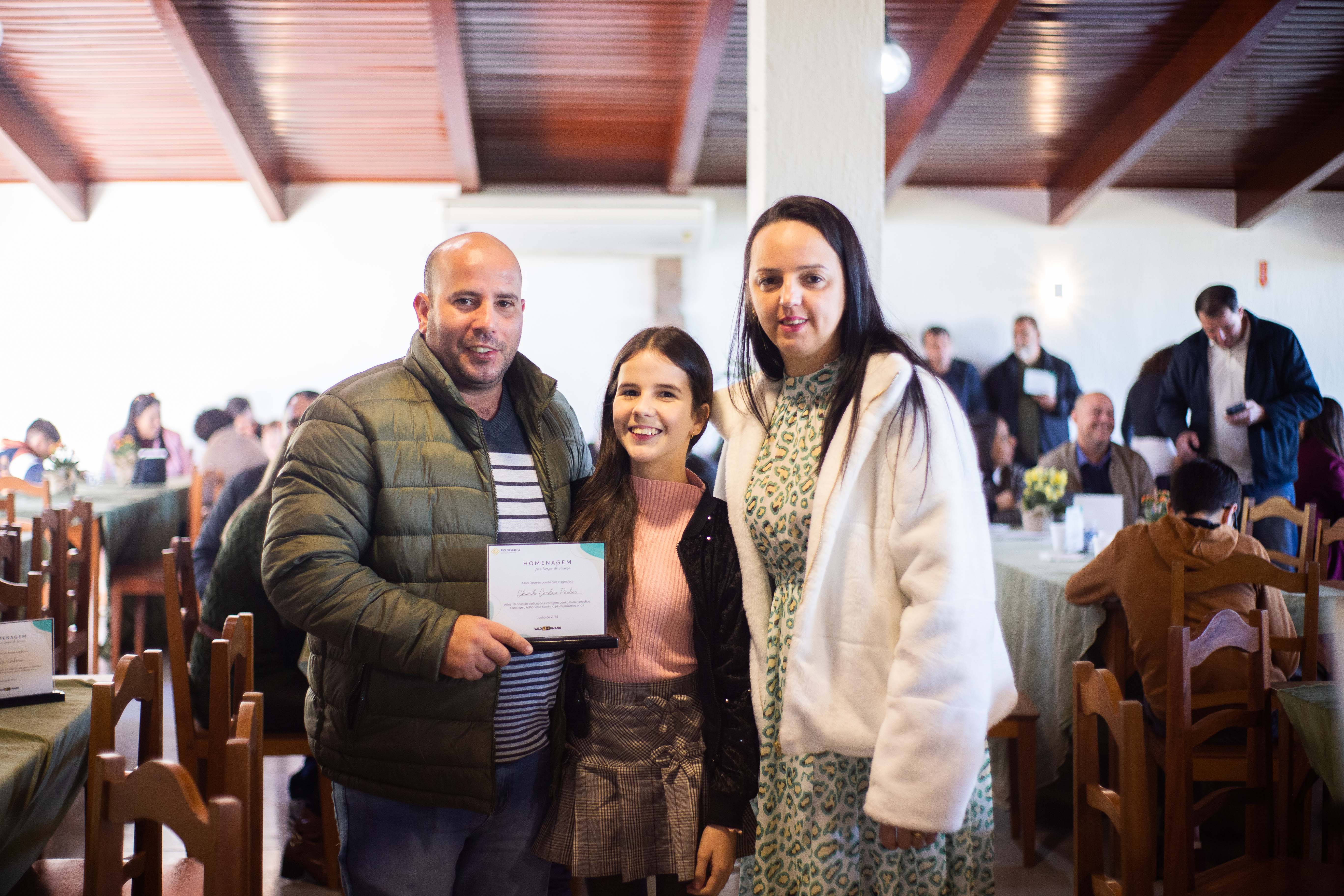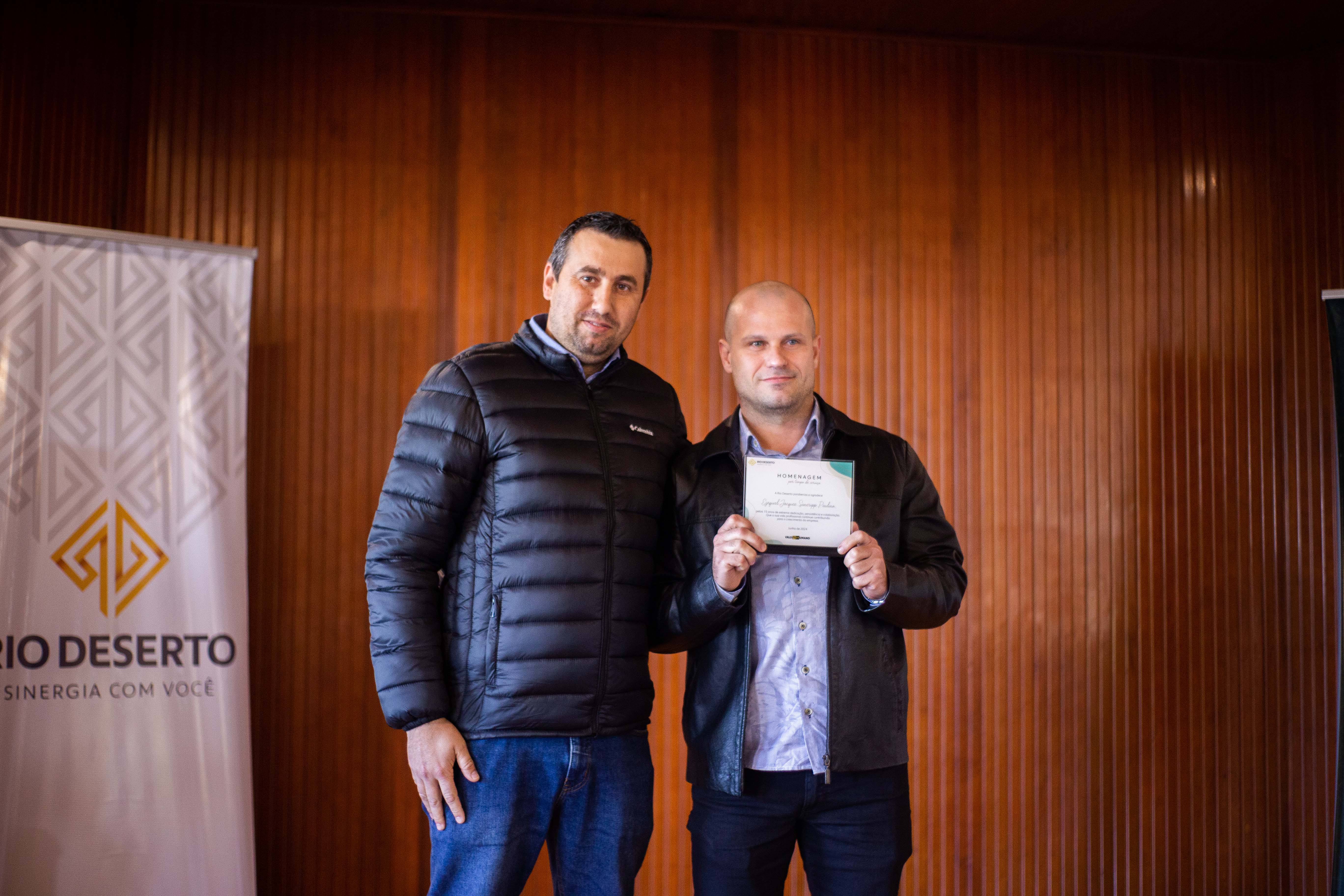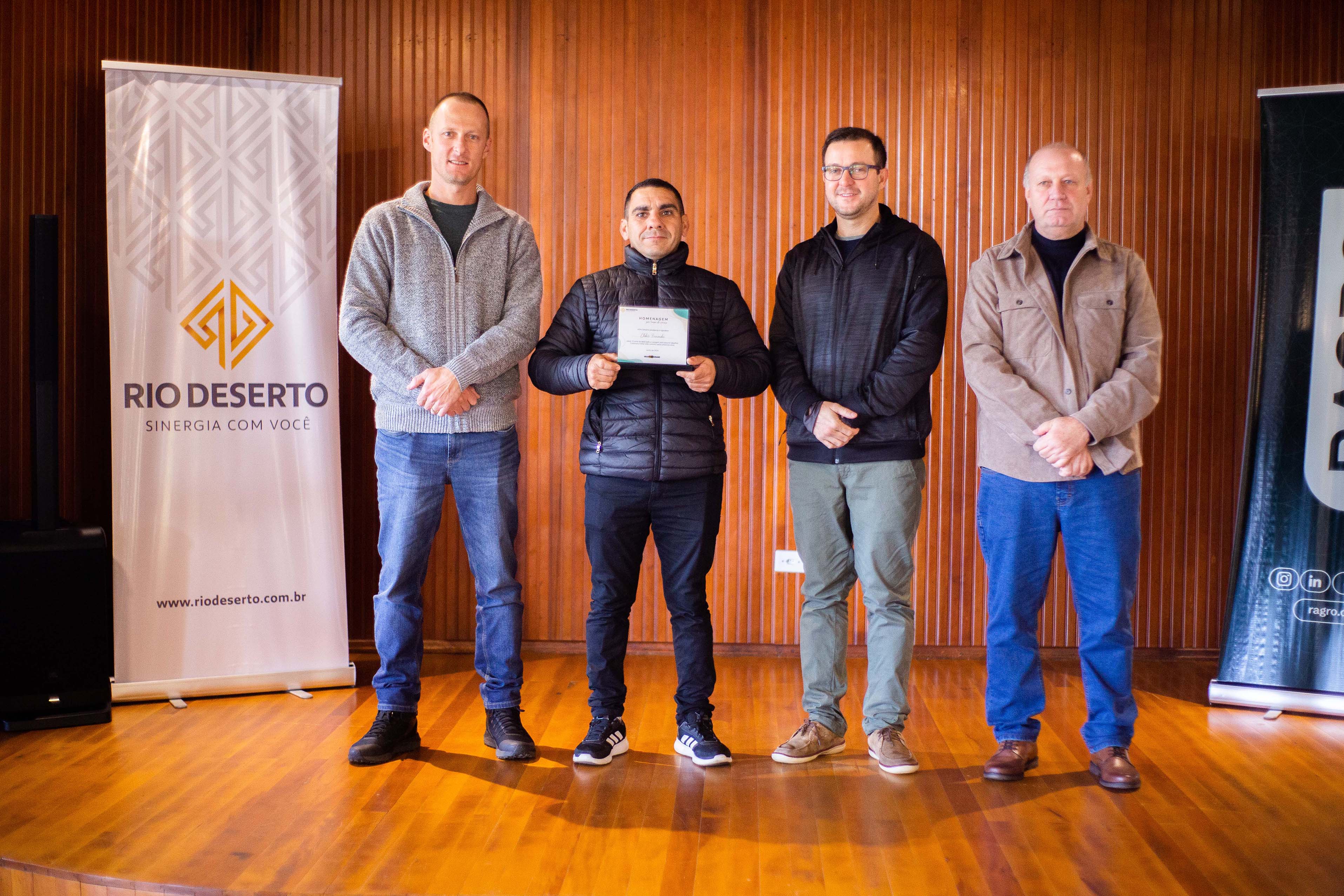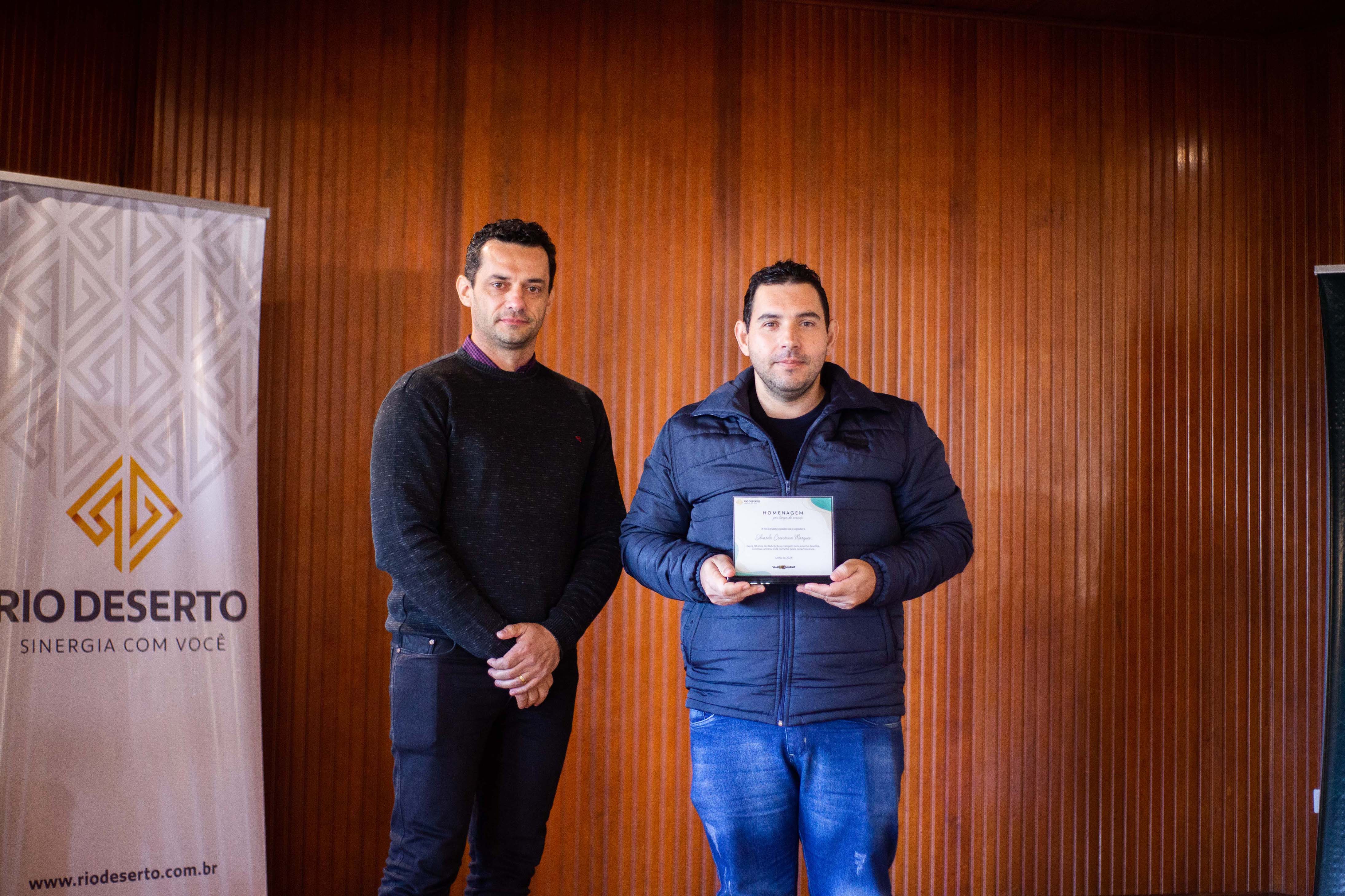 Outro homenageado, Paulo Sérgio da Rosa, falou do orgulho em estar na empresa. “Agradeço todos os dias pela oportunidade de trabalhar na Rio Deserto. Tudo o que tenho foi conquistado por meio do trabalho”, ressaltou. Segundo ele, a dedicação foi exemplo também para os filhos. “Tive a felicidade de ver a minha filha e o meu filho participarem do programa Jovem Aprendiz da empresa”, sublinhou.