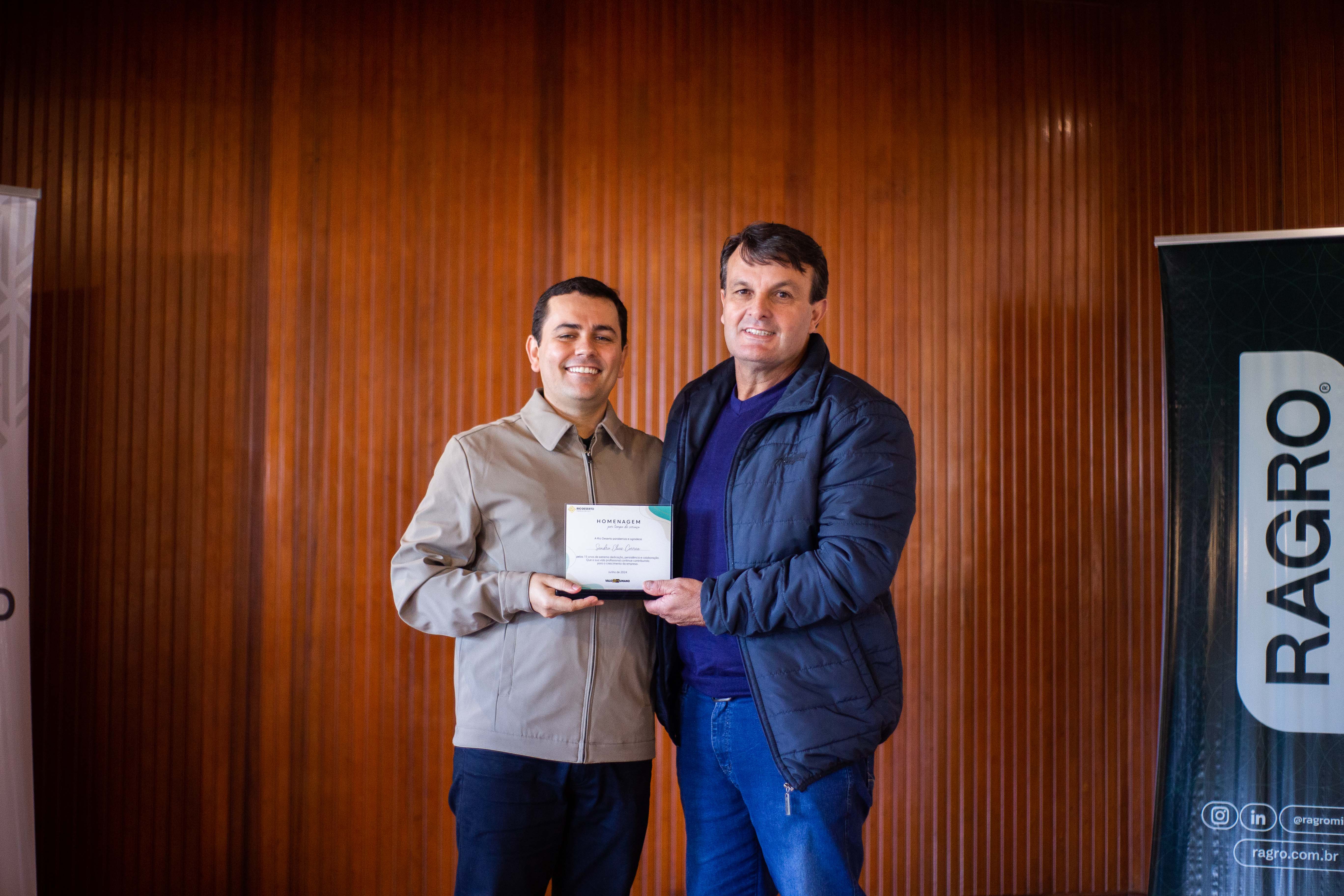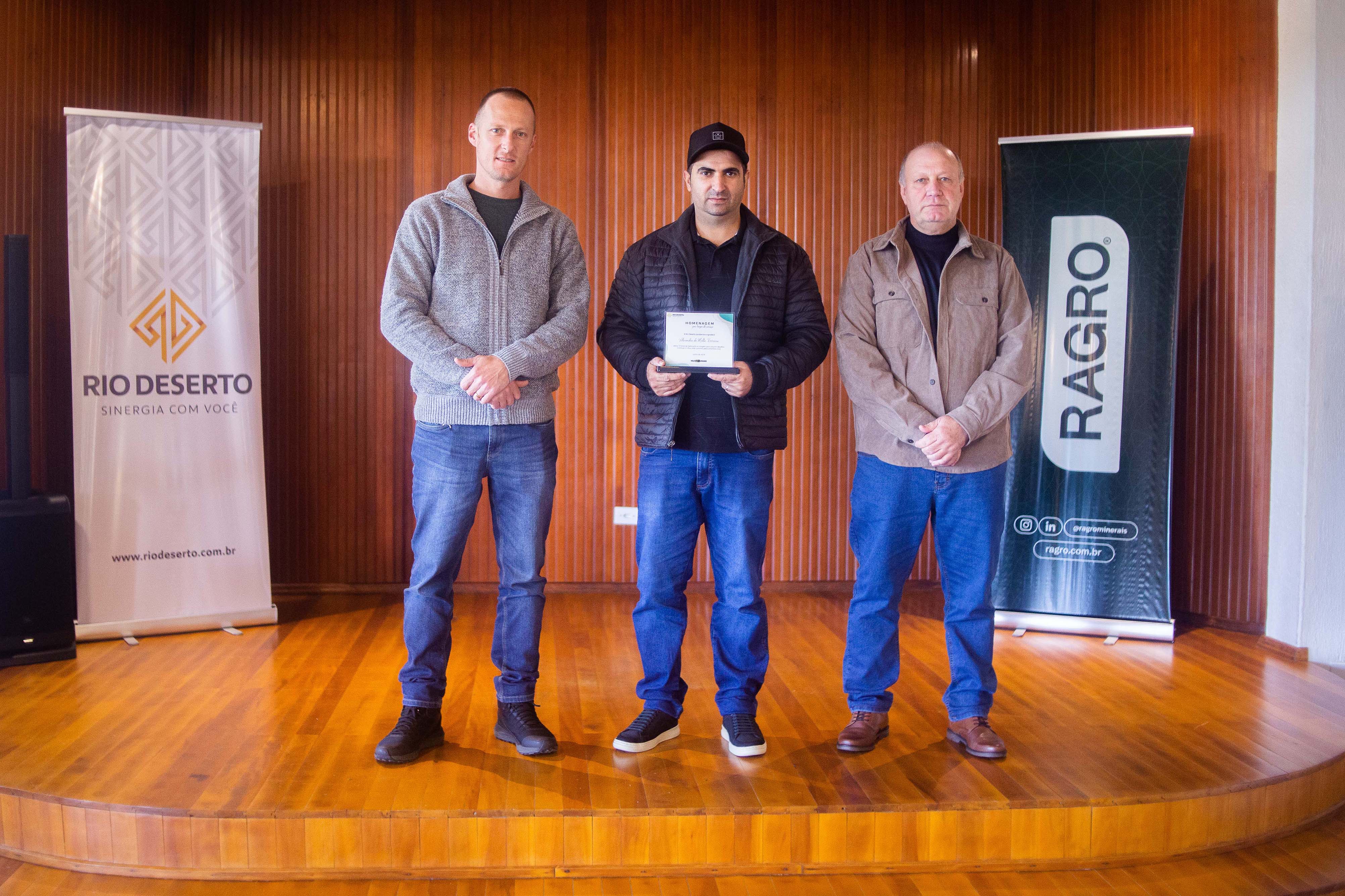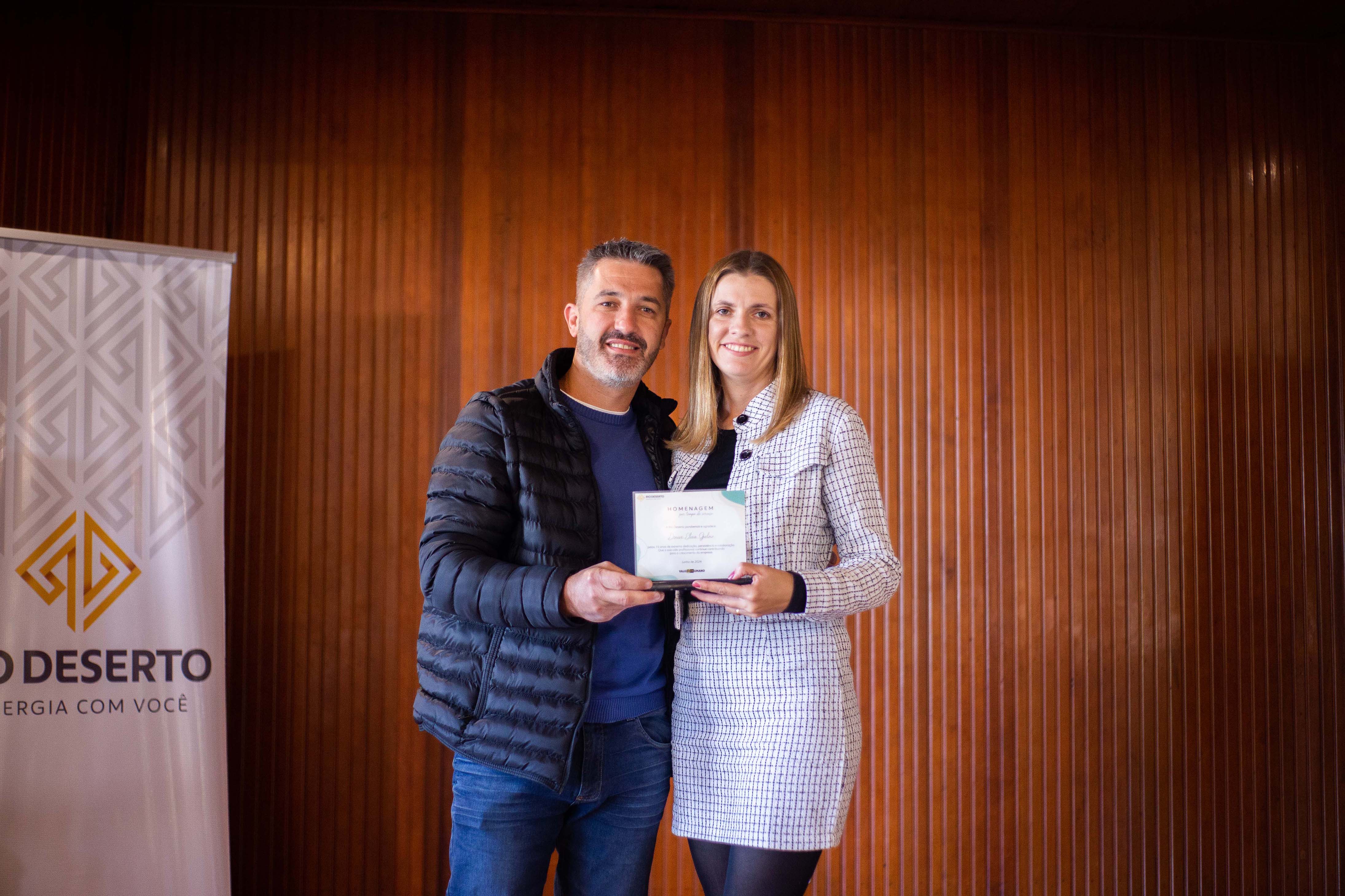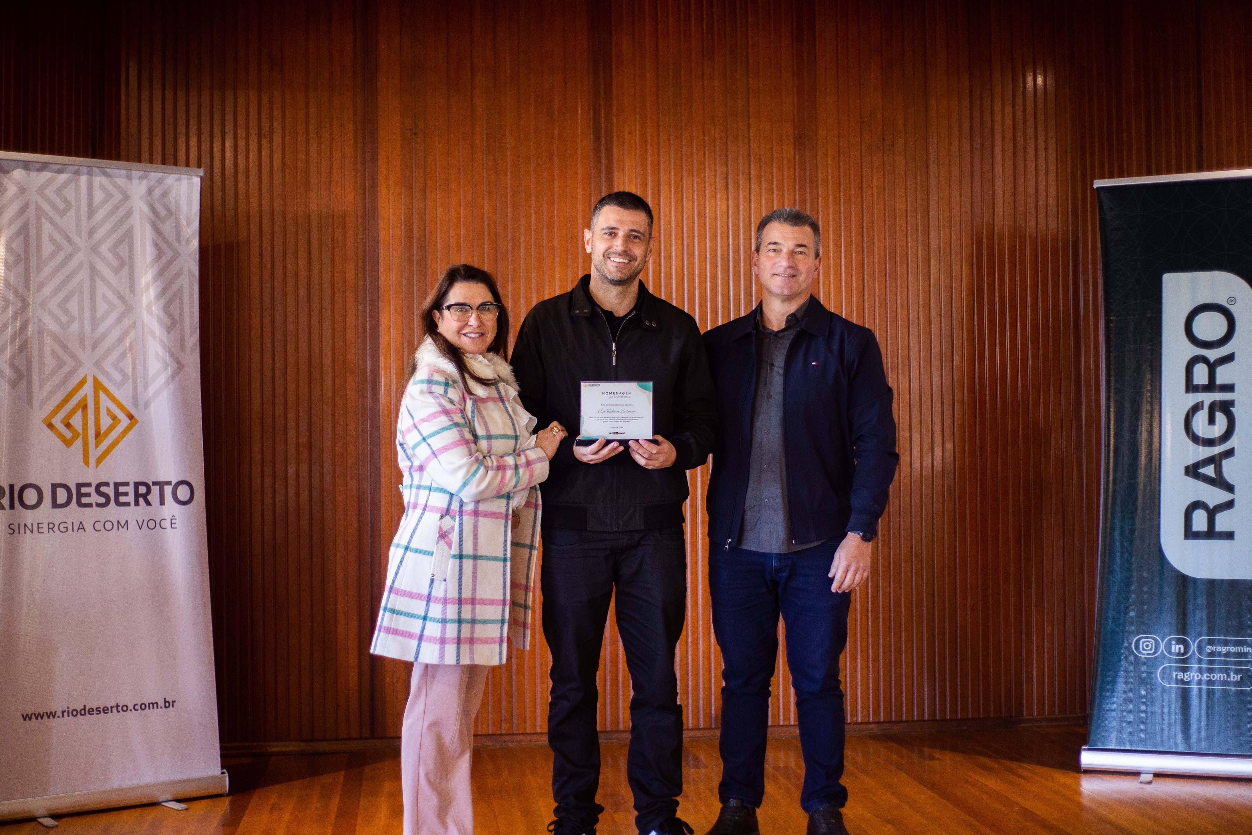 Outro homenageado, Paulo Sérgio da Rosa, falou do orgulho em estar na empresa. “Agradeço todos os dias pela oportunidade de trabalhar na Rio Deserto. Tudo o que tenho foi conquistado por meio do trabalho”, ressaltou. Segundo ele, a dedicação foi exemplo também para os filhos. “Tive a felicidade de ver a minha filha e o meu filho participarem do programa Jovem Aprendiz da empresa”, sublinhou.