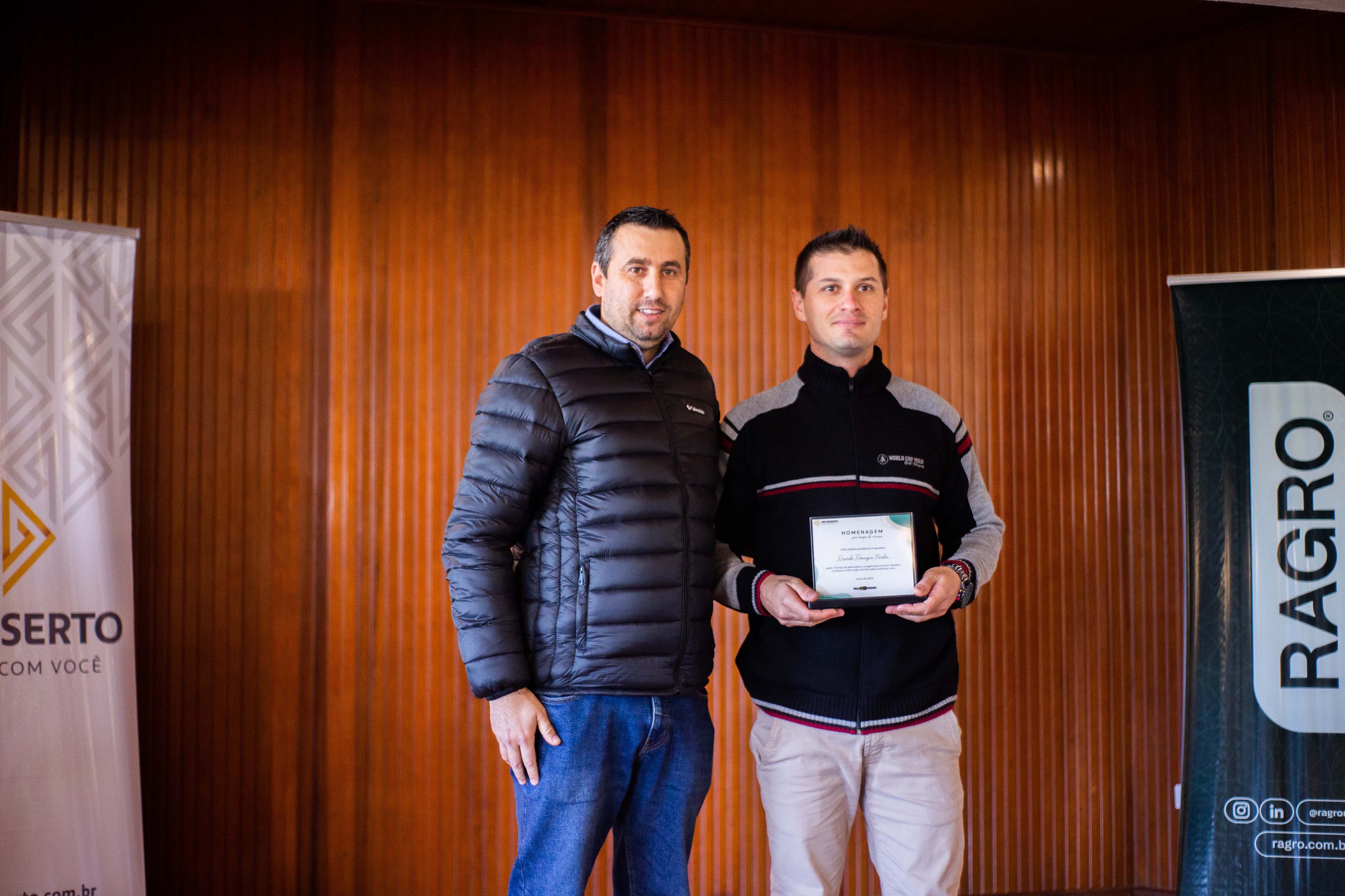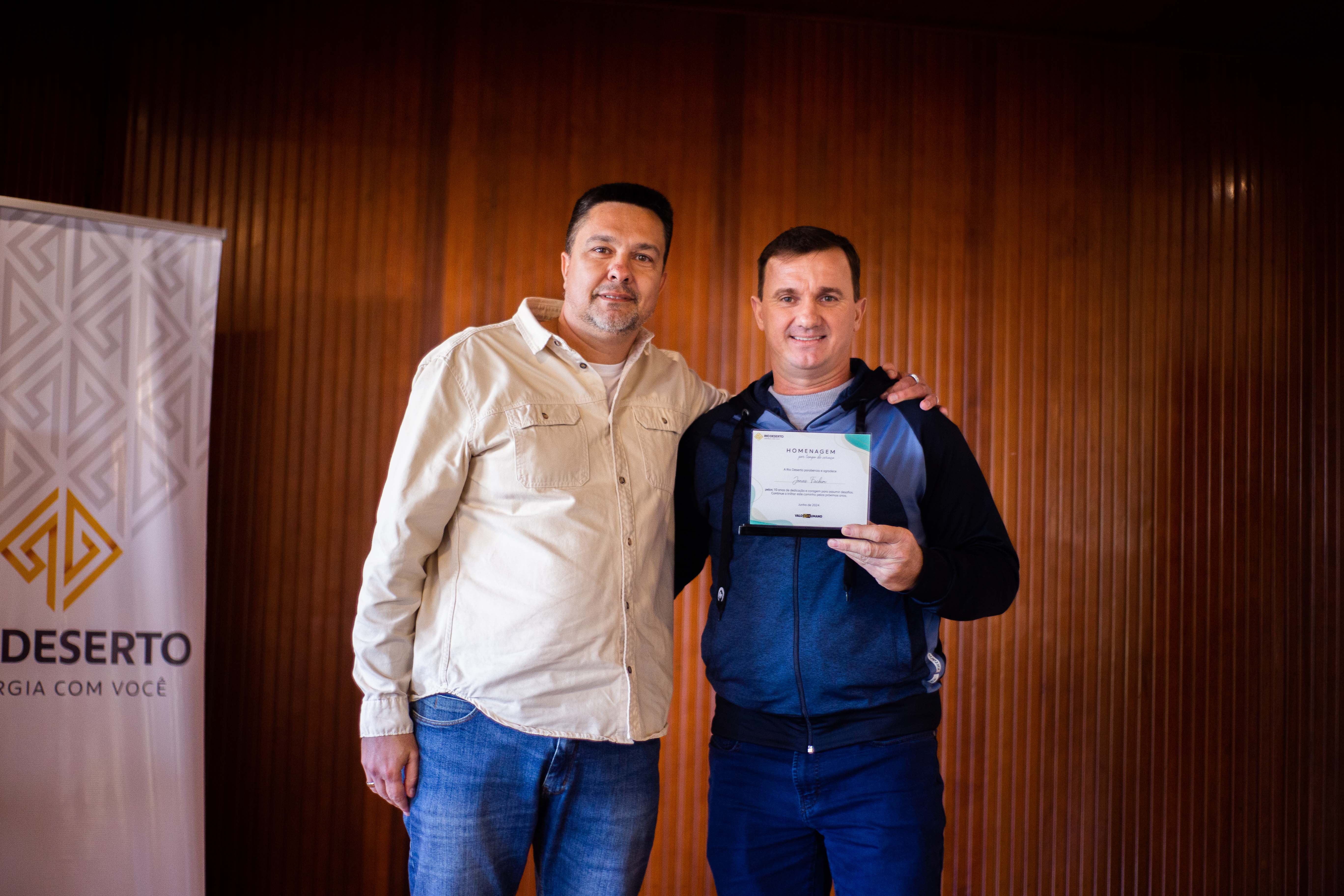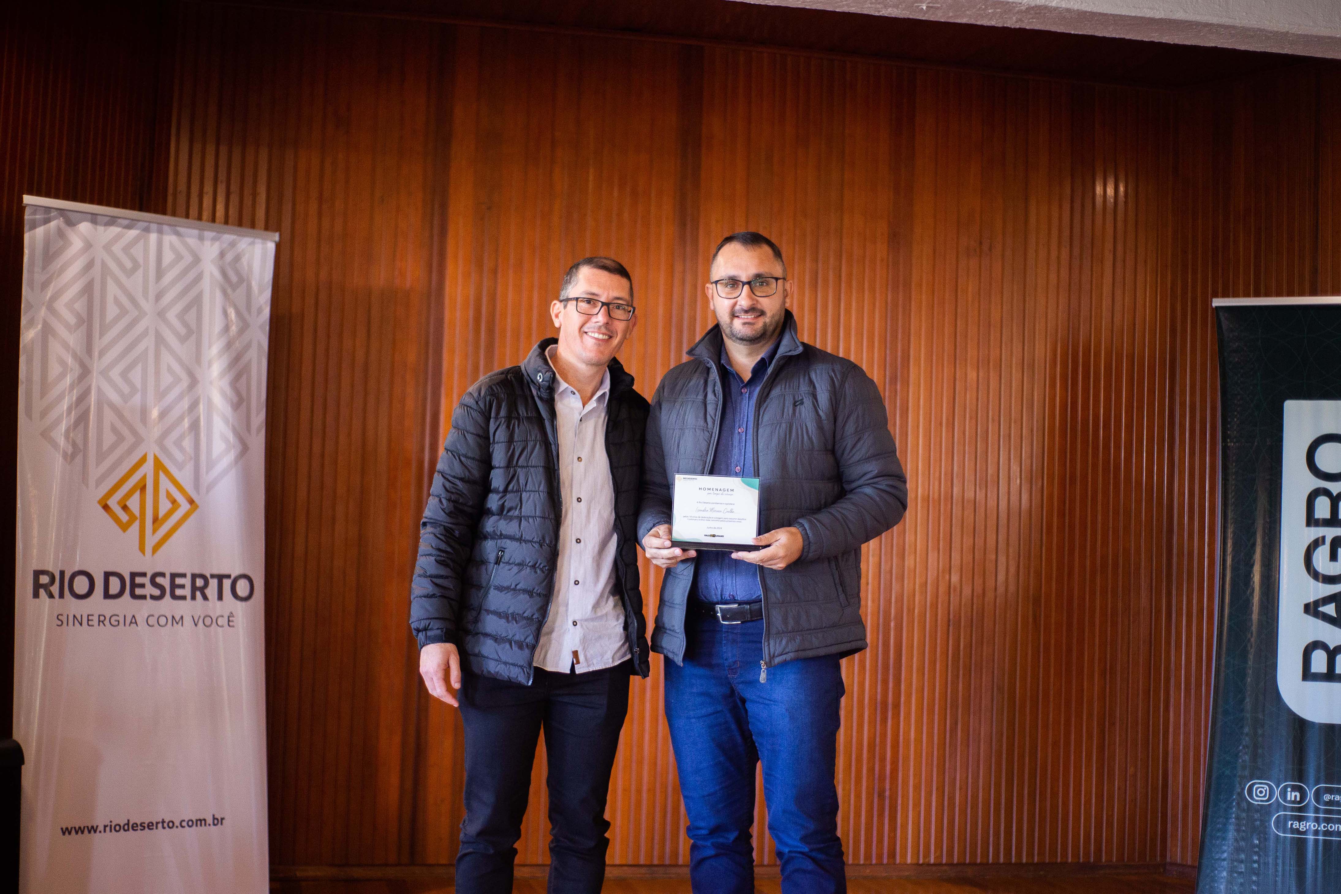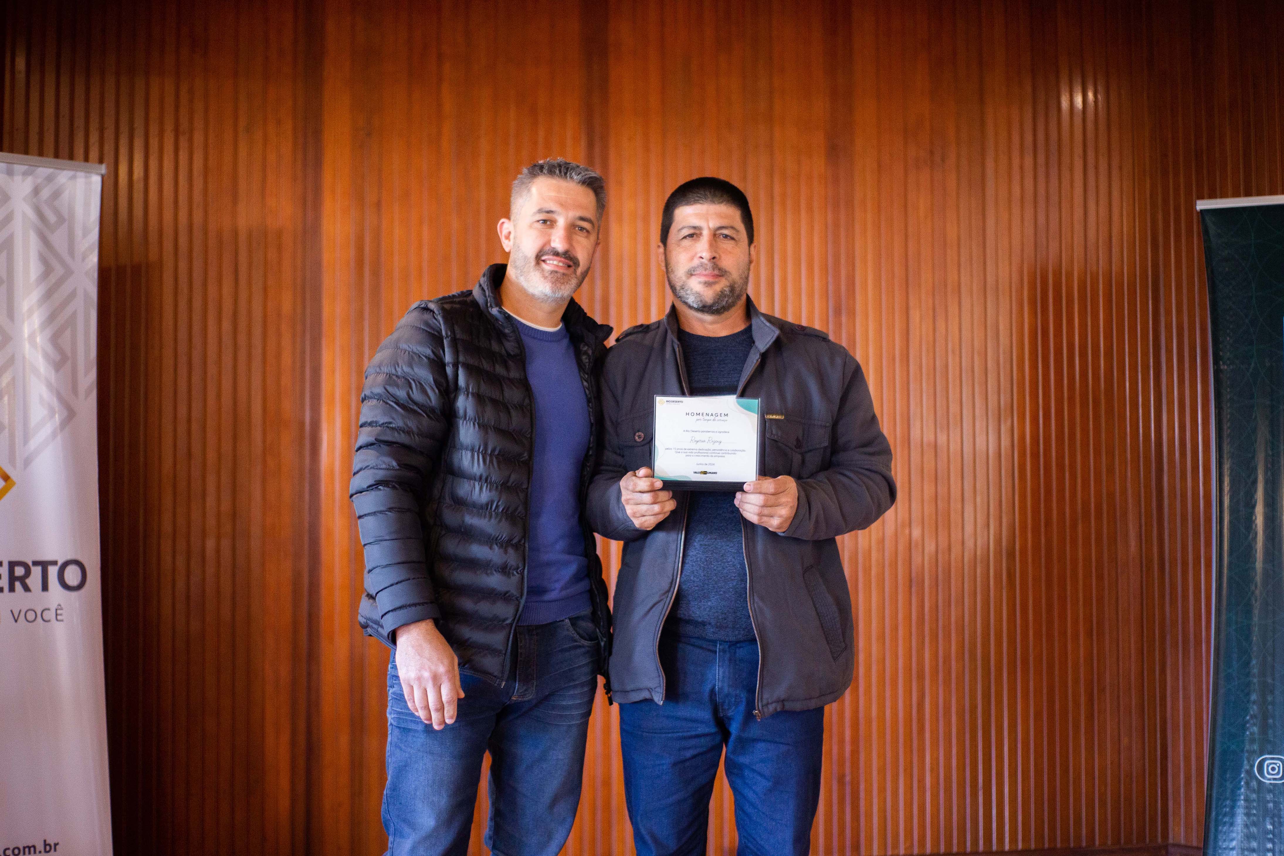 Um dos administradores da Rio Deserto, Valcir José Zanette, ressaltou a alegria em homenagear os trabalhadores. “Mais do que profissionais, são pessoas que estão ajudando a construir a história da Rio Deserto. Completar tempo de serviço demonstra a força da família Rio Deserto e como os valores da empresa e dos colaboradores estão alinhados”, disse. Segundo ele, a homenagem fortalece um dos principais pilares da empresa, que é a valorização das pessoas. “Entendemos que a empresa precisa ser um local feliz, onde nos sentimos bem, afinal, é no trabalho que passamos grande parte de nossas vidas”, sublinhou.
