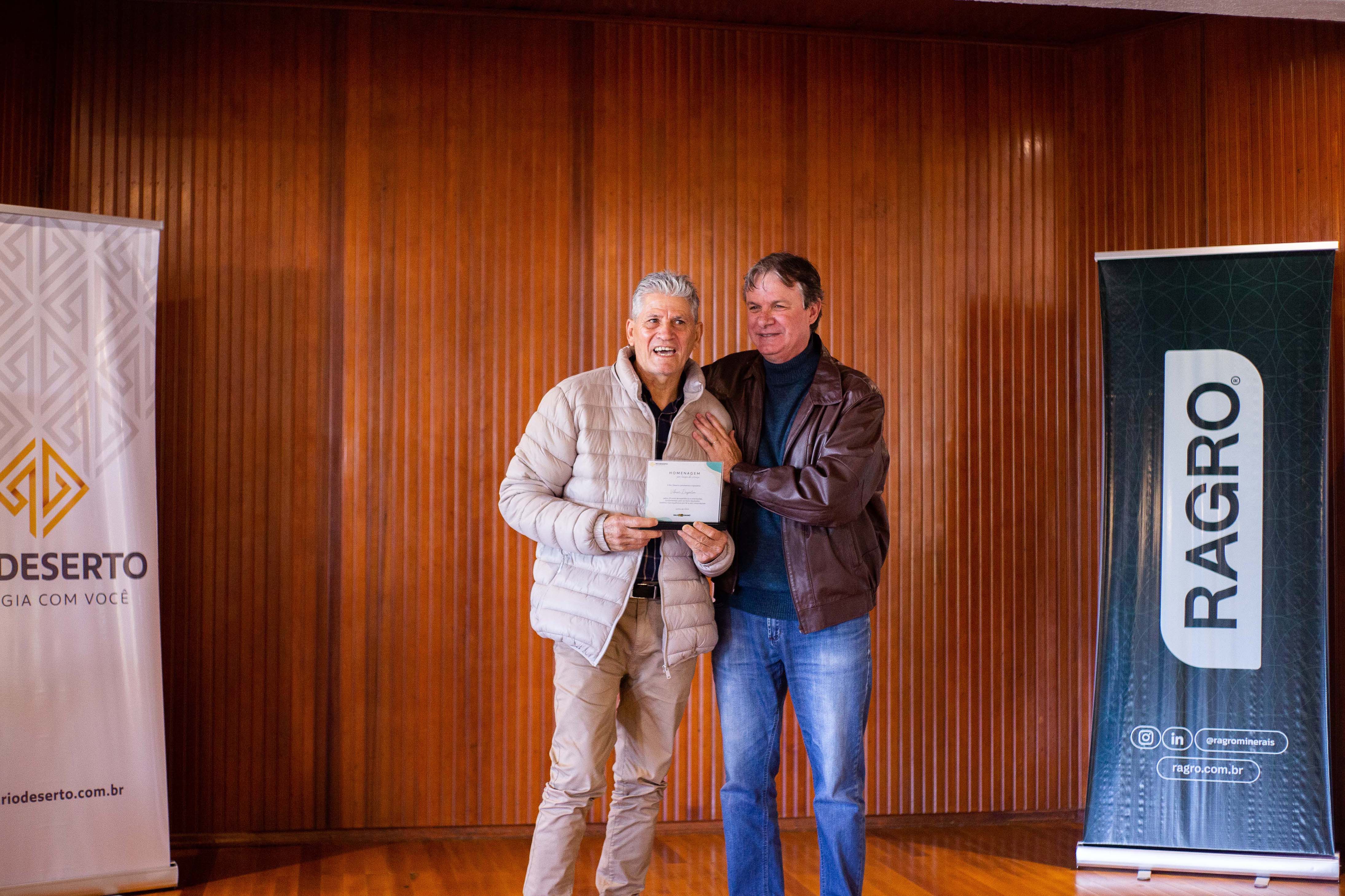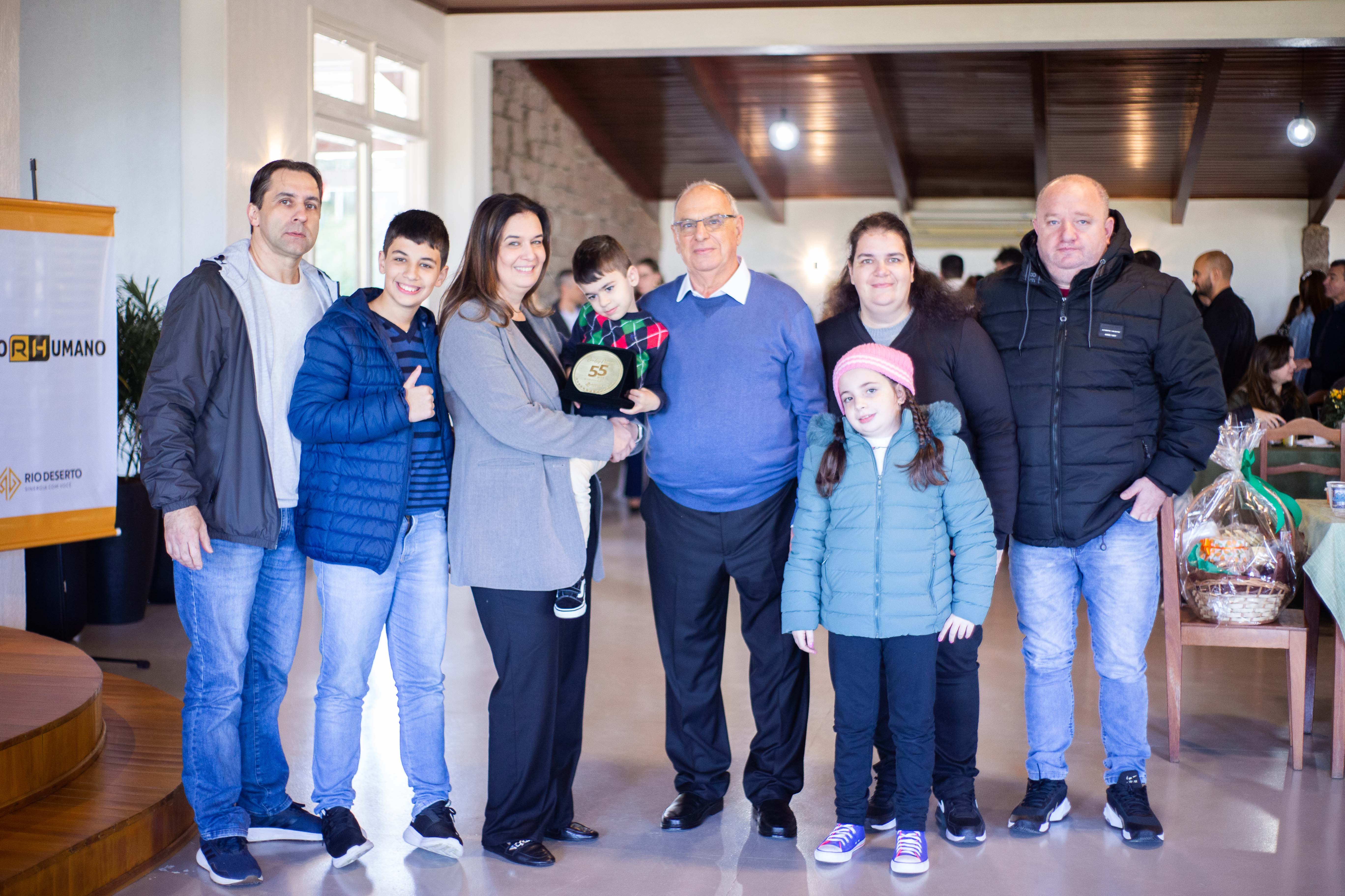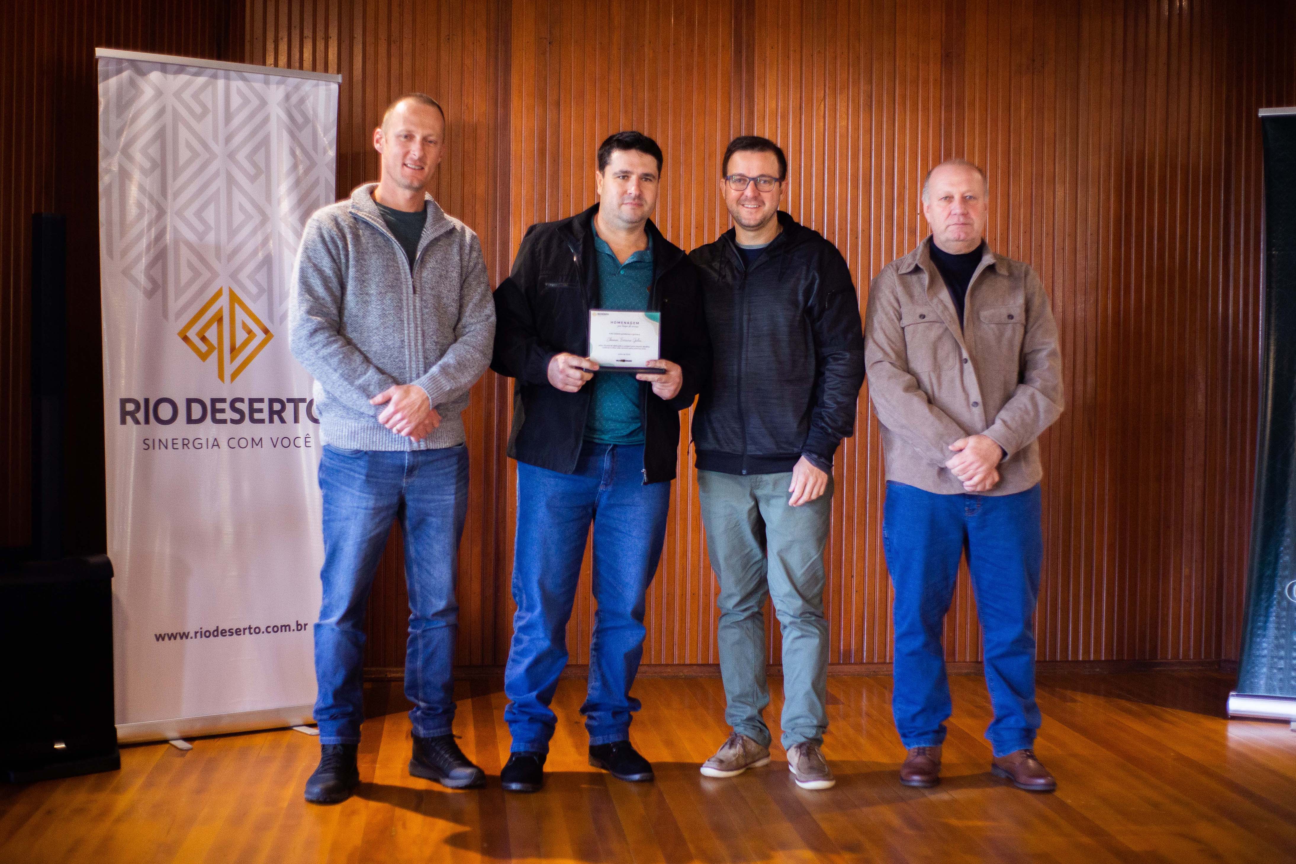 Um dos colaboradores homenageados, Ésio Luiz Possamai, que completou 55 anos de empresa, relembrou a trajetória e emocionou os participantes do evento. “Construí a minha vida trabalhando na Rio Deserto. Lembro bem dos primeiros dias de trabalho e de tudo o que foi vivido até hoje”, disse.