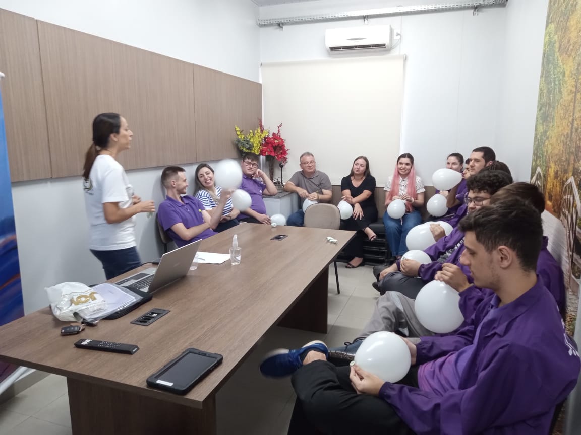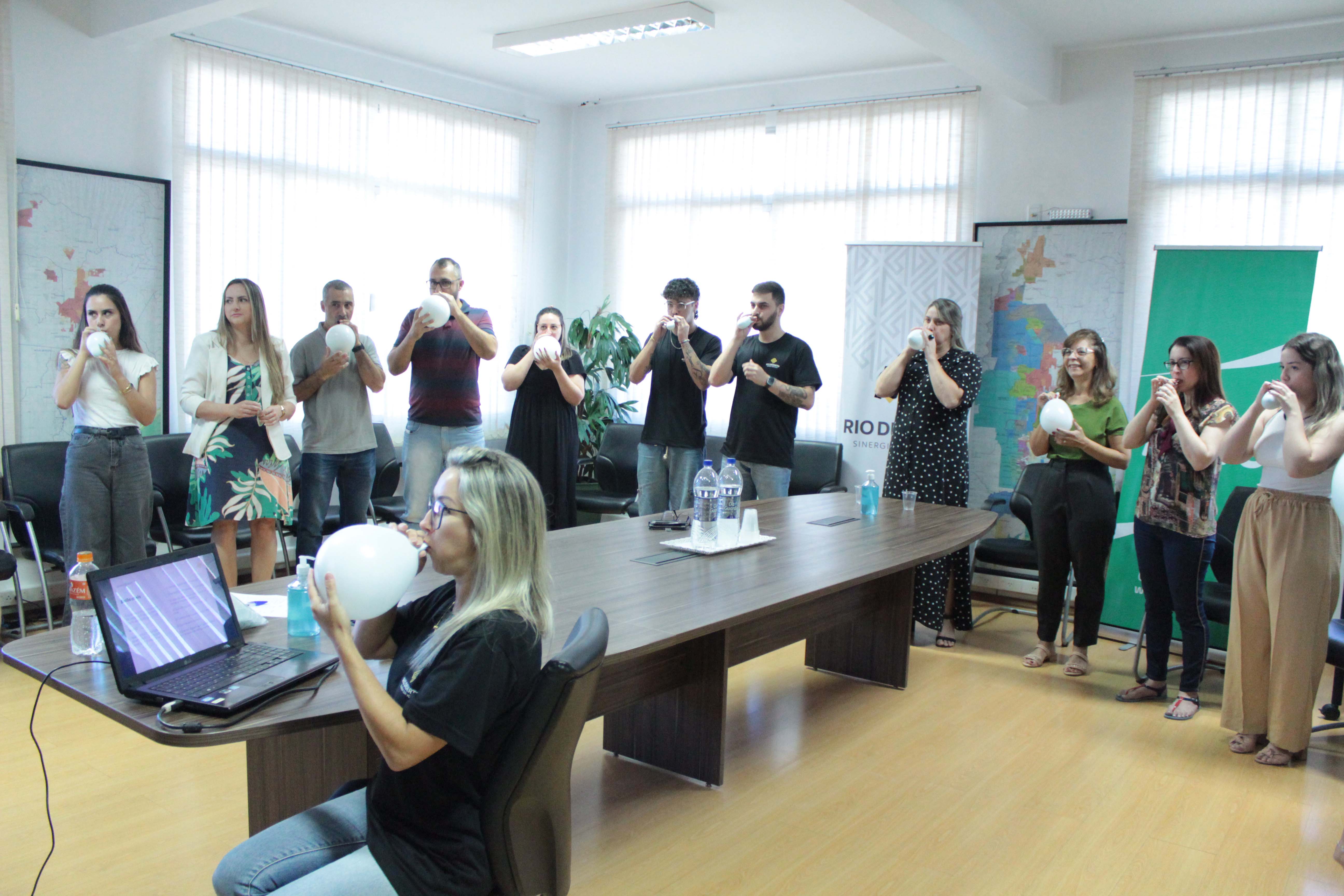 Durante a interação, cada colaborador recebeu um balão e precisava assoprar uma, duas ou três vezes, conforme eram mencionadas situações que mais lhe incomodavam. Menções do tipo “Quando alguém que você considera não te escuta” e “Quando você se atrasa para um compromisso importante” foram algumas destacadas. Após algumas frases, foram feitas reflexões sobre os balões, que estavam vazios, cheios ou os que haviam estourado.
