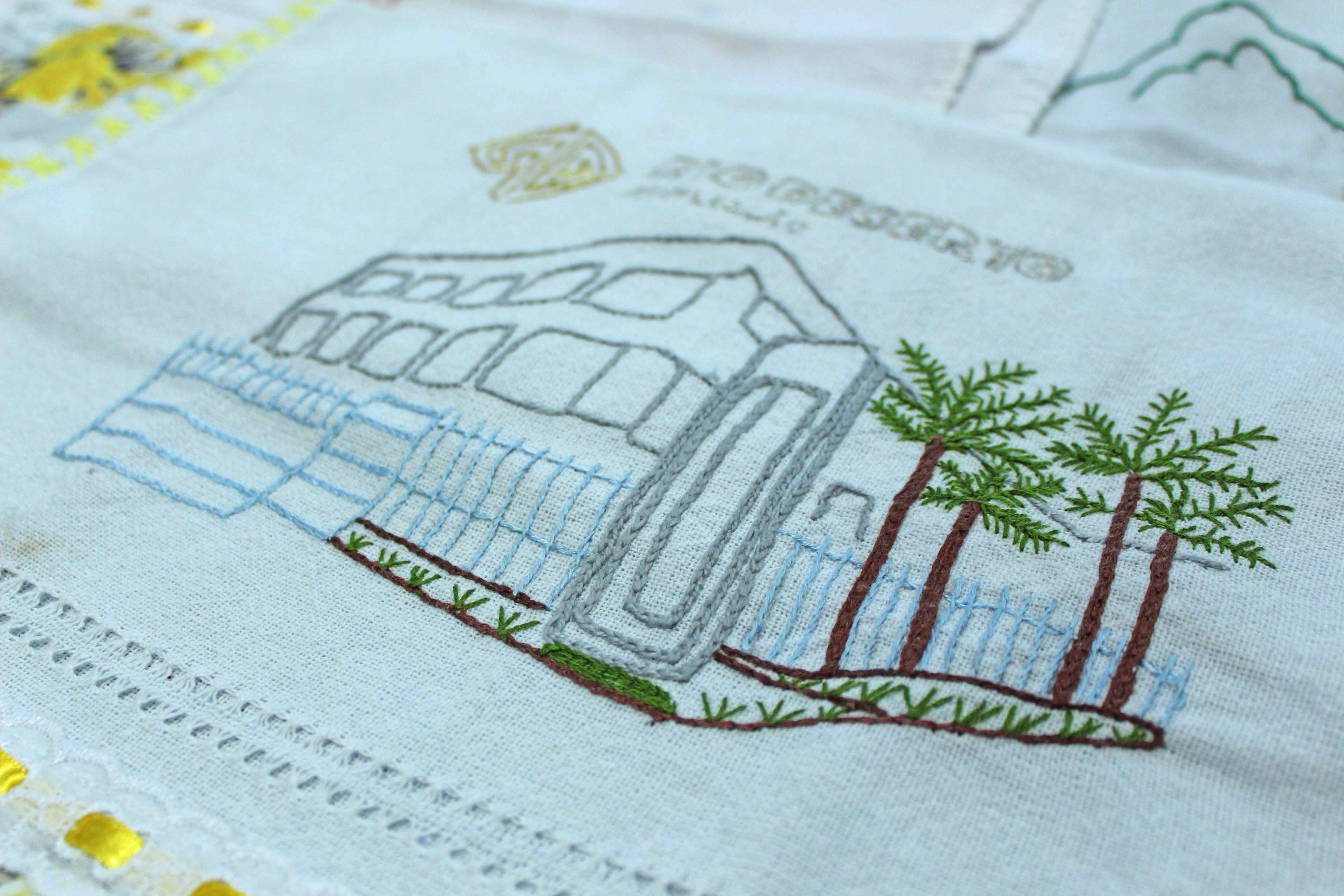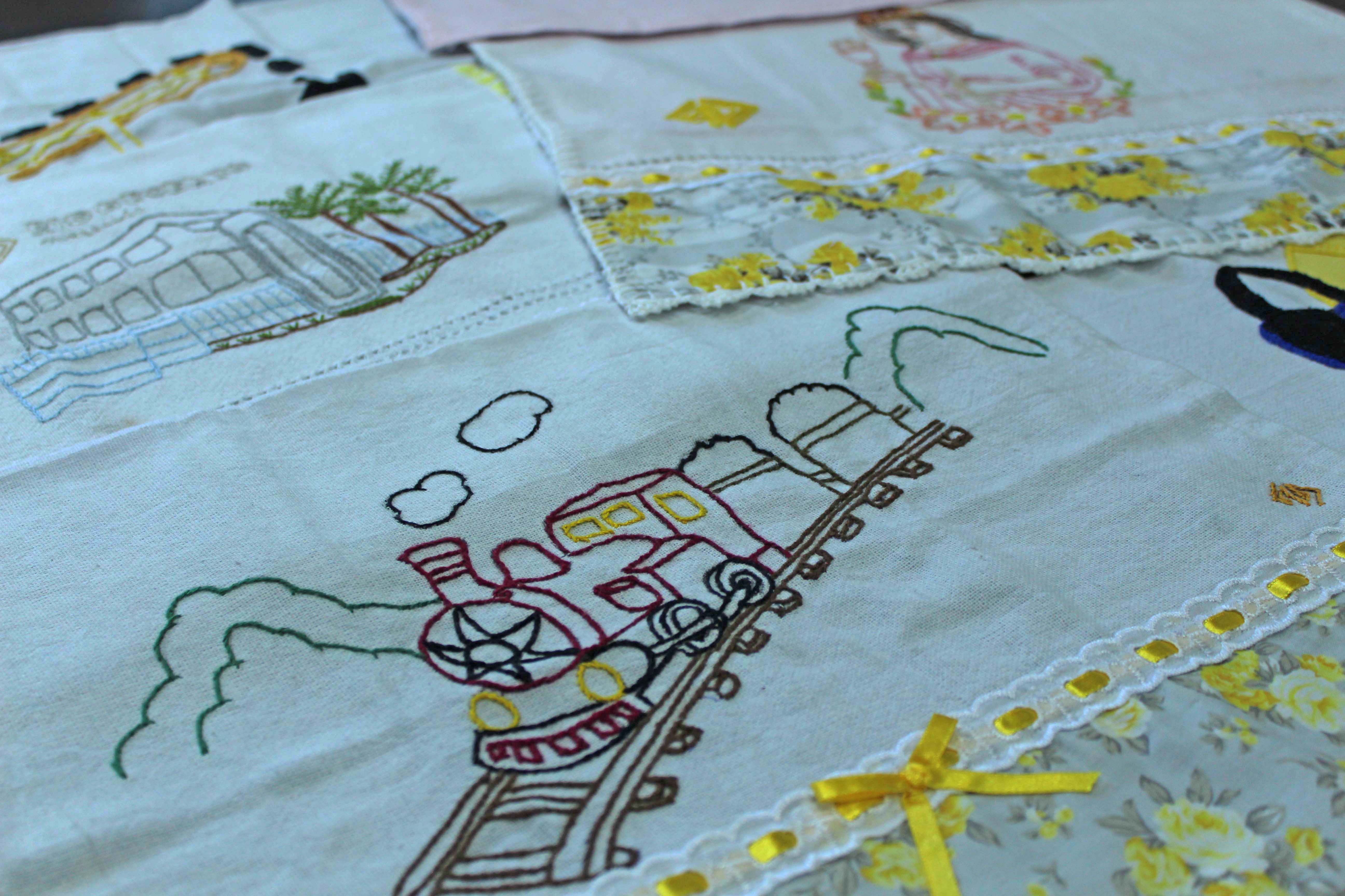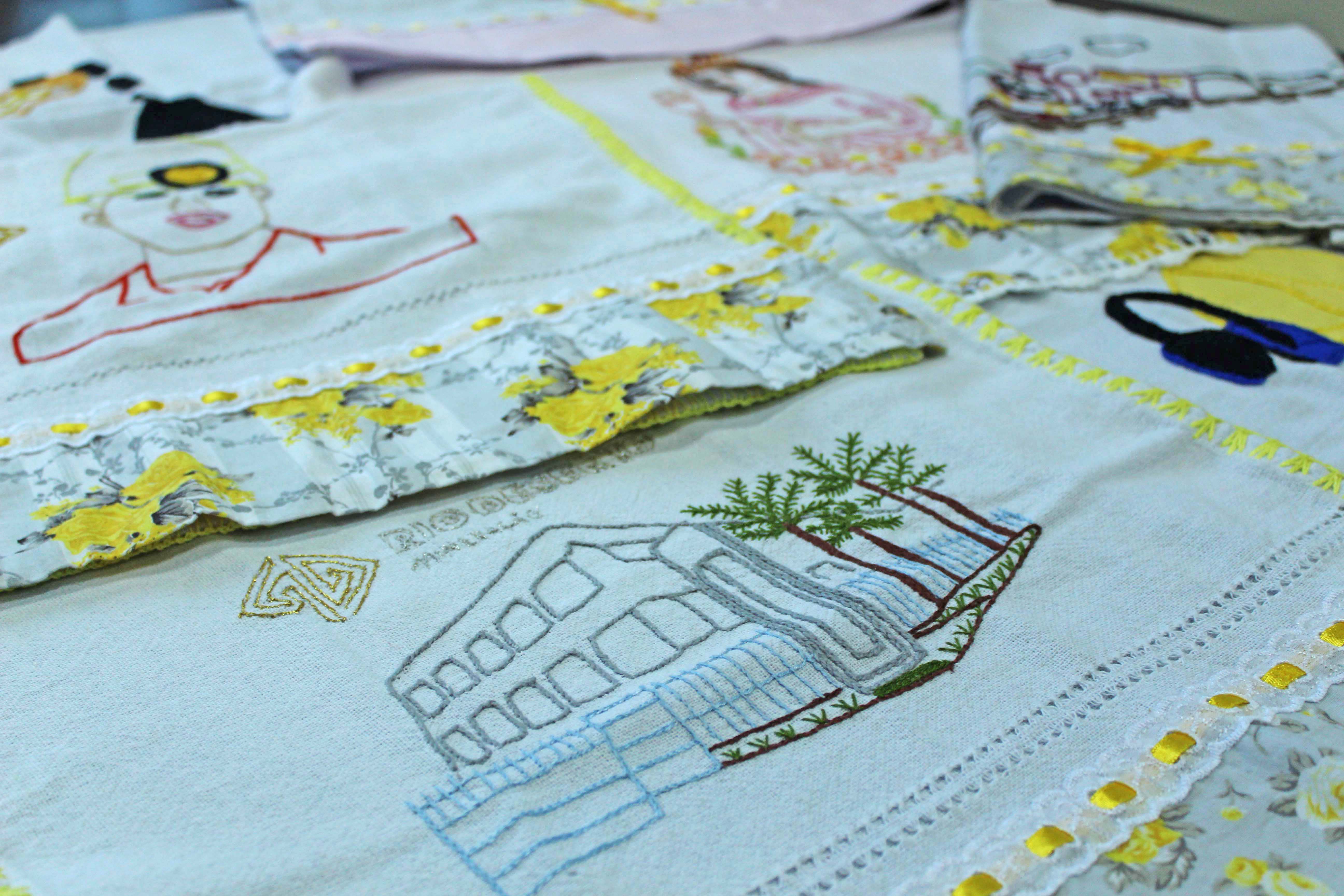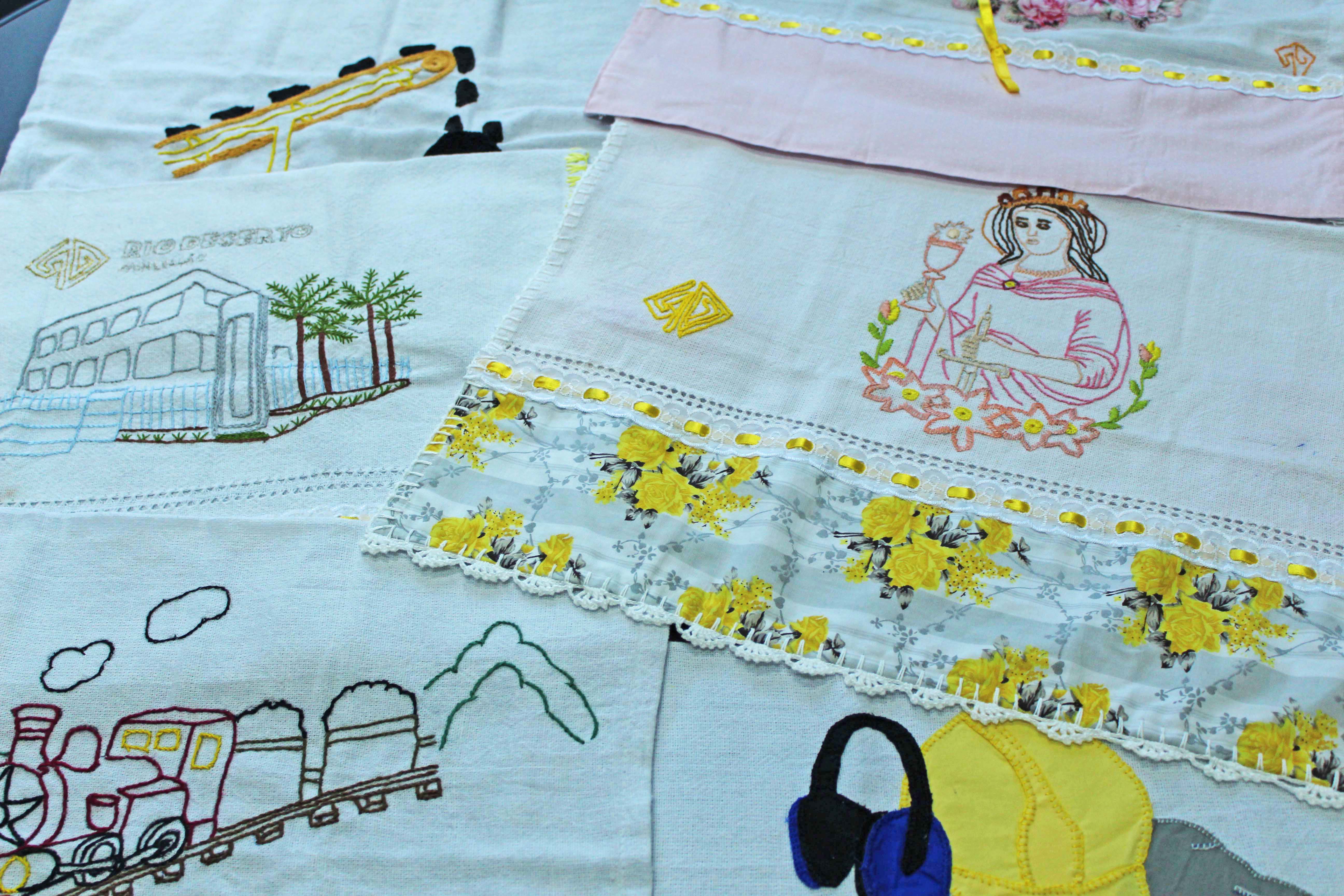 Nas toalhas de louça, a figura de trabalhadores da mineração de carvão, equipamentos de segurança, processos de extração, transporte ferroviário, imagem de Santa Bárbara (padroeira dos mineiros) e até a sede do Escritório Central da Rio Deserto foram retratadas por meio de bordados e trabalhos de patchwork (com retalhos de tecidos). As barras, passa-fitas e crochês contribuíram para o acabamento das peças.