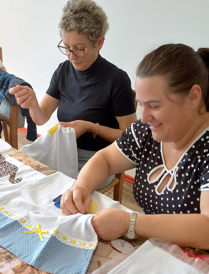Os trabalhos artesanais elaborados pelo Clube de Mães Raiar do Sol, de Treviso, devem ser expostos para os colaboradores da Unidade de Extração Mina Cruz de Malta, da Rio Deserto, em Treviso, durante o mês de novembro. Depois, serão identificados com informações sobre o projeto social e o clube de mães participante, sendo enviados junto ao brinde de fim de ano, para clientes e fornecedores.