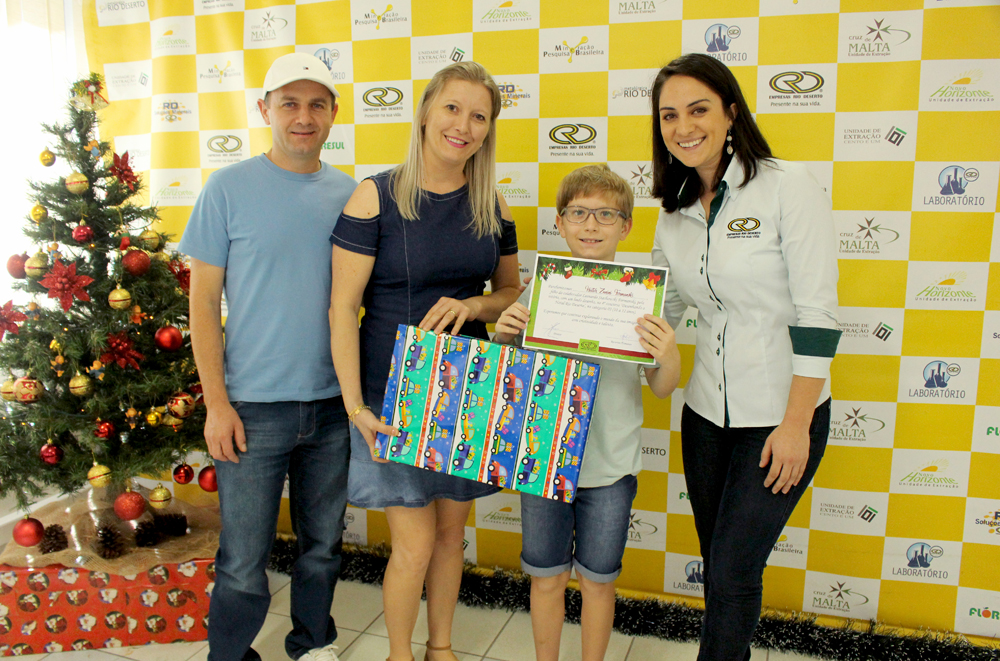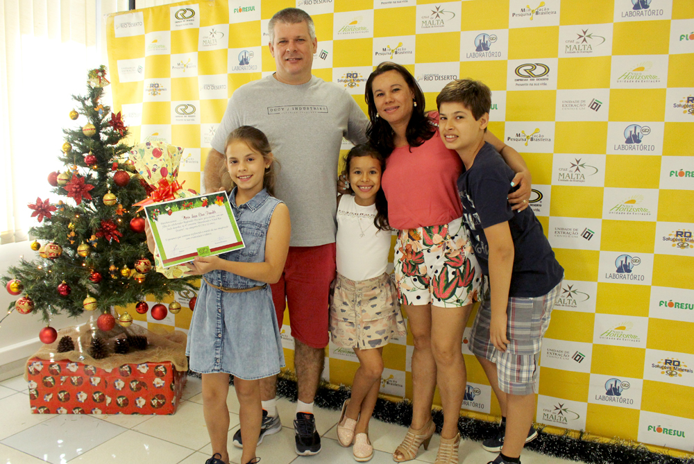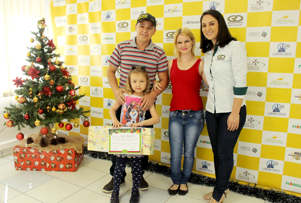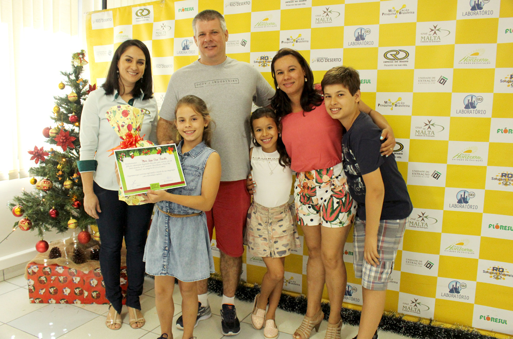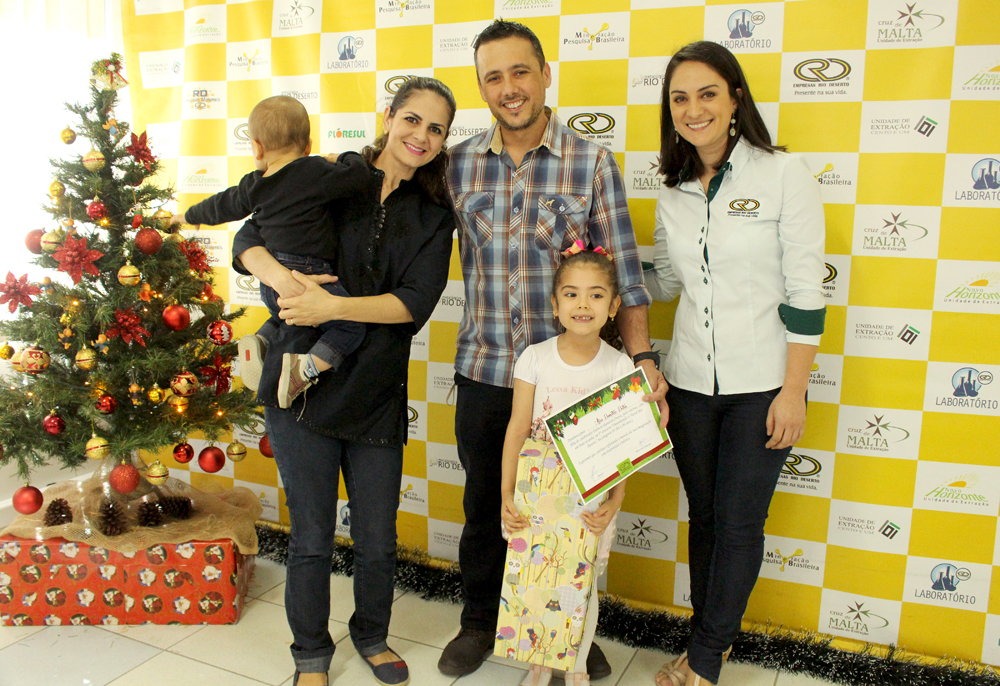 As seis crianças vencedoras do Concurso “Desenhando o Natal Rio Deserto” 2017 participaram, junto com os pais, de um encontro na manhã do último sábado, 28, no Escritório Central das Empresas Rio Deserto. Na oportunidade, elas refizeram o desenho, comprovando a autoria da arte, receberam um certificado de participação e foram premiadas pela vitória. Os seis desenhos vencedores foram escolhidos por uma comissão julgadora e ilustrarão os cartões de fim de ano das Empresas Rio Deserto.