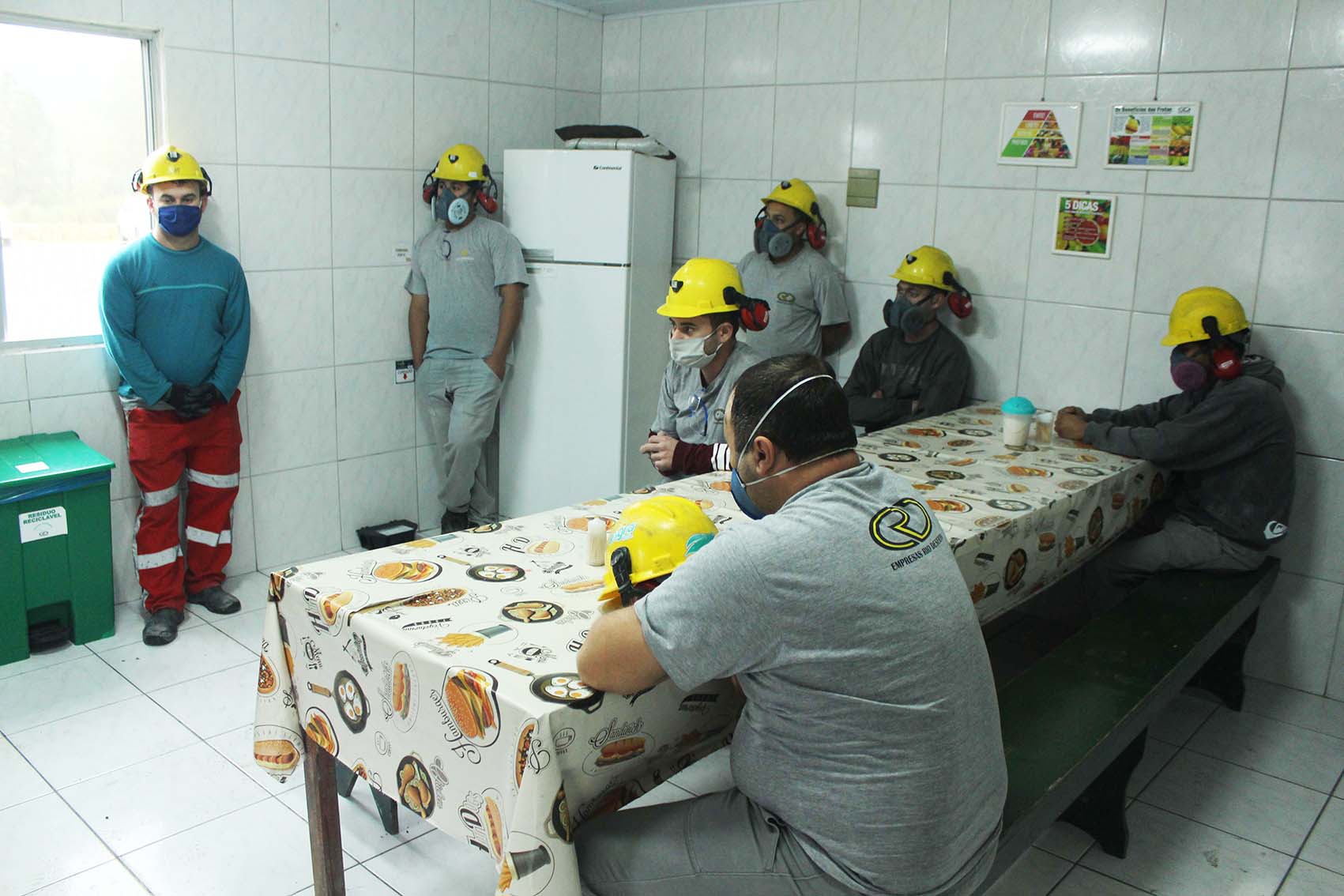 A conscientização sobre a prevenção ao novo coronavírus (COVID-19) está sendo reforçada nas unidades da Rio Deserto, nesta semana. Além de cartazes ilustrativos, o assunto está sendo abordado durante o Diálogo Diário de Saúde e Segurança (DDSS). A conversa com os colaboradores está sendo ministrada pela coordenadora de recursos humanos, Jaci Baggio Vieira, e pelo coordenador de enfermagem do trabalho, Edivaldo Sobrinho Velho.