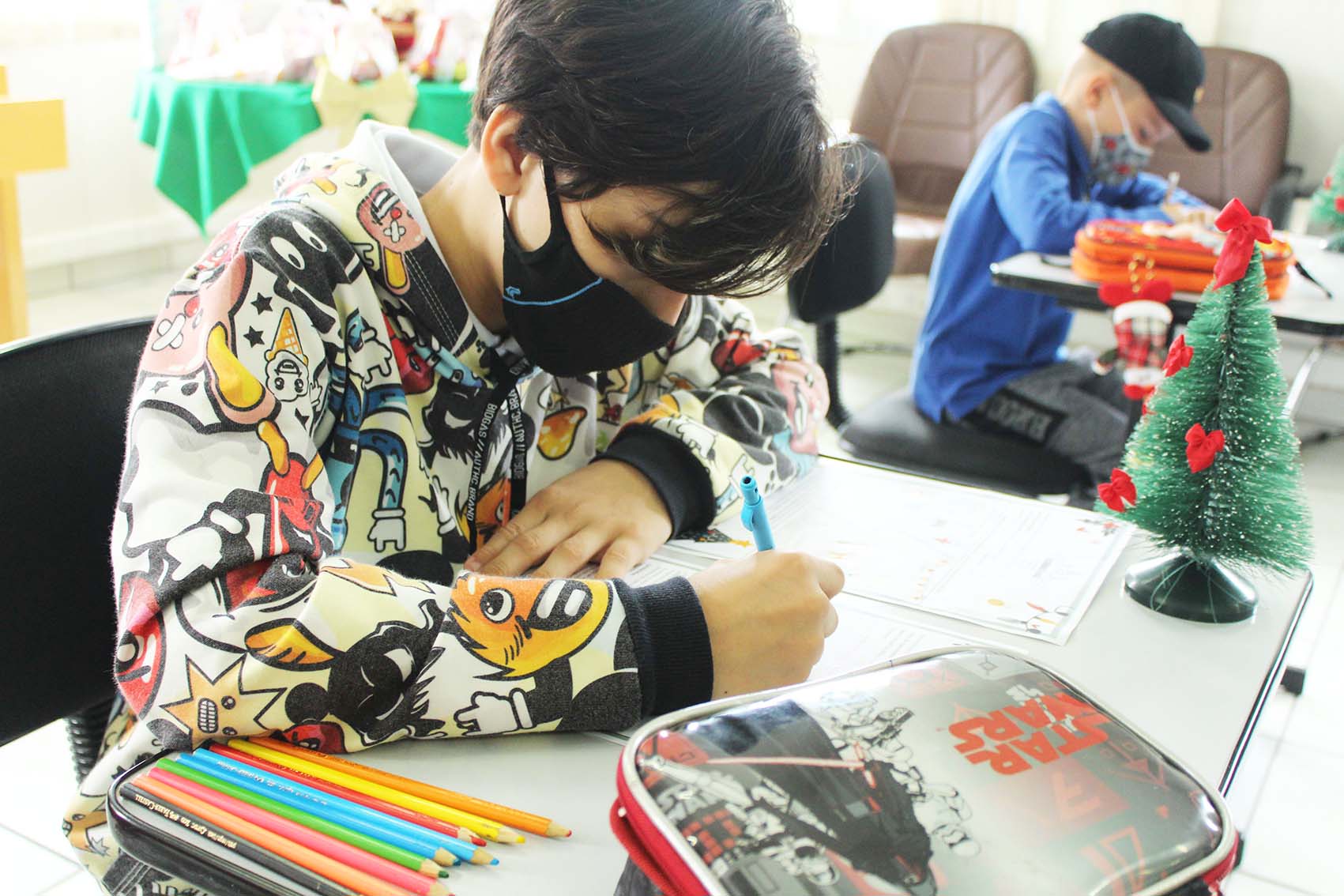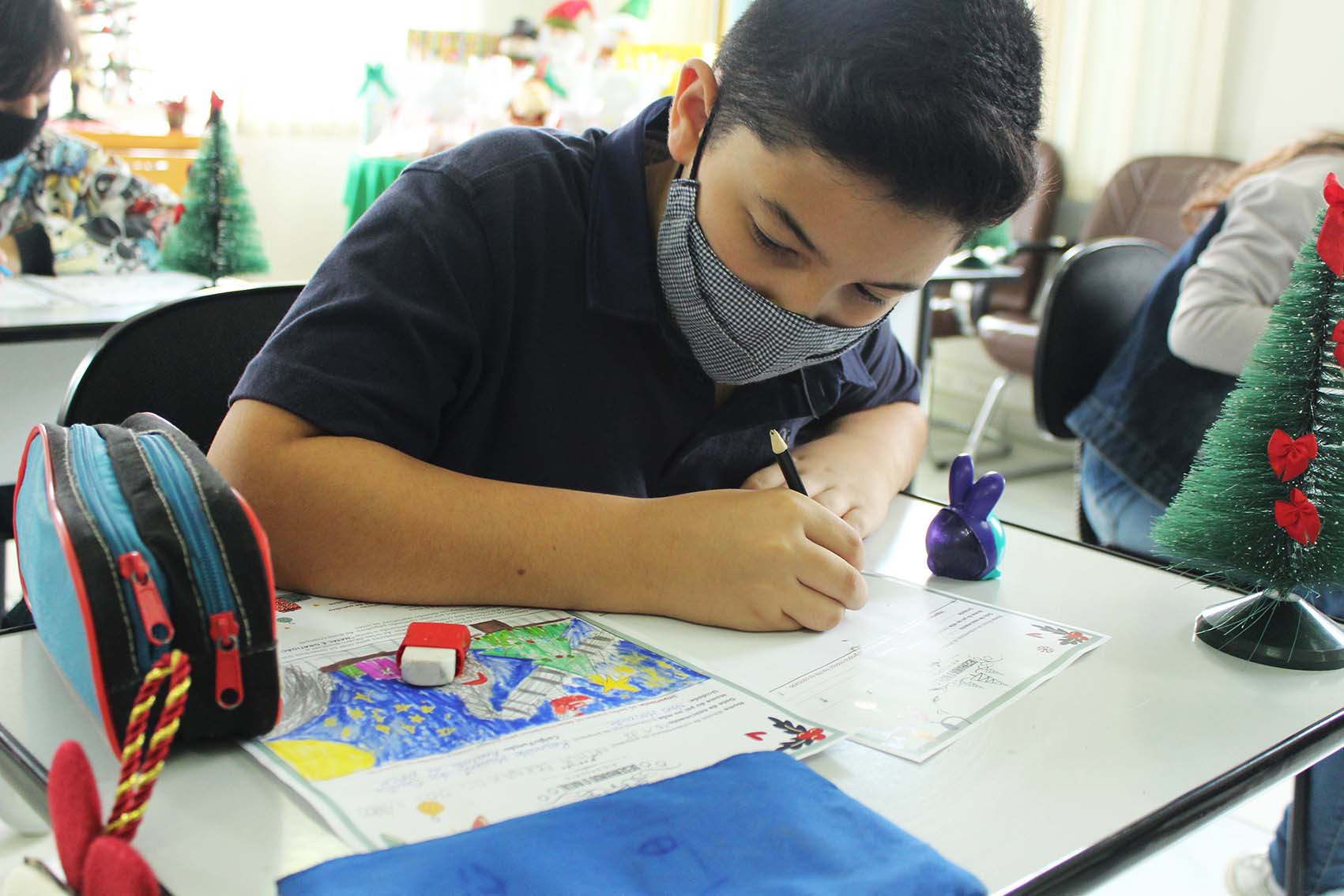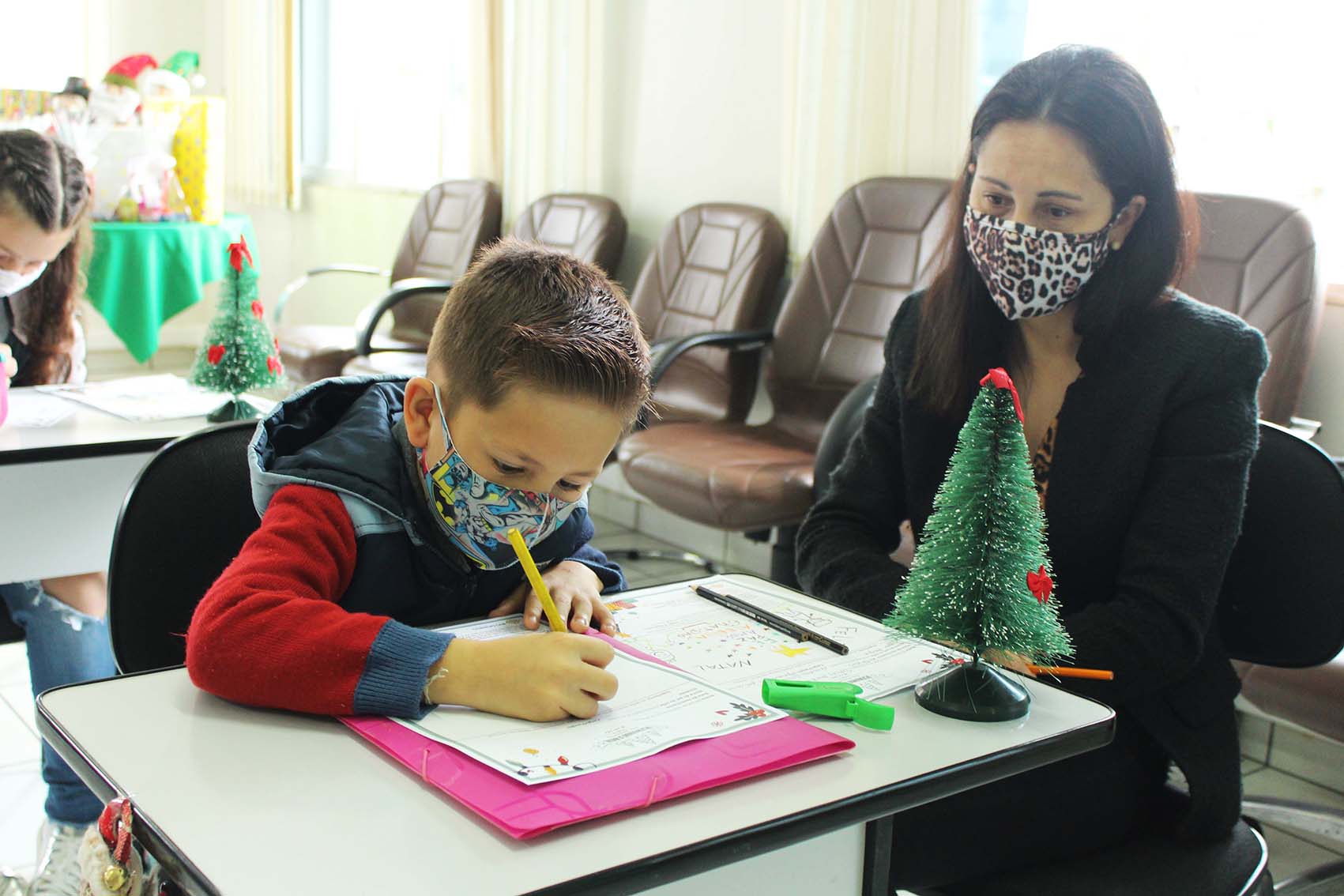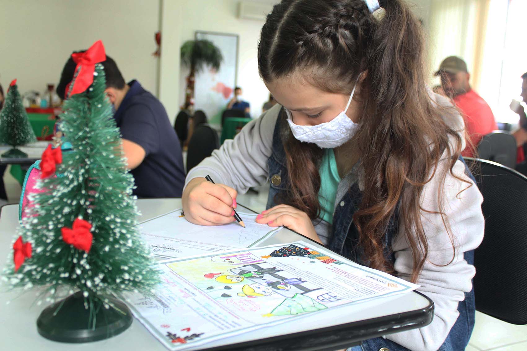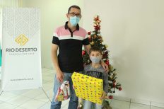 Crianças vencedoras do concurso “Desenhando o Natal Rio Deserto” refazem desenhos e são presenteadas