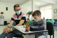 O encontro também foi acompanhado pelo pai ou mãe de cada criança (colaborador), pelo gerente da Unidade de Extração Mina Cruz de Malta, engenheiro mecânico Lander Gabriel De Bona, e pelo coordenador de unidade, do Complexo Industrial – Ragro, Giovani da Luz.