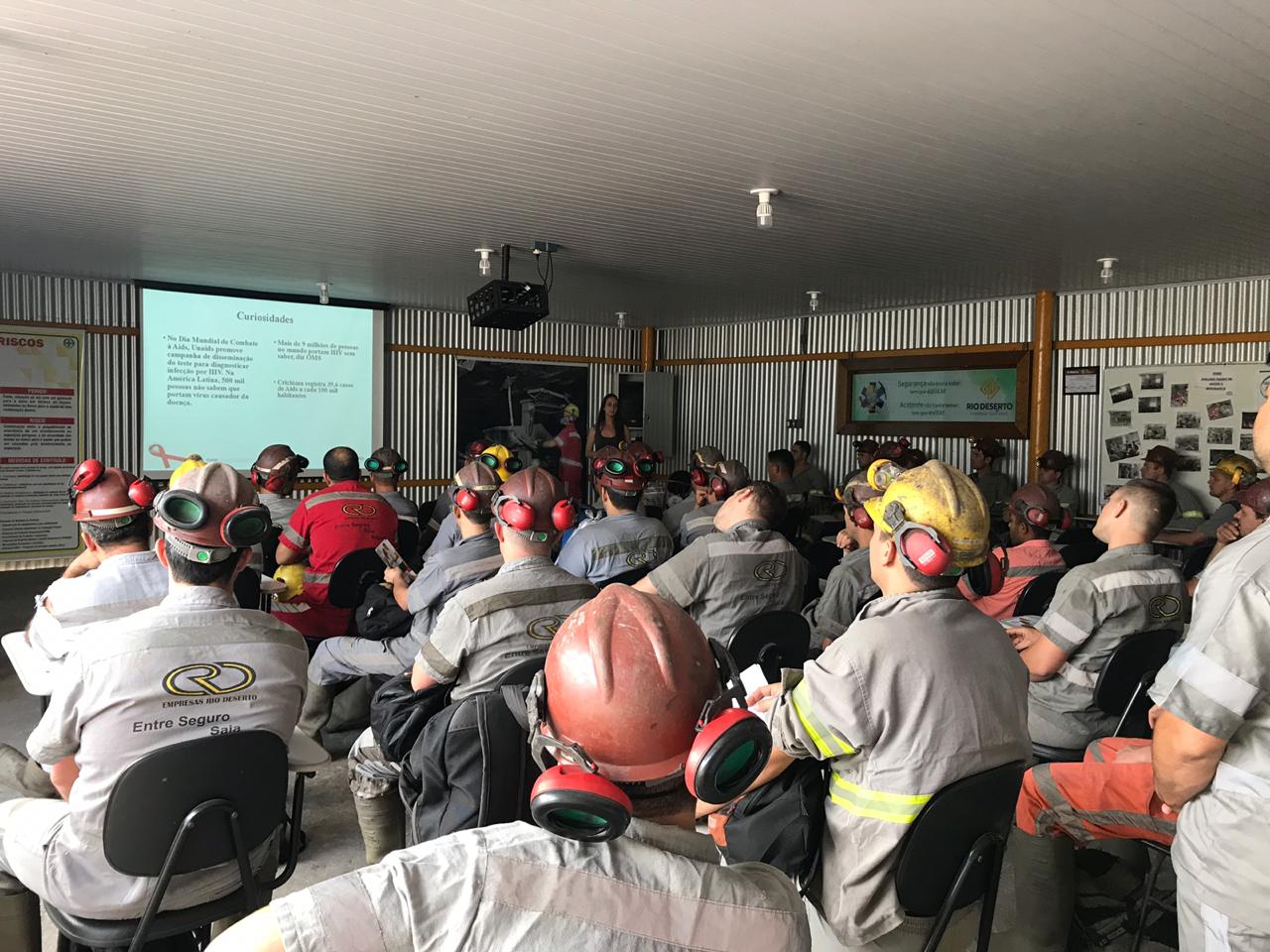 Em alusão ao Dezembro Vermelho, mês de luta contra a AIDS, foram disponibilizados, aos colaboradores da Rio Deserto, materiais informativos e testes rápidos de doenças como HIV, Sífilis e Hepatites. A ação, promovida pelo Departamento Médico, teve início no dia 10 e seguiu até o dia 20 de dezembro nas unidades Mina 101 (Içara/SC), Mina Cruz de Malta (Treviso/SC), Metalúrgica (Siderópolis/SC), Mina Novo Horizonte e Escritório Central (Criciúma/SC). Os procedimentos foram realizados em parceria com as unidades de saúde dos municípios.