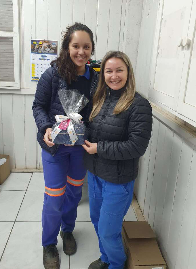 A assistente administrativo da Unidade de Extração Mina 101, Josiane dos Santos Machado Scarpato, grávida do primeiro filho, relata a gratidão pela homenagem. “Esse é o meu primeiro Dia das Mães. Com essa homenagem, a Rio Deserto reforça que nós podemos ser mãe e, ao mesmo tempo, grandes mulheres batalhadoras”, disse.