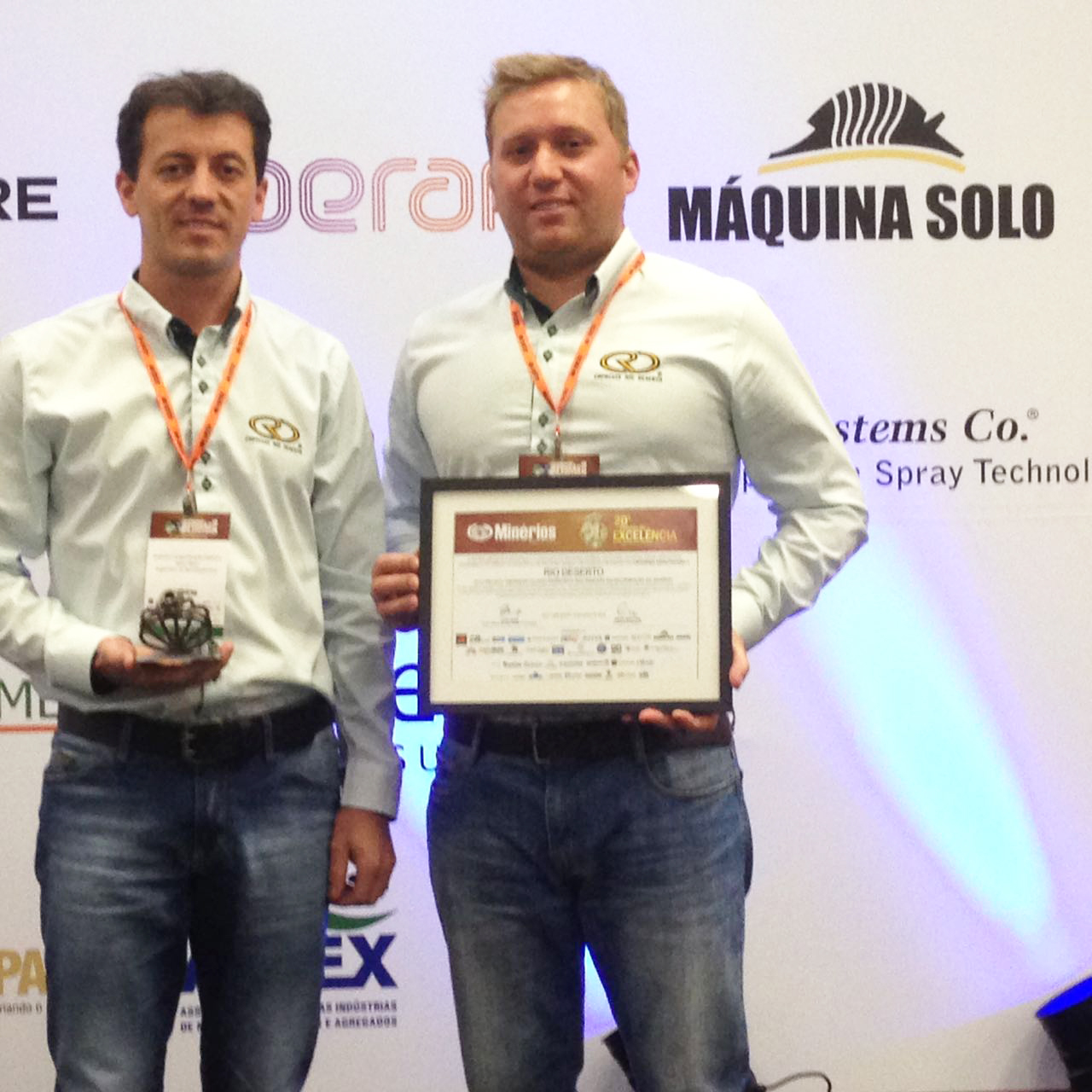 Organizada pela Revista Minérios & Minerales, a premiação tem o objetivo de divulgar, anualmente, as melhores tecnologias, processos e conceitos aplicados em mineradoras de todo o Brasil. As Empresas Rio Deserto também já foram premiadas outras vezes no Prêmio de Excelência da Indústria Minero-Metalúrgica Brasileira, mas nunca com dois títulos em uma única edição da premiação.