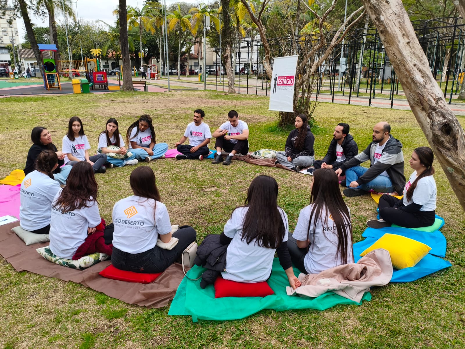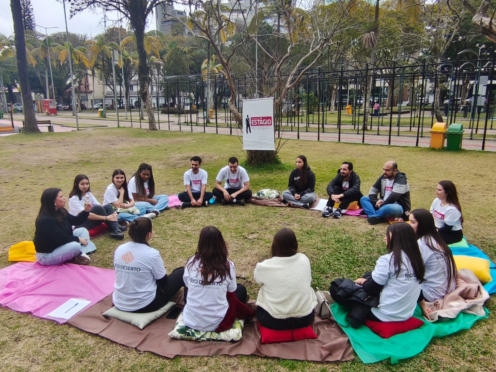 Uma tarde diferente e descontraída para tratar de assuntos como carreira, experiências e expectativas. Assim foi o 13º Encontro de Estagiários da Rio Deserto, realizado ao ar livre, na Praça do Congresso, no centro de Criciúma, no dia 15 de agosto.