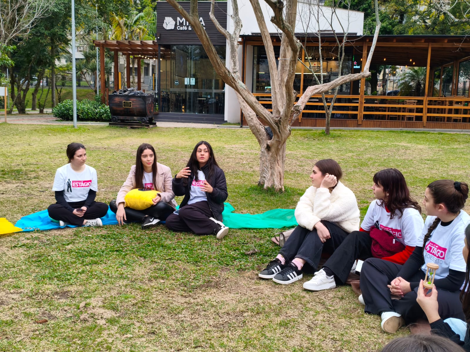Com o tema “O futuro é agora!”, o encontro reuniu estagiários em uma roda de conversa ao ar livre, que transformou o momento em um espaço de reflexão e conexão. Entre risadas e experiências compartilhadas, eles falaram sobre carreira, expectativas e os desafios de quem está dando os primeiros passos no mercado de trabalho. O ambiente descontraído favoreceu a proximidade e a interação entre todos, criando um clima de aprendizado coletivo.