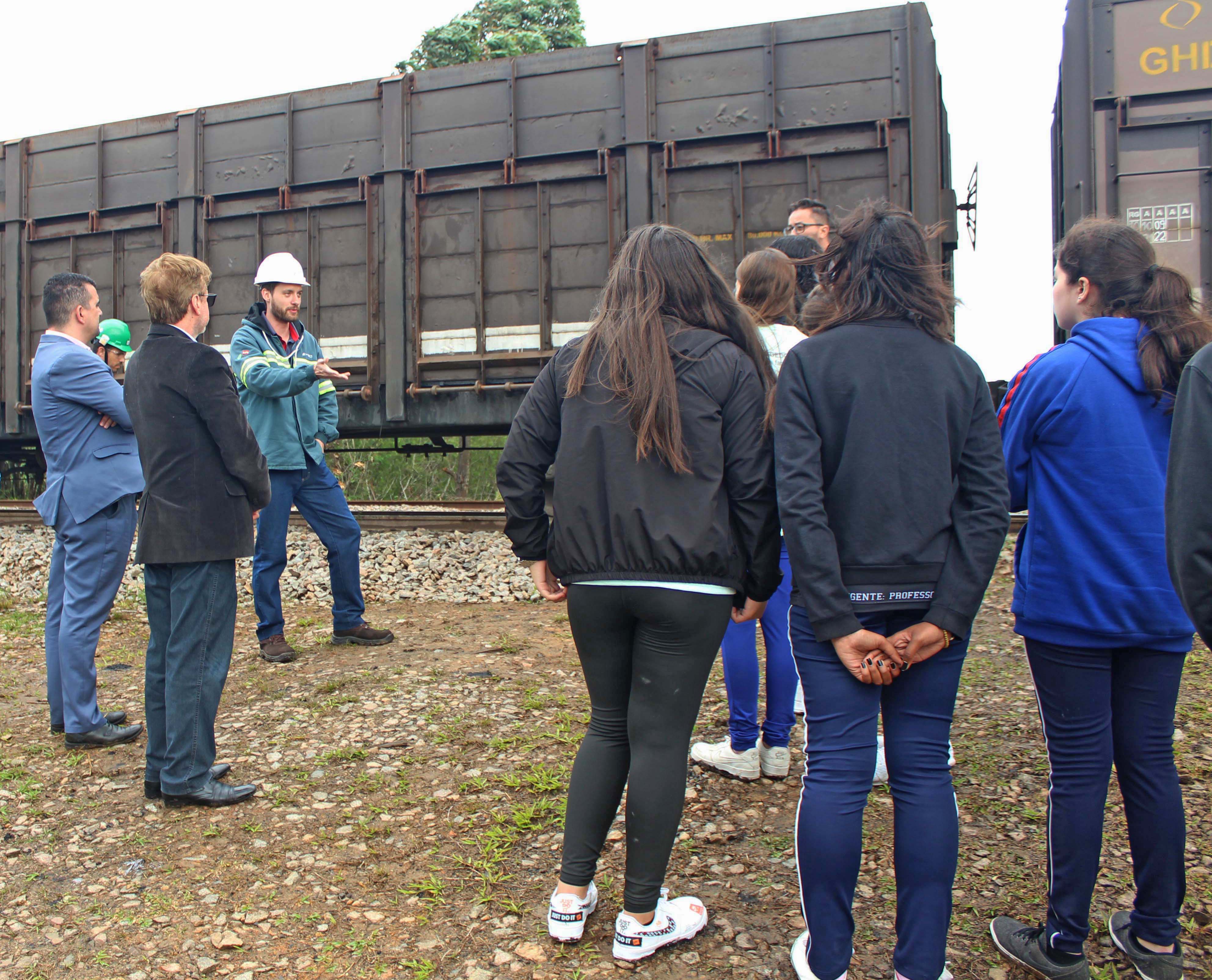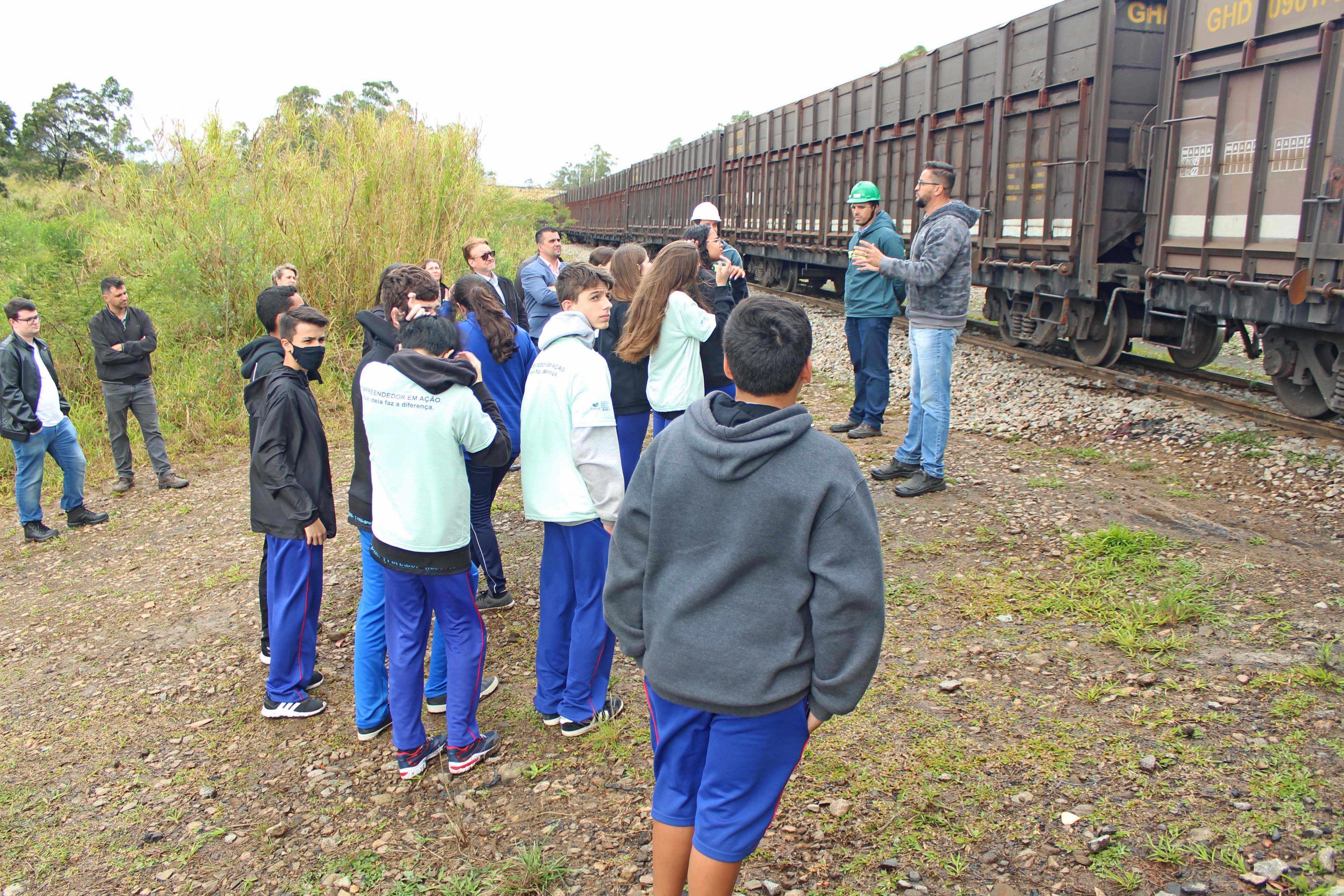 Estudantes conhecem carregamento de trem e estrutura da Unidade Mina Novo Horizonte, da Rio Deserto