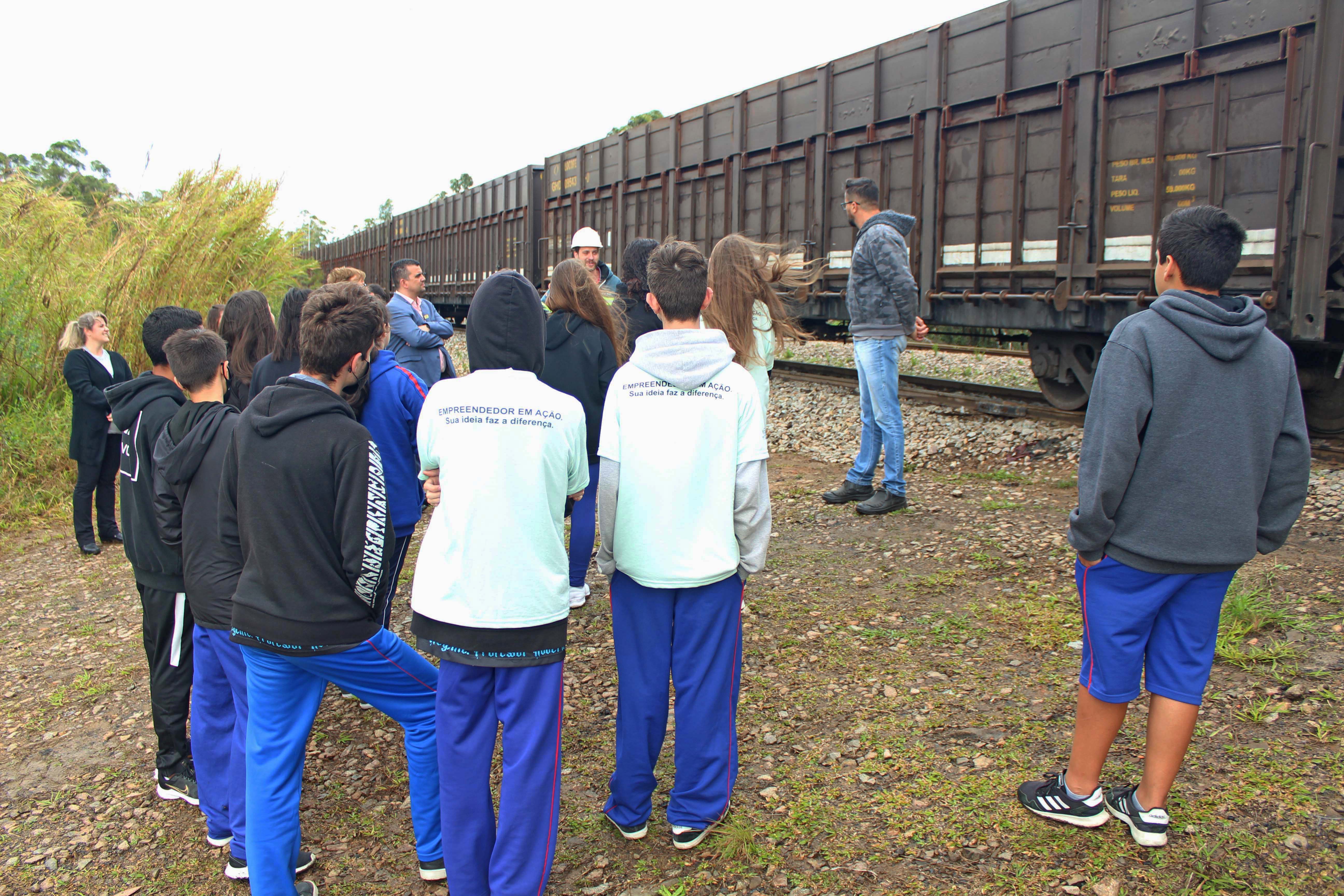 O carregamento do trem e a importância do carvão mineral foram destaques na visita dos estudantes da Escola Municipal de Educação Básica Serafina Milioli Pescador, de Criciúma, à Unidade Mina Novo Horizonte, da Rio Deserto. A atividade aconteceu na quinta-feira, dia 6, integrando o calendário do Projeto Clube Jovem Empreendedor, promovido pela Prefeitura Municipal, com o apoio da Associação Empresarial de Criciúma (Acic).
