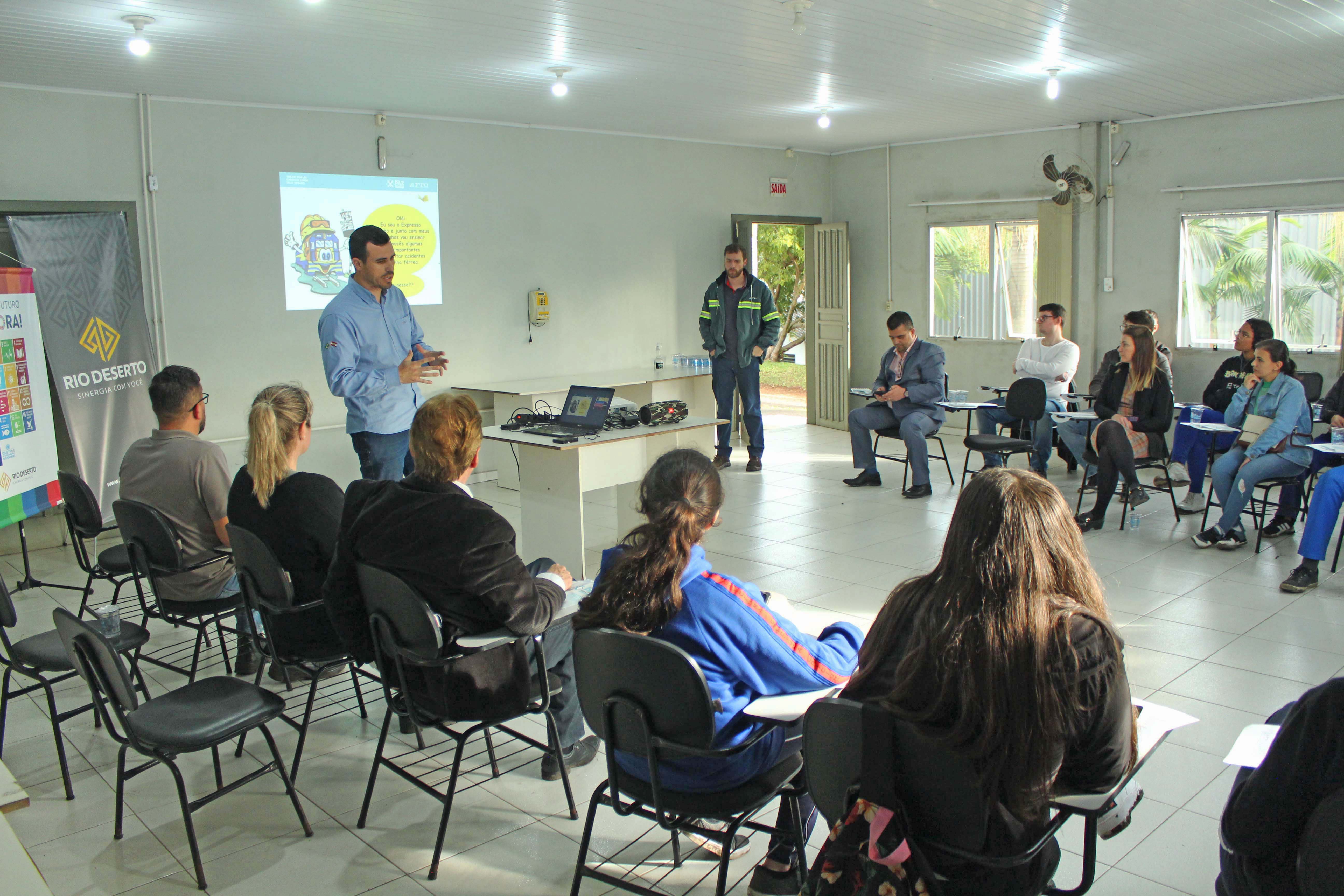 Além de conhecer a estrutura da unidade, como a Estação de Tratamento de Efluentes (ETE), os alunos compreenderam o processo atual de extração e beneficiamento de carvão mineral, por meio de vídeo, bem como a atenção da Rio Deserto em aspectos com o meio ambiente, saúde, segurança, educação, valorização de pessoas, meio social e outros. Profissionais da Ferrovia Tereza Cristina (FTC) também acompanharam a visita e fizeram uma conscientização sobre cuidados em relação à linha férrea.