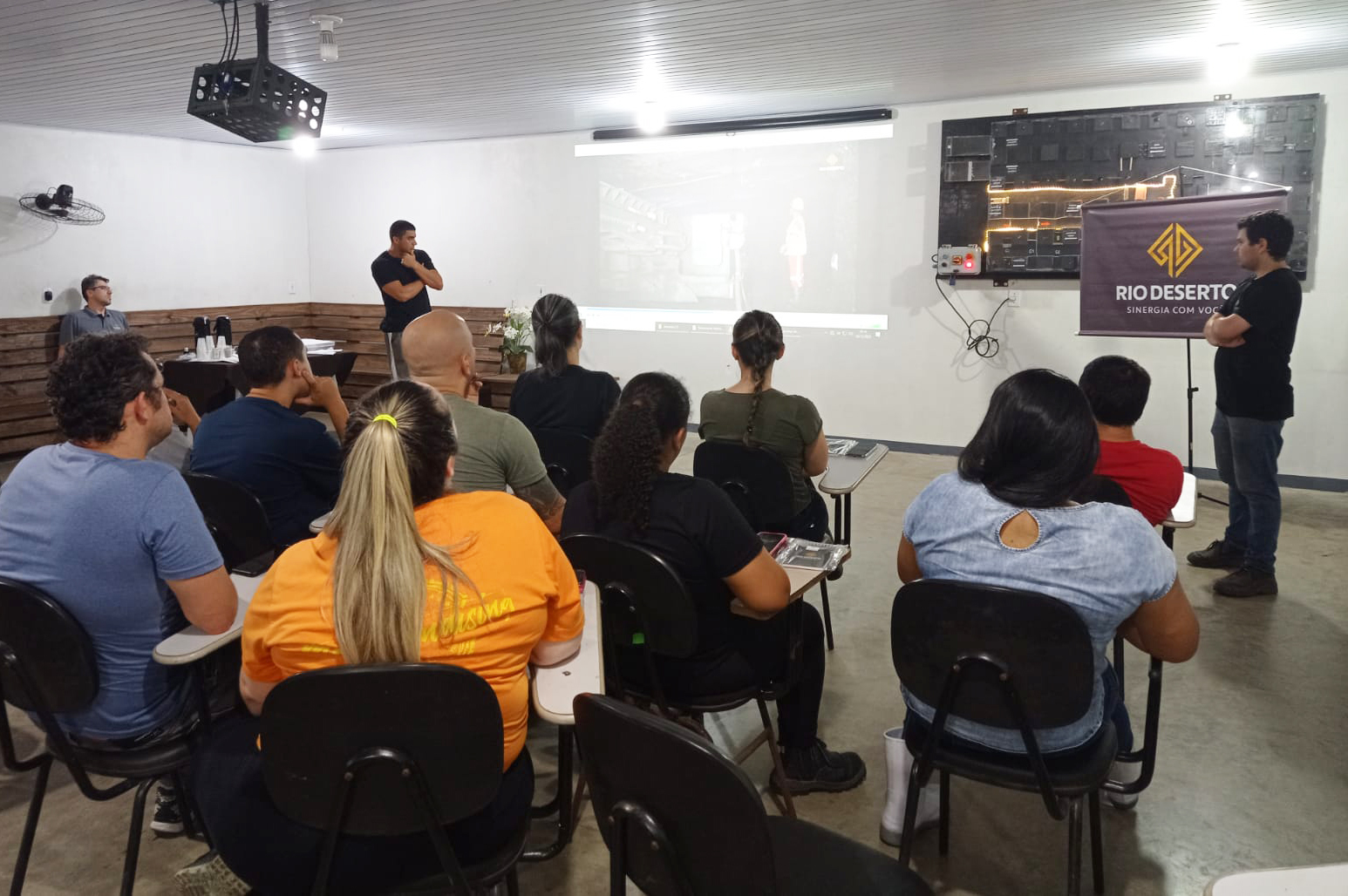 A visita foi acompanhada pela analista de Recursos Humanos da Rio Deserto, Alice Constantino Joaquim; pelo especialista em beneficiamento, Adriel Constantino Machado; o analista de desenvolvimento, Fernando Souza da Silva; o técnico de segurança do trabalho, Marco Antônio Colle Gomes Paz; e o supervisor de segurança do trabalho, Guilherme Rosso Ceza.