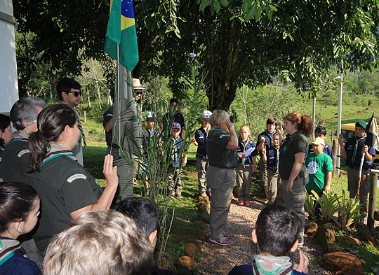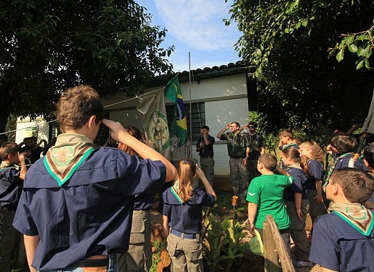 O Instituto Felinos do Aguaí recebeu neste sábado (13/09) o Grupo Escoteiro Leão Baio de Treviso. O grupo foi criado em Março/2014 e seu nome foi inspirado nos trabalhos realizados pelo instituto, que se dedica conservação dos felinos silvestres, em especial o Leão-baio. As atividades contaram com a participação de 44 crianças, além de monitores e responsáveis pelo grupo, que realizaram seu primeiro bivaque (atividade extra-sede). Durante o encontro, buscou-se conscientizar os escoteiros e lobinhos sobre a importância do papel ecológico do Leão-baio na manutenção de nossas florestas.