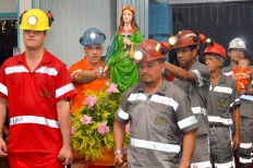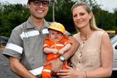 As homenagens à Santa Bárbara, Padroeira dos Mineiros, reuniram colaboradores da Unidade de Extração Mina Cruz de Malta, da Rio Deserto, localizada em Treviso (SC), nesta semana. Com a roupa de trabalho e acompanhados da família, eles participaram de procissões e celebrações. Dois colaboradores, o engenheiro de minas, Samuel Henrique de Andrade Campos, e o mecânico de apoio, Julian Alves, também vestiram os filhos com roupas iguais às dos trabalhadores do carvão.