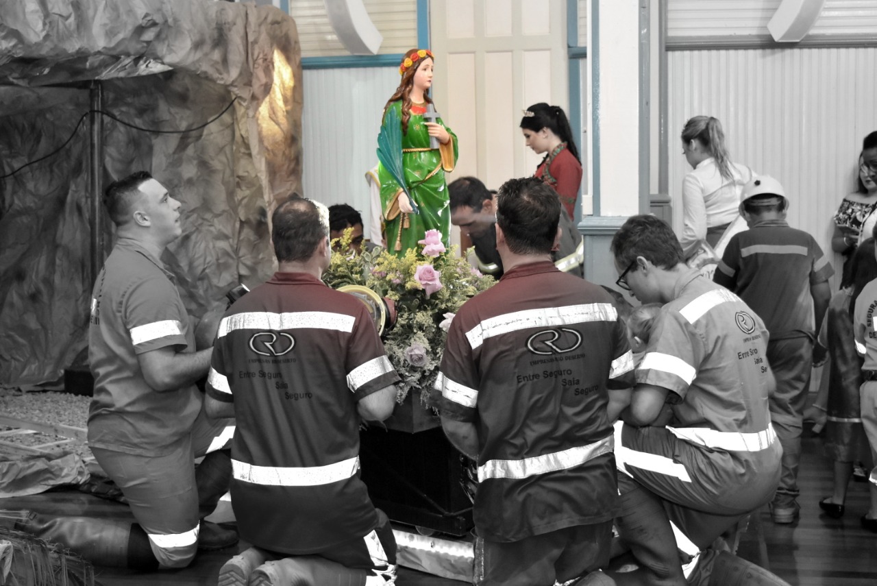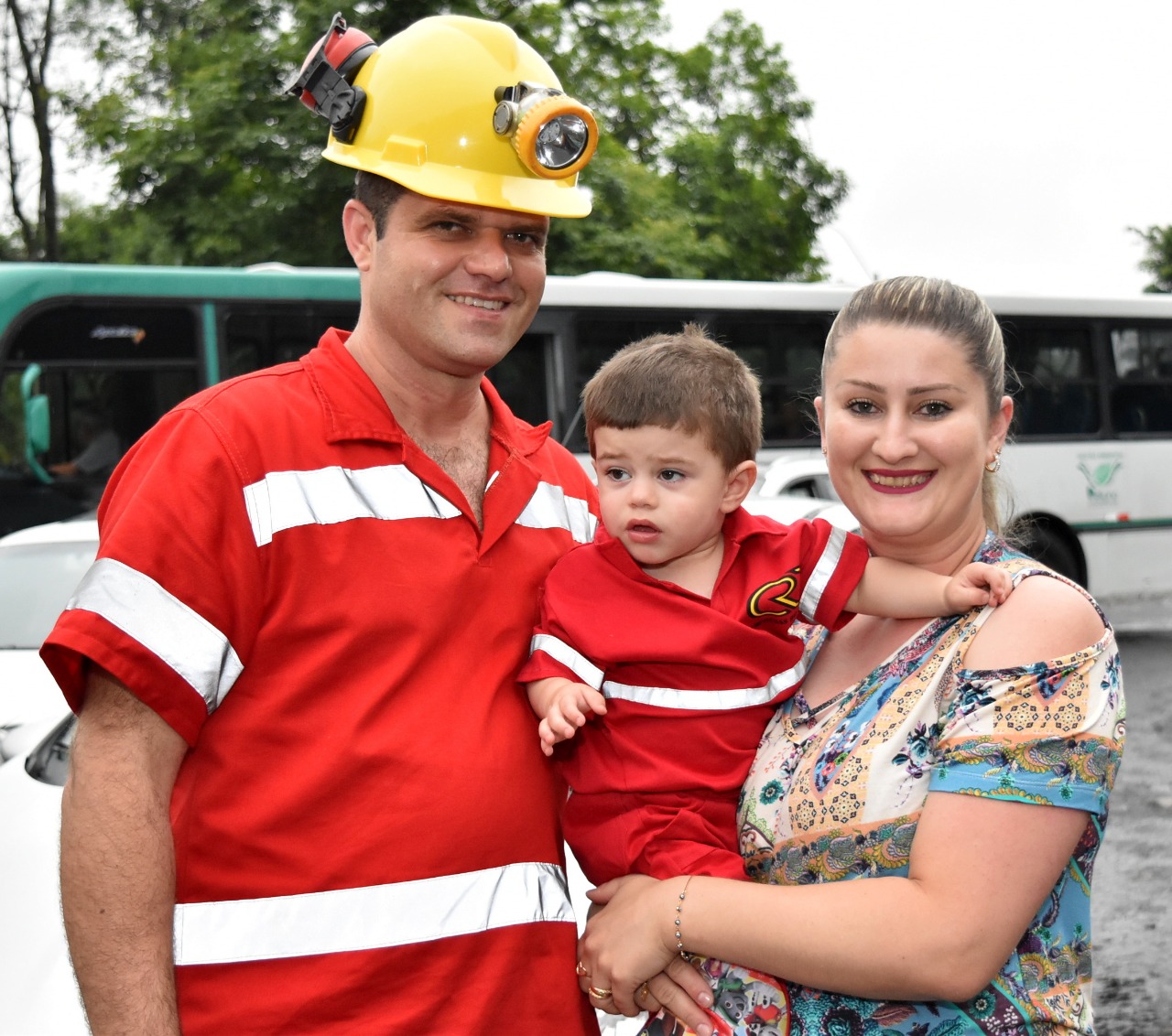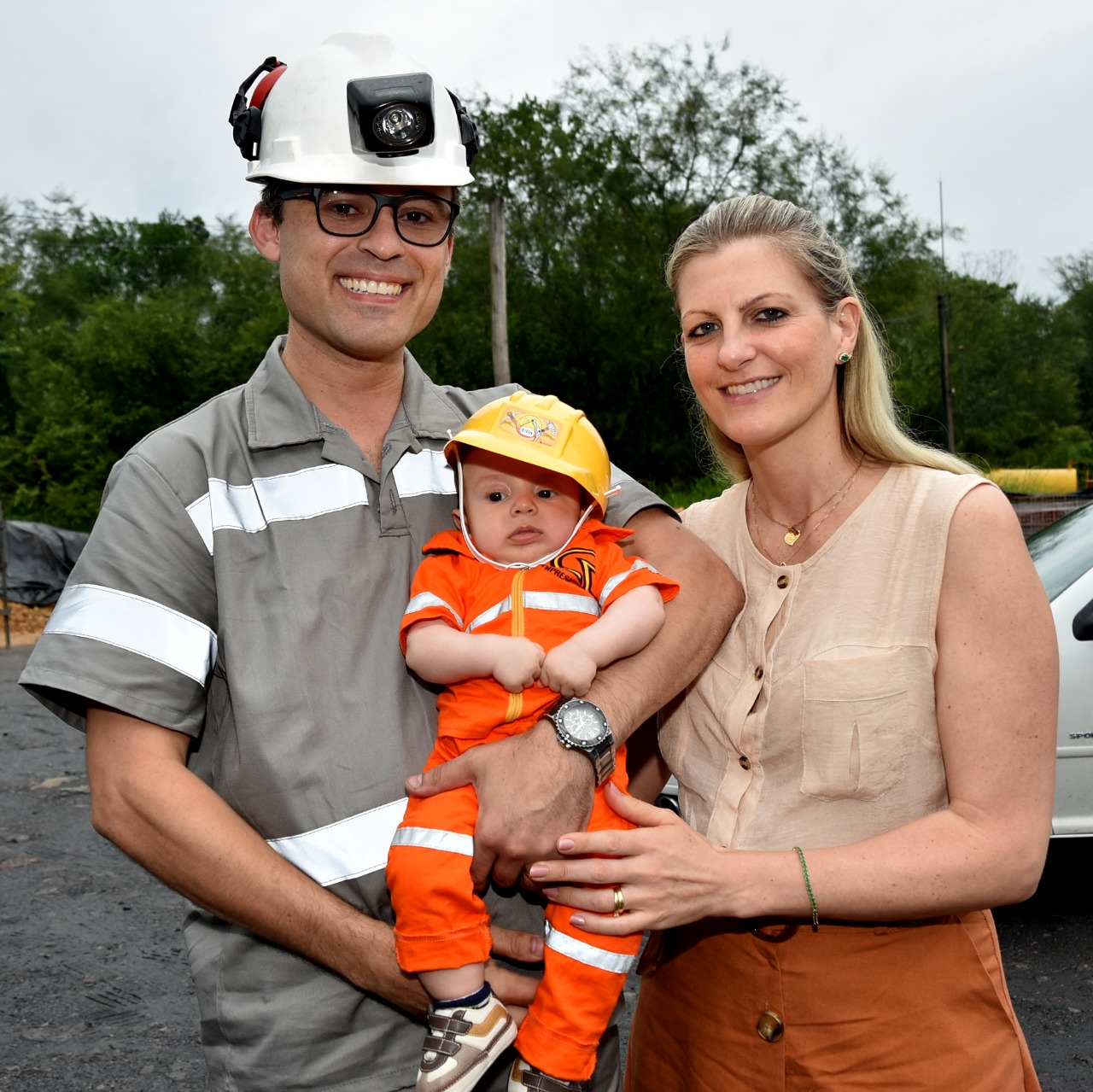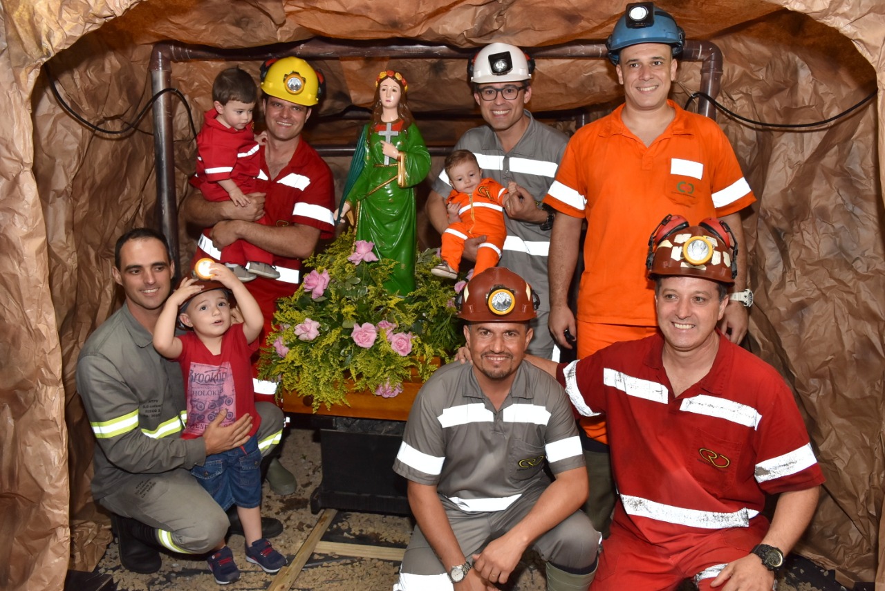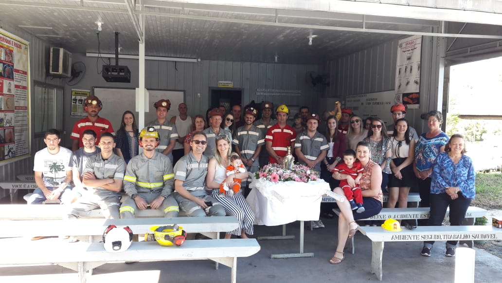 As homenagens à Santa Bárbara, Padroeira dos Mineiros, reuniram colaboradores da Unidade de Extração Mina Cruz de Malta, da Rio Deserto, localizada em Treviso (SC), nesta semana. Com a roupa de trabalho e acompanhados da família, eles participaram de procissões e celebrações. Dois colaboradores, o engenheiro de minas, Samuel Henrique de Andrade Campos, e o mecânico de apoio, Julian Alves, também vestiram os filhos com roupas iguais às dos trabalhadores do carvão.