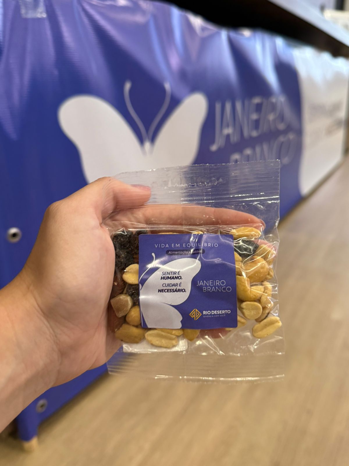 Como parte das ações práticas, também foram distribuídos mixes de nuts (castanha de caju, castanha do pará, amêndoas, amendoim e uva passas) aos colaboradores, reforçando a conexão entre saúde mental e hábitos de vida mais saudáveis. A iniciativa simboliza o incentivo à alimentação equilibrada como aliada do bem-estar físico e emocional.