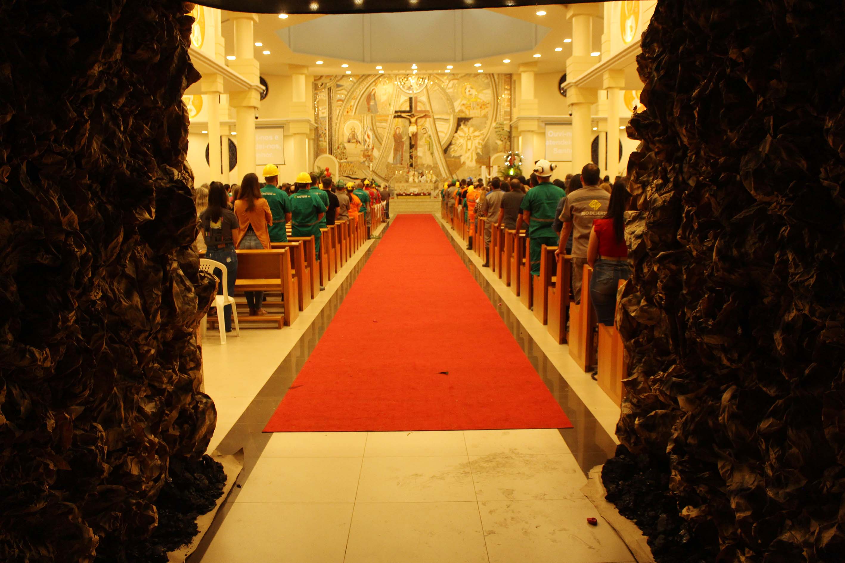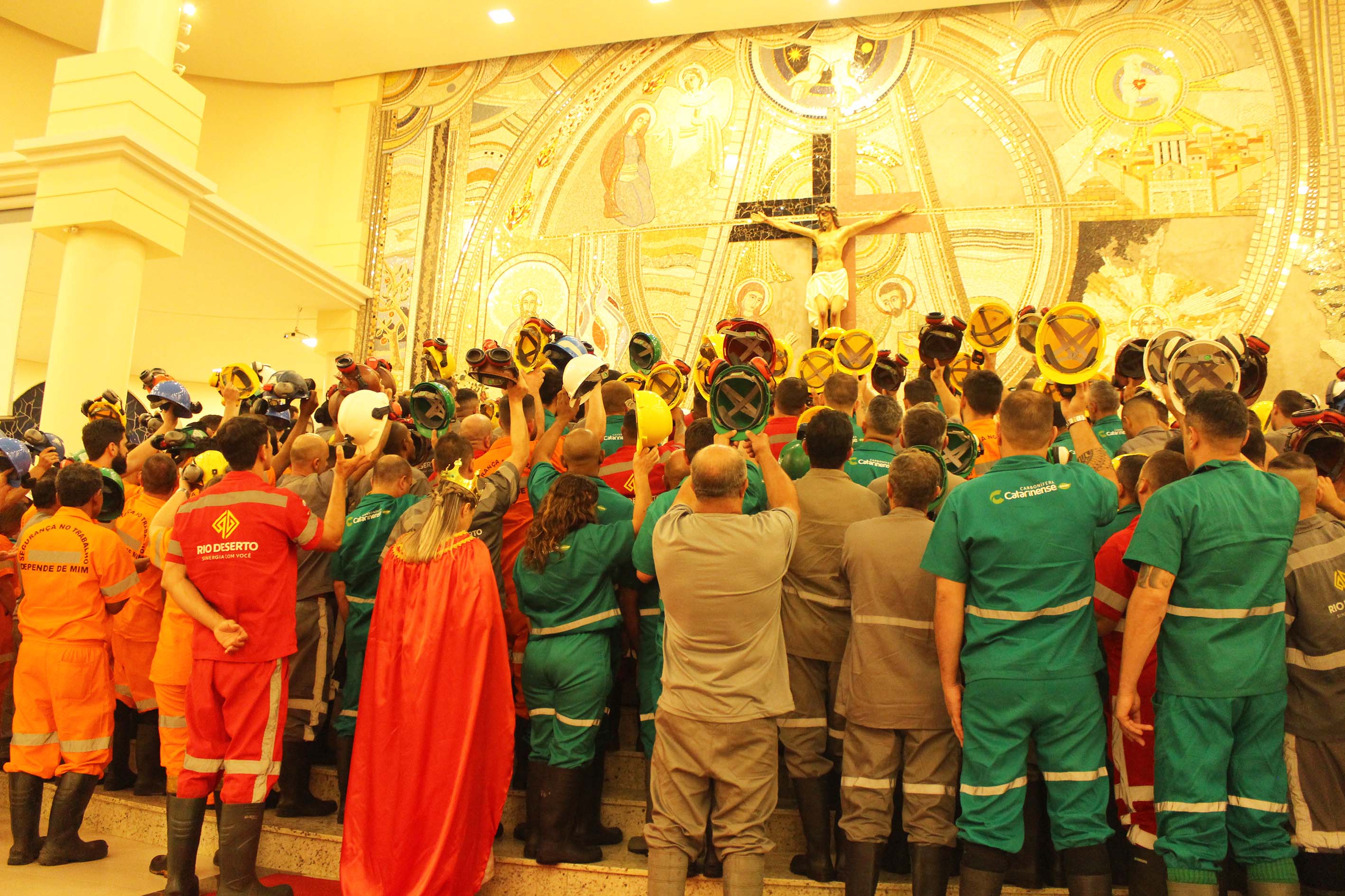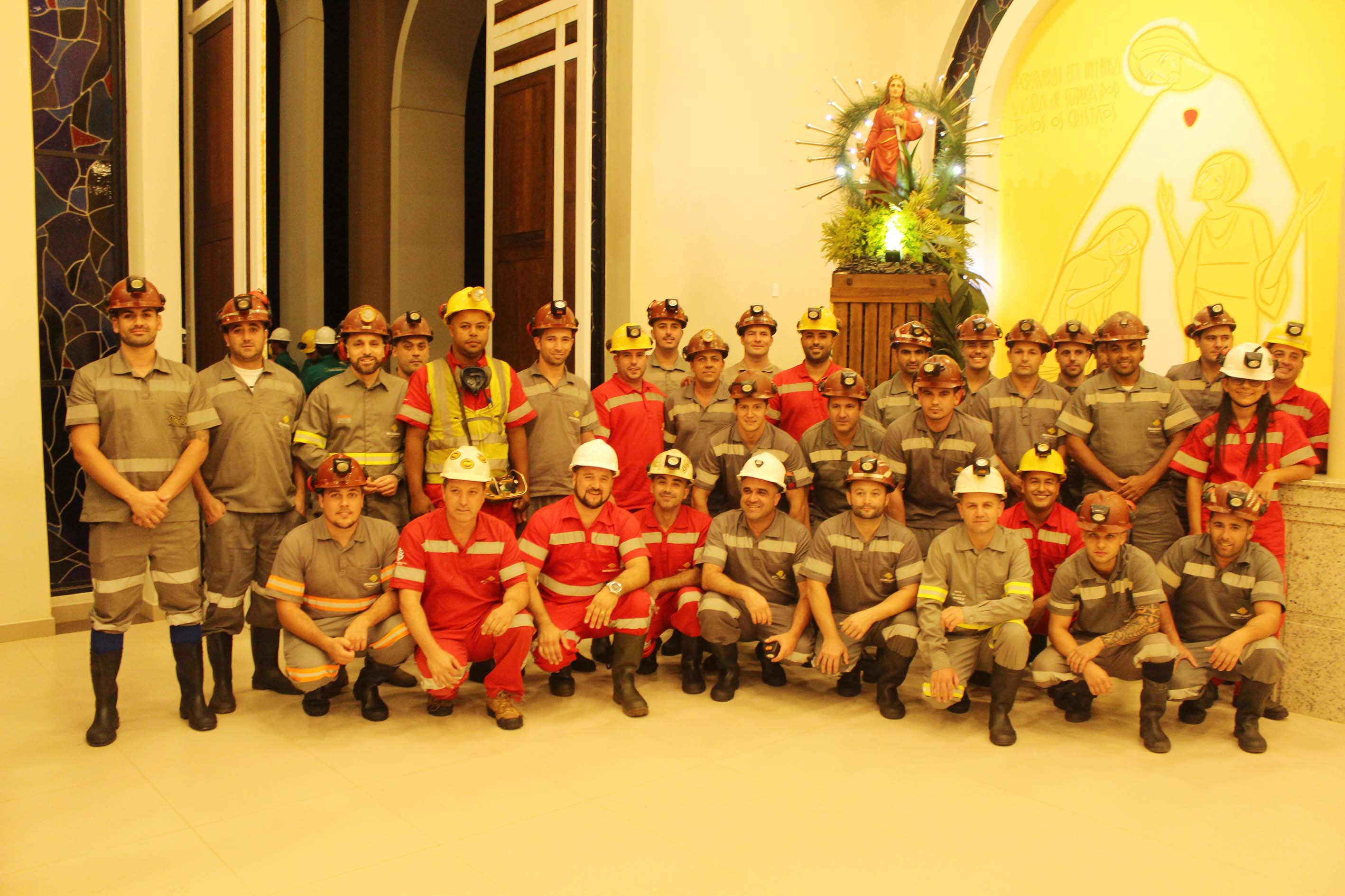 A celebração foi aberta à comunidade e presidida por Dom Vitório Pavanello – Arcebispo Emérito da Arquidiocese de Campo Grande (Mato Grosso do Sul). Para a missa, o andor com a imagem de Santa Bárbara (padroeira dos mineiros) foi todo decorado com carvão bruto e folhas verdes, representando a evolução da mineração e o cuidado das empresas com o meio ambiente. Na entrada principal do Santuário, um túnel também imitou as galerias de subsolo.