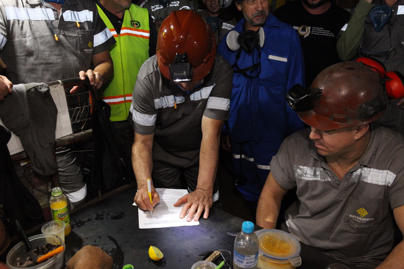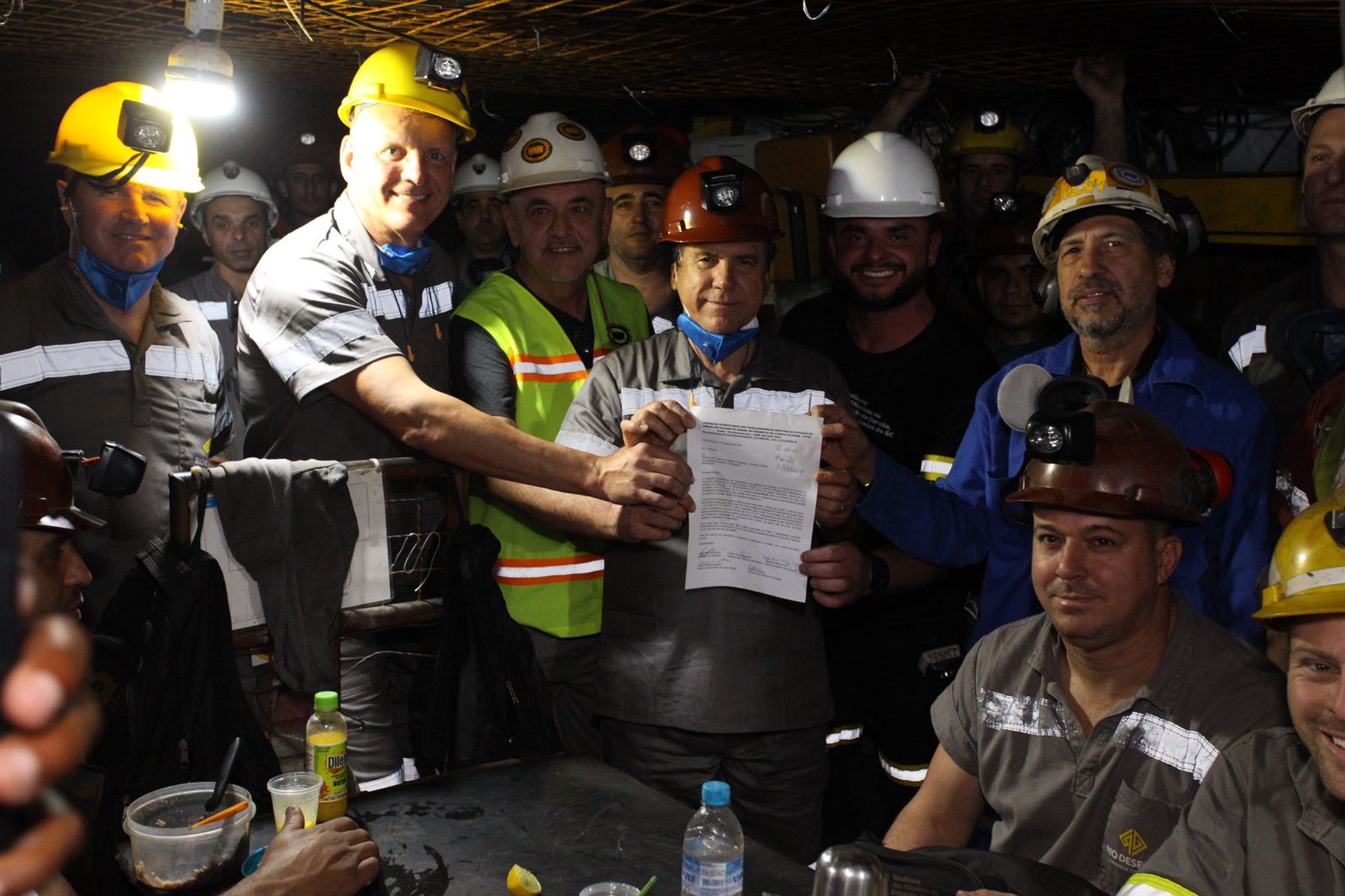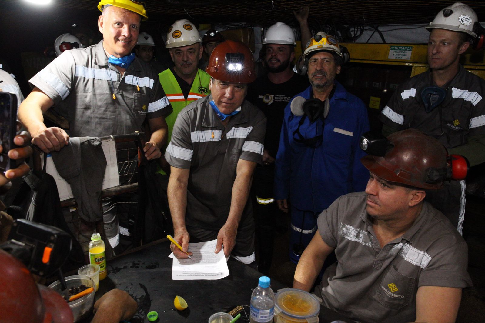No subsolo, os representantes dos sindicatos entregaram um documento ao Ministro solicitando apoio na questão do tempo de serviço para aposentadoria dos mineiros, bem como apoio no processo de Transição Energética Justa. Atualmente, o Setor Carbonífero gera cerca de 20 mil empregos diretos e indiretos.