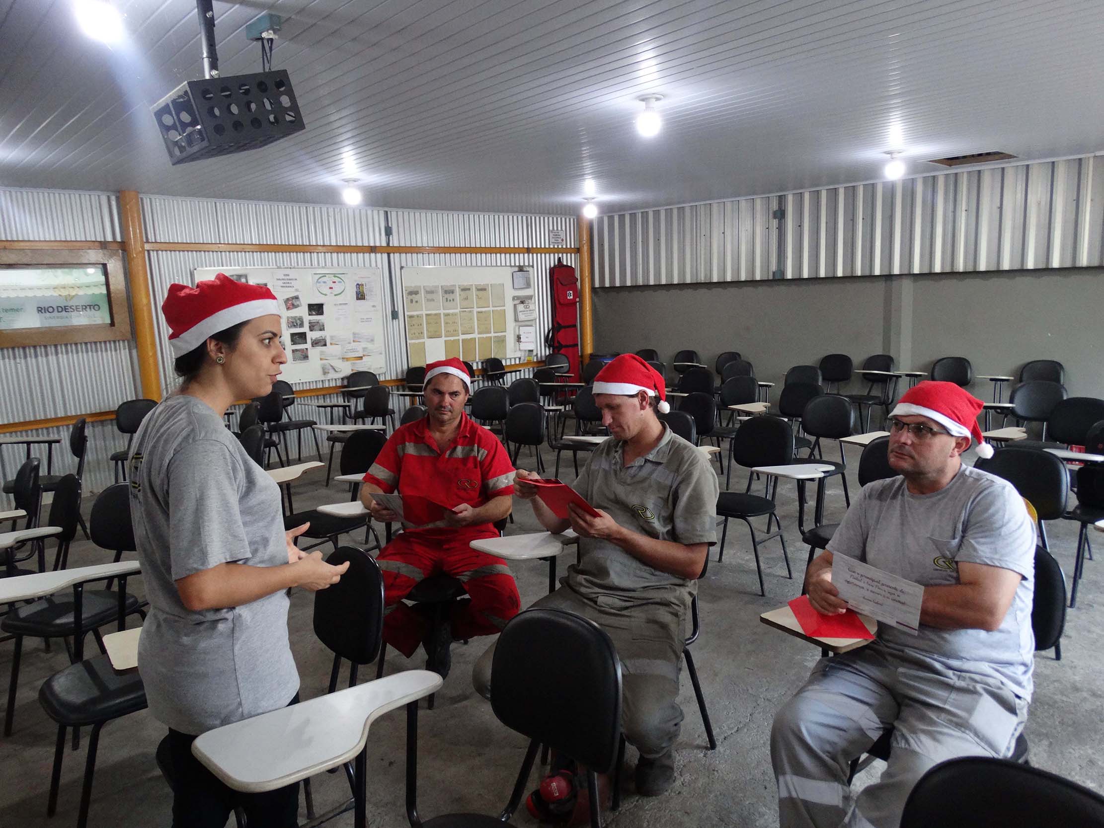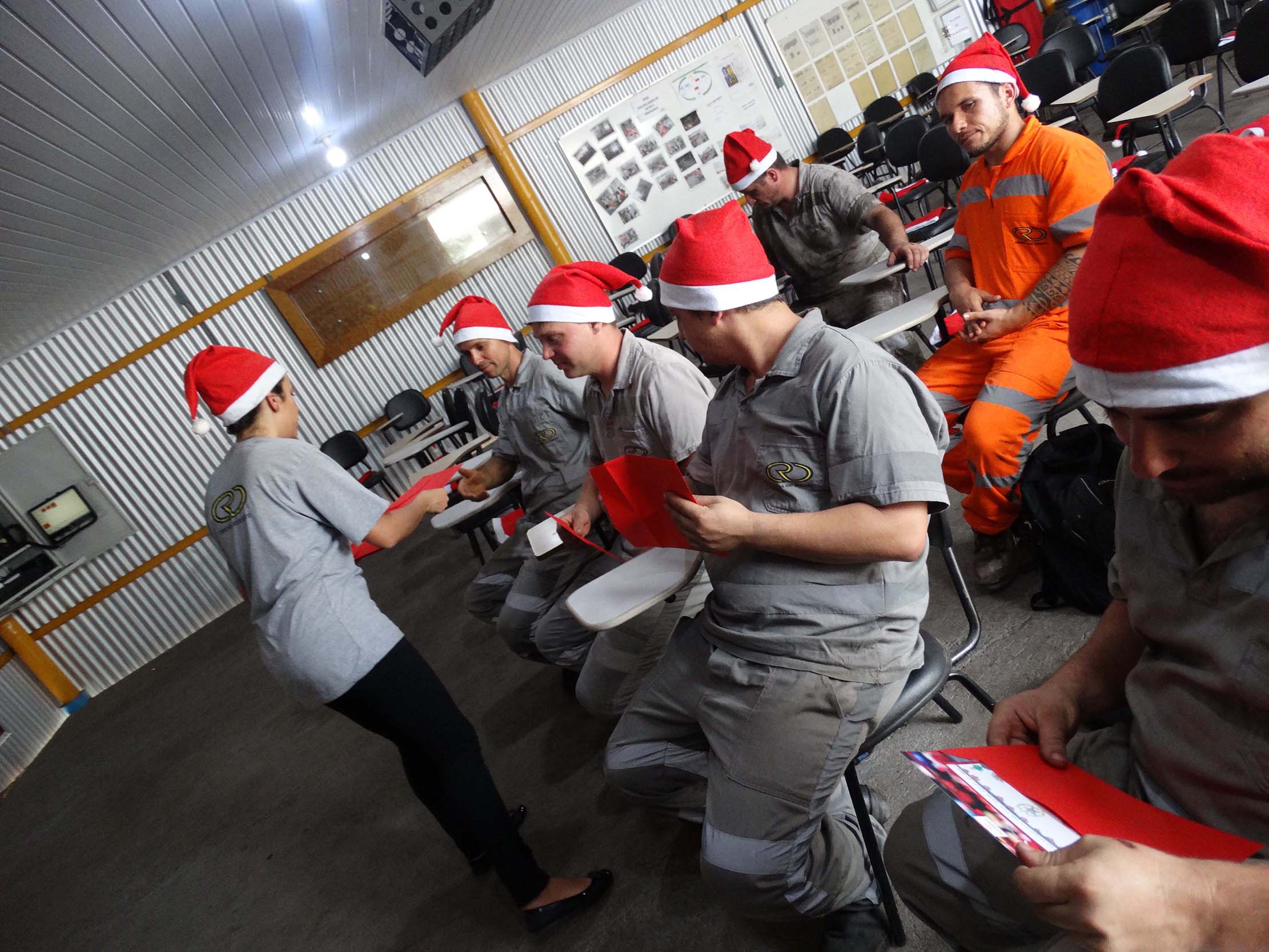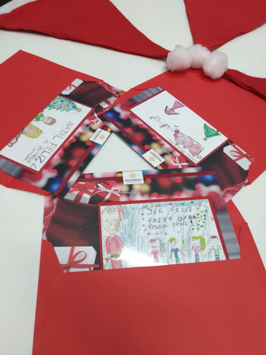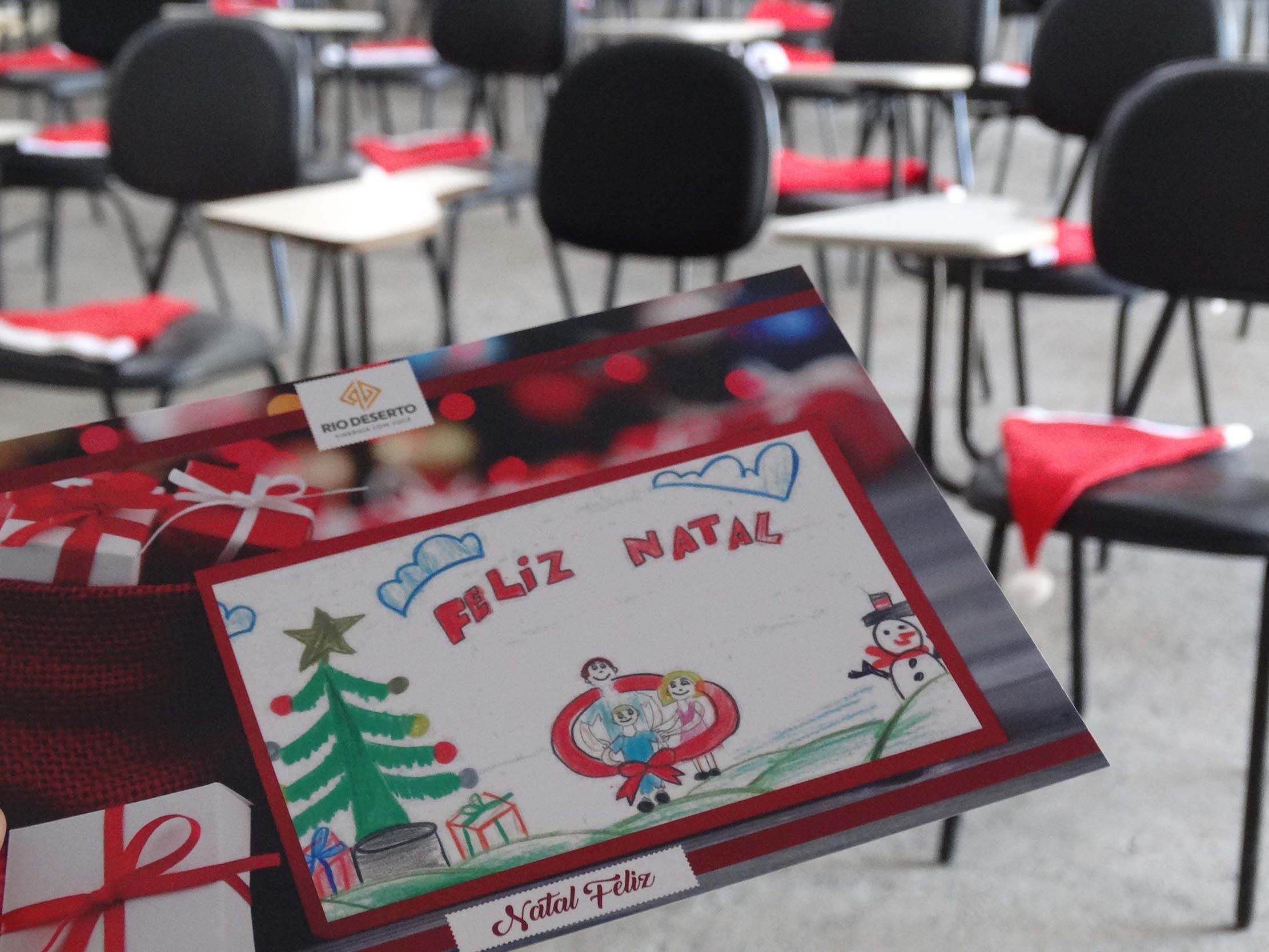Nos encontros, todos os colaboradores foram presenteados com uma ave natalina, que foi entregue em uma bolsa térmica, e com cartões de fim de ano ilustrados com desenhos produzidos por filhos de trabalhadores, por meio do projeto “Desenhando o Natal Rio Deserto”.