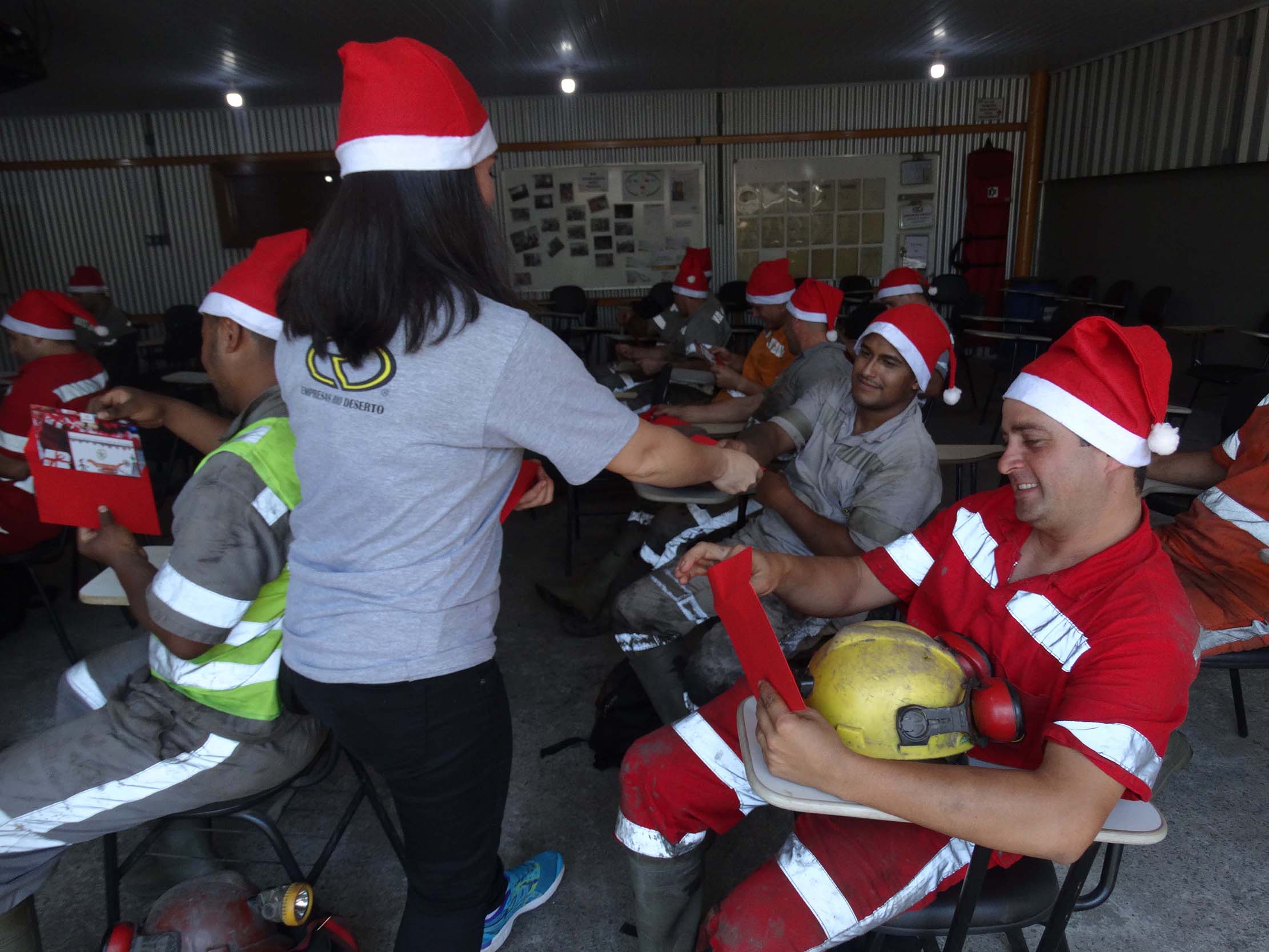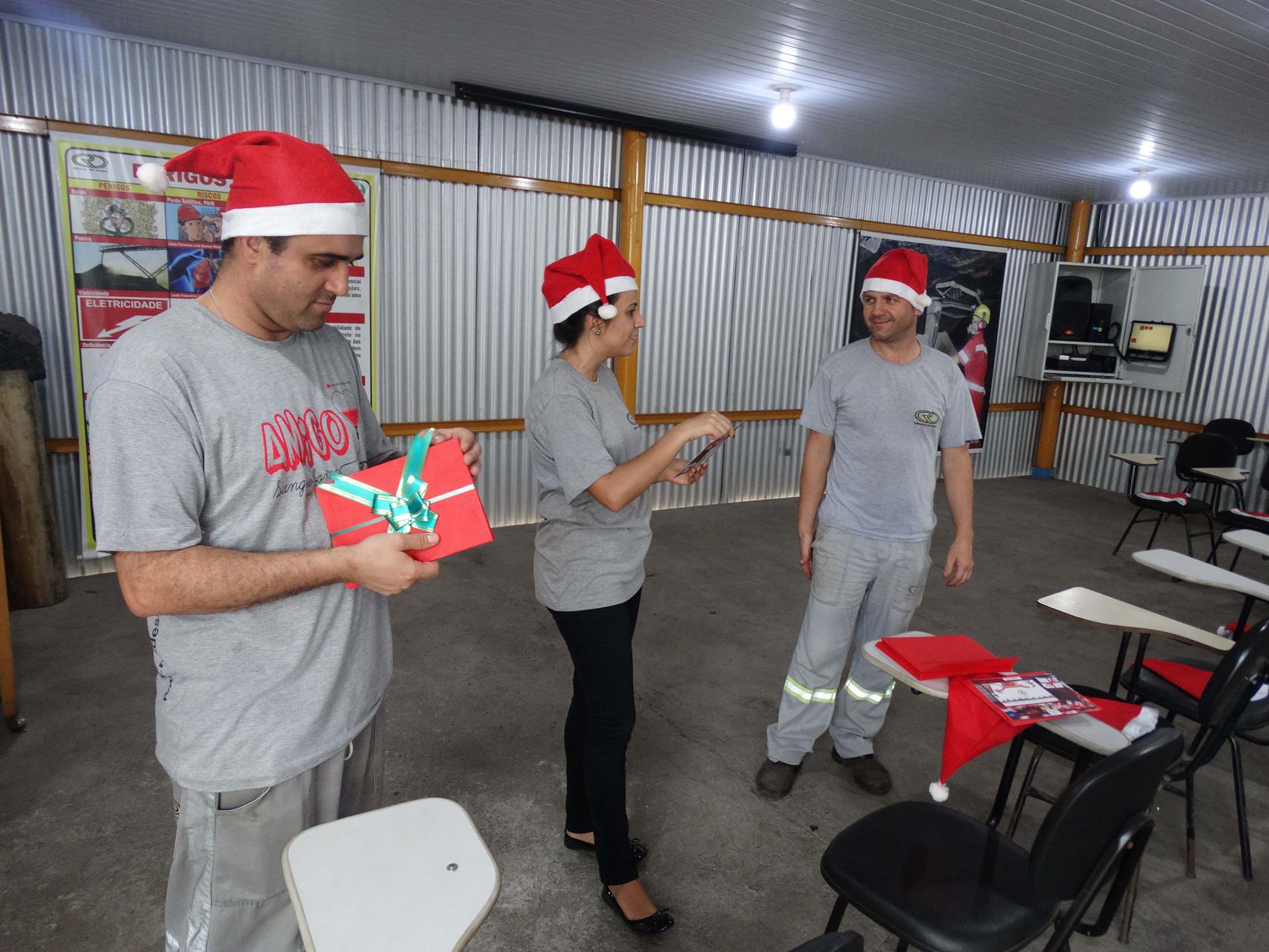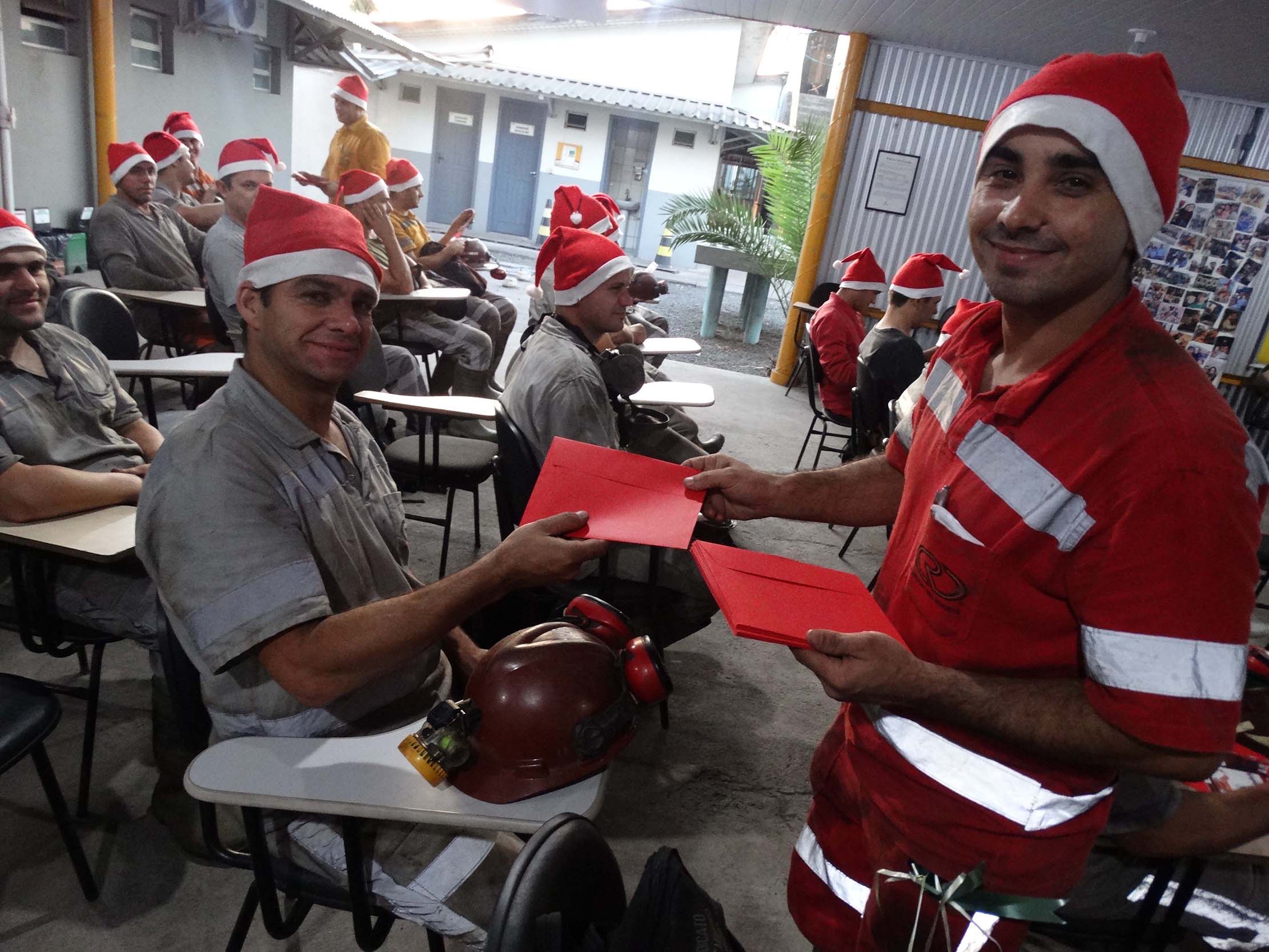 Nos encontros, todos os colaboradores foram presenteados com uma ave natalina, que foi entregue em uma bolsa térmica, e com cartões de fim de ano ilustrados com desenhos produzidos por filhos de trabalhadores, por meio do projeto “Desenhando o Natal Rio Deserto”.