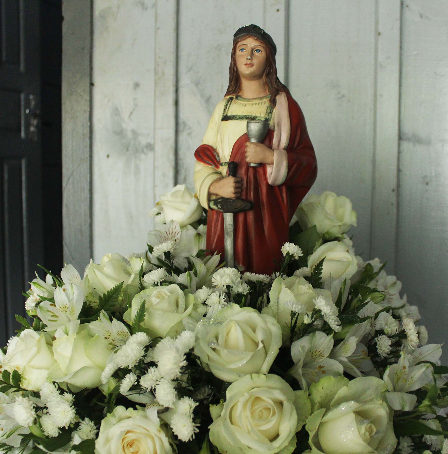 Na sexta-feira, dia 4, as homenagens seguiram na igreja matriz de Treviso, quando foi realizada uma celebração religiosa em homenagem à padroeira dos mineiros, com a presença de colaboradores da Rio Deserto vestidos com a roupa de trabalho. A imagem de Santa Bárbara, que fica na Mina Cruz de Malta, também foi levada, ornamentada com flores, para a igreja.