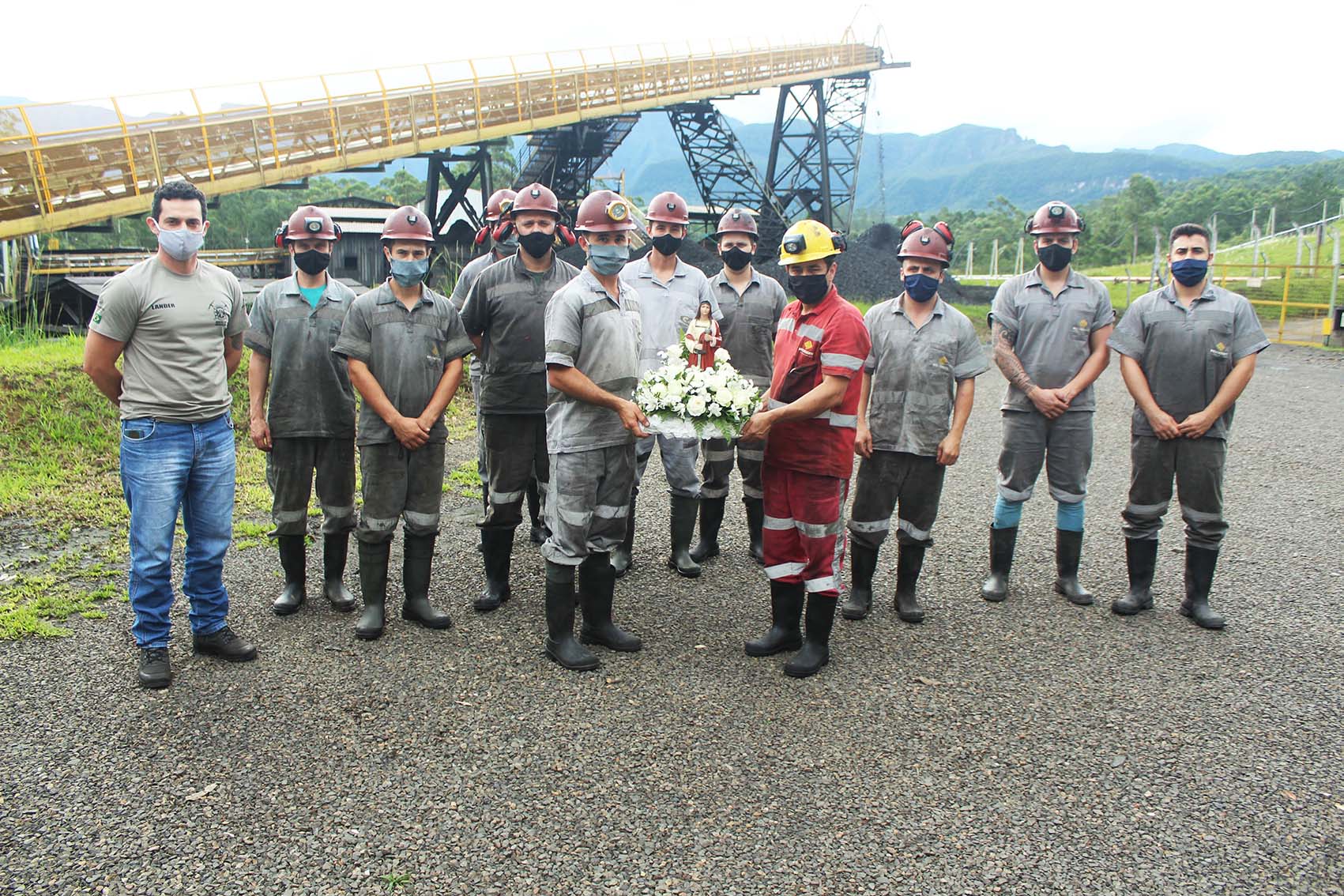 Na Unidade de Extração Mina Cruz de Malta, localizada em Treviso, os colaboradores do turno da manutenção se reuniram na tarde de quinta-feira, dia 3, para um momento de oração, no pátio da unidade. Com capacetes em mãos, em frente à imagem de Santa Bárbara, refletiram sobre o ano e agradeceram pela vida e pelo trabalho, que proporciona sustento às famílias.