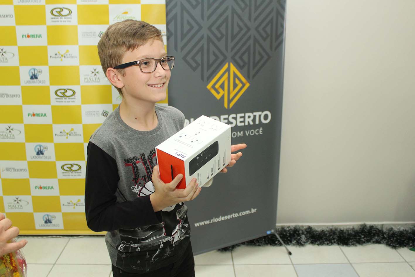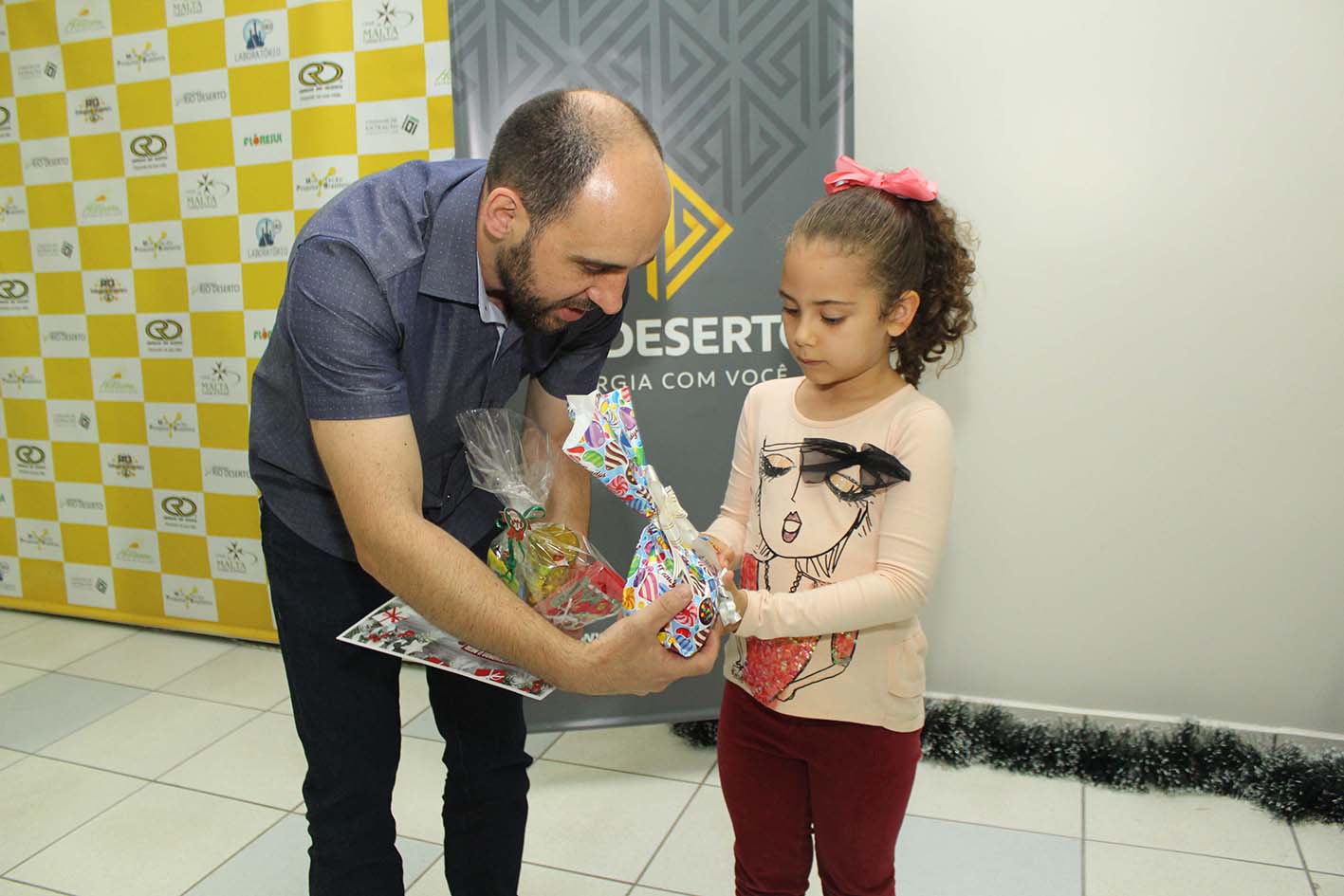 Pais e filhos se reuniram na última quinta-feira, dia 25, para o evento de premiação da 5ª edição do Projeto Desenhando o Natal Rio Deserto. Na ocasião, as crianças vencedoras refizeram os desenhos, comprovando a autoria da arte, receberam certificados e foram presenteadas. O encontro aconteceu no Escritório Central. Os seis desenhos vencedores (dois em cada categoria) ilustrarão os cartões de fim de ano da Rio Deserto.