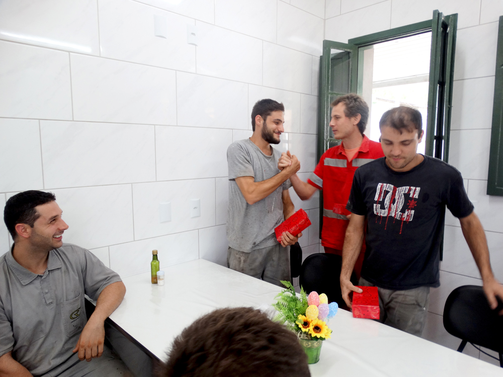 Os gerentes e supervisores das unidades das Empresas Rio Deserto também tiveram participação especial nos encontros de Páscoa. Pelo terceiro ano consecutivo, o supervisor da drenagem da Unidade de Extração Mina 101, Paulo Sergio da Rosa, teve a oportunidade de falar sobre a data com os colegas de trabalho. “Destaquei o significado e o simbolismo da Páscoa, pois esse é um momento de alegria, união, de estar com os colegas e, principalmente, estar com a família. Quando a família vai bem, o trabalho vai bem, tudo vai bem”, salienta.