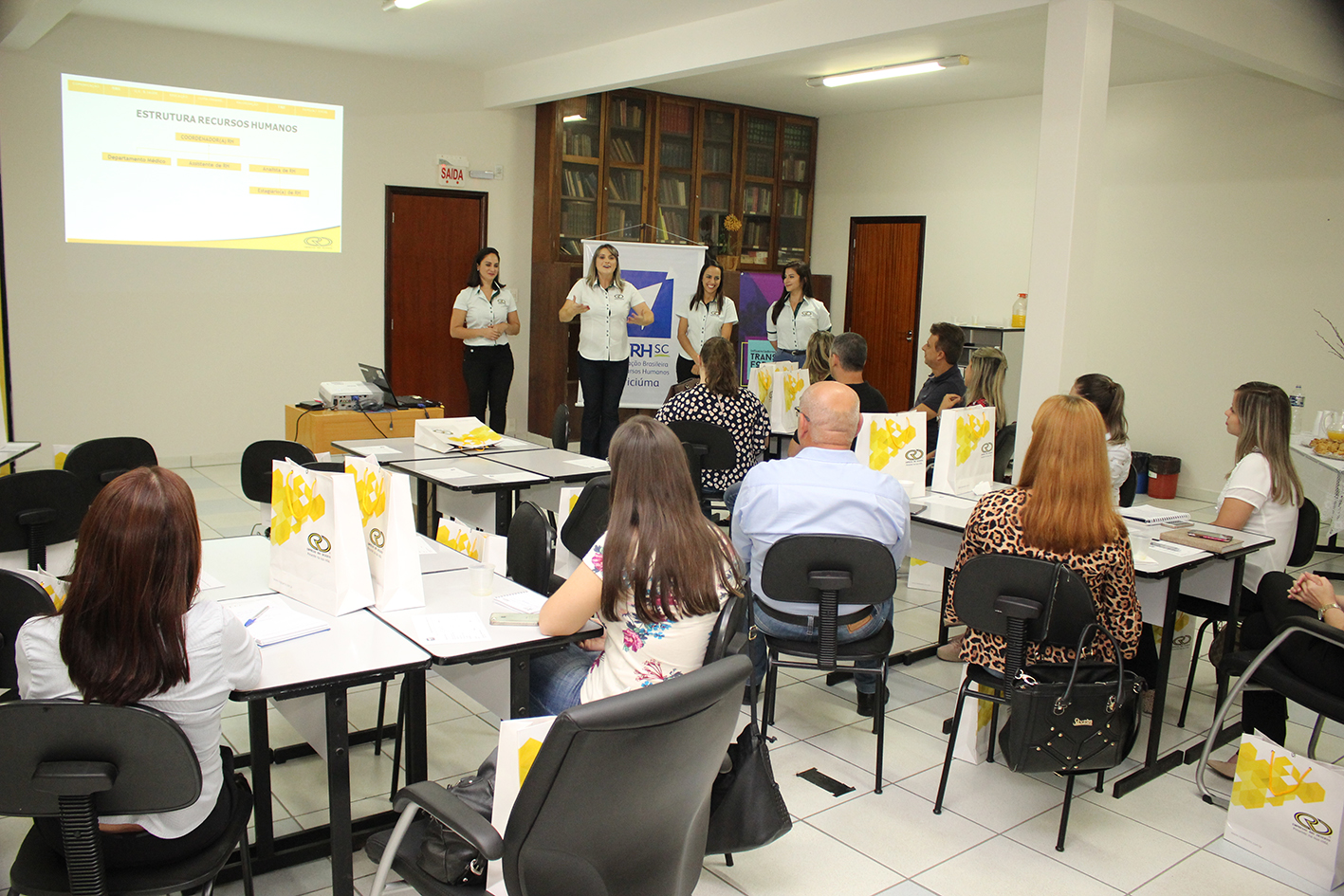 Profissionais de Recursos Humanos de empresas associadas à ABRH (Associação Brasileira de Recursos Humanos) – Regional Criciúma participaram de uma visita técnica nas Empresas Rio Deserto. O encontro aconteceu na noite desta terça-feira, 20, no Escritório Central, e durou cerca de duas horas. Os visitantes foram recepcionados pelas colaboradoras Jaci Baggio Vieira, Alice Constantino Joaquim, Nathalia Silveira Machado e Thais Rozeng da Silva, que compõem o setor de Recursos Humanos das Empresas Rio Deserto. O tema da visita técnica girou em torno das Práticas de Gestão de Pessoas.