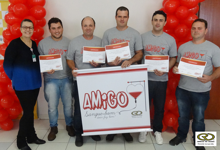Com o objetivo de conscientizar os colaboradores quanto à importância da doação de sangue, as Empresas Rio Deserto lançou, nesta sexta-feira, 7, o Programa Amigo Sangue Bom. O evento foi marcado por uma palestra que detalhou e esclareceu dúvidas sobre o procedimento, e pelas primeiras doações junto ao Hemosc de Criciúma. Ao participar do lançamento do programa, os representantes de cada unidade da empresa receberam o título de “embaixadores” e agora terão a missão de estimular os demais colaboradores a também doar sangue.