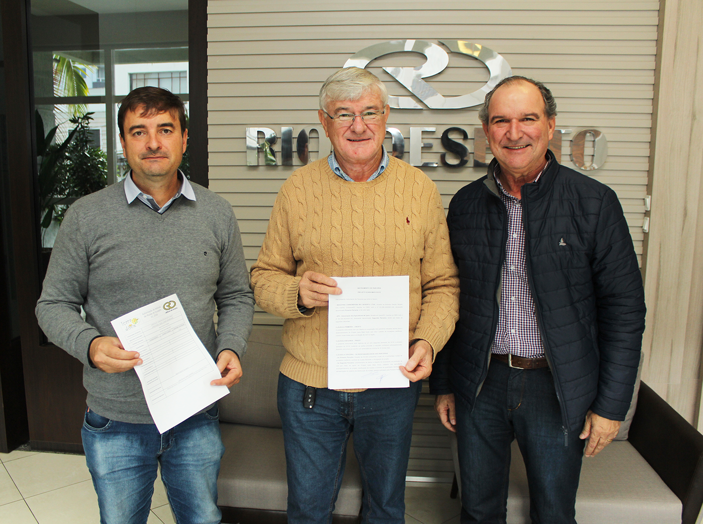 Foi renovada, na manhã desta quinta-feira, 16, a parceria das Empresas Rio Deserto com a Associação dos Apicultores de Içara (API), para a continuidade do Projeto Içara Mais Doce. A partir de agora até o final do primeiro semestre de 2019, as Empresas Rio Deserto doarão 52.500 mudas de eucalipto melífero para a API, beneficiando 42 apicultores. O projeto existe desde 2010.