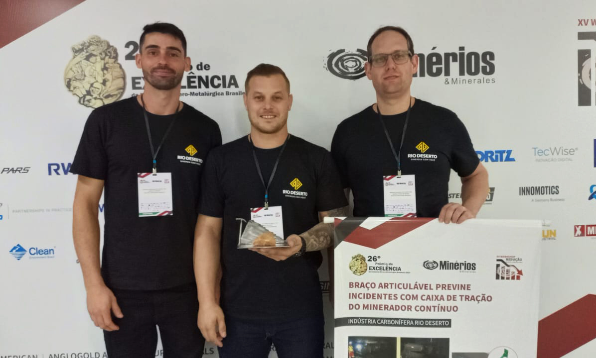 O projeto da Rio Deserto, “Braço articulável para remoção e inserção do conjunto tampa e engrenagem da caixa de tração do minerador contínuo”, foi desenvolvido na Unidade de Extração Mina 101, em Içara, por meio do Programa de Inovação e Qualidade (PIQ), em que os colaboradores são incentivados a desenvolver projetos de melhoria em suas áreas de atuação.