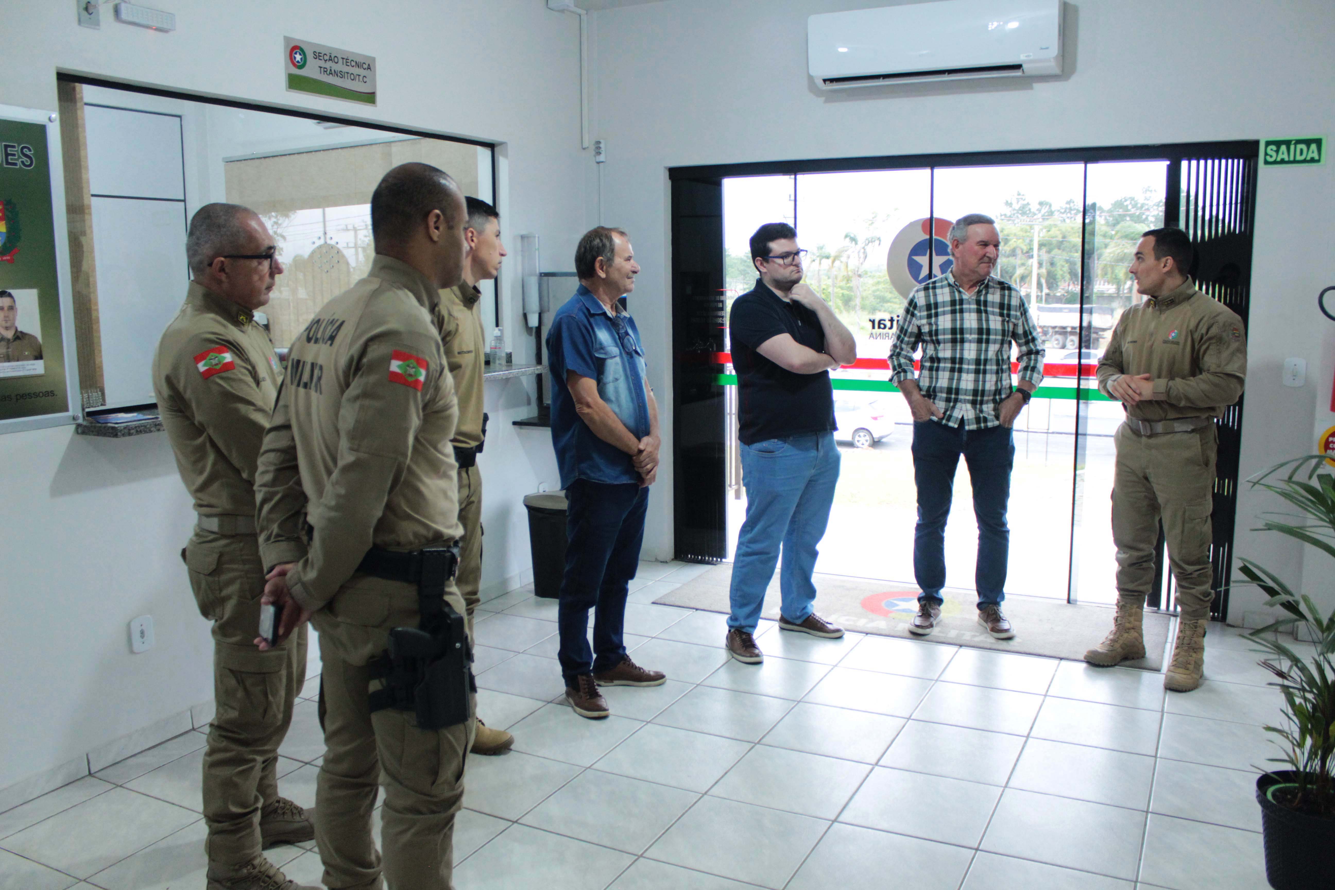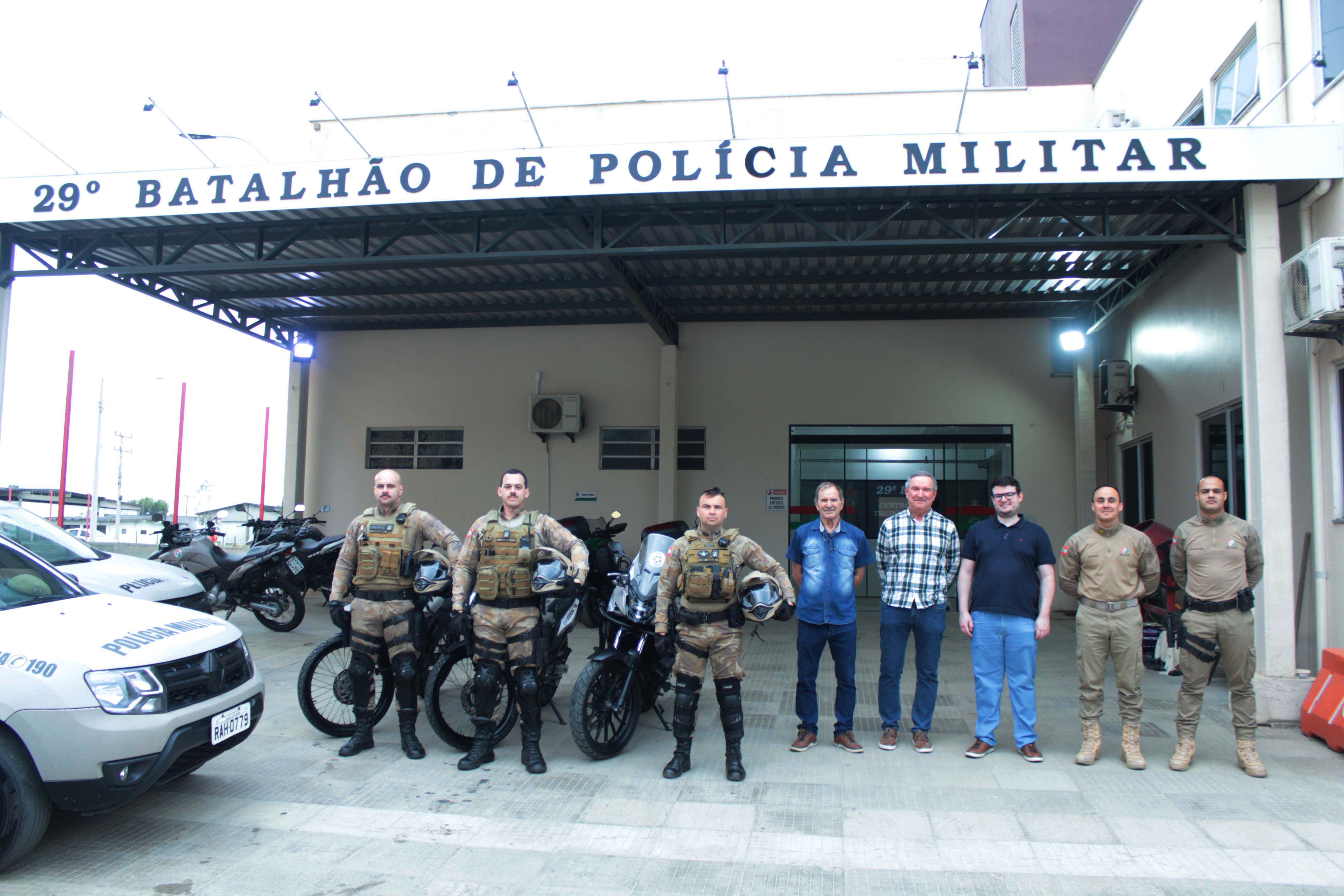Os capacetes foram recebidos pelo tenente-coronel, Eduardo Moreno Persson, o capitão Valdir Cristóvão de Oliveira Júnior, e demais policiais militares presentes no 29º Batalhão de Polícia Militar, com sede em Içara. O presidente do Conselho Comunitário de Segurança (Conseg), Pedro Neves Marques, também acompanhou a entrega.
