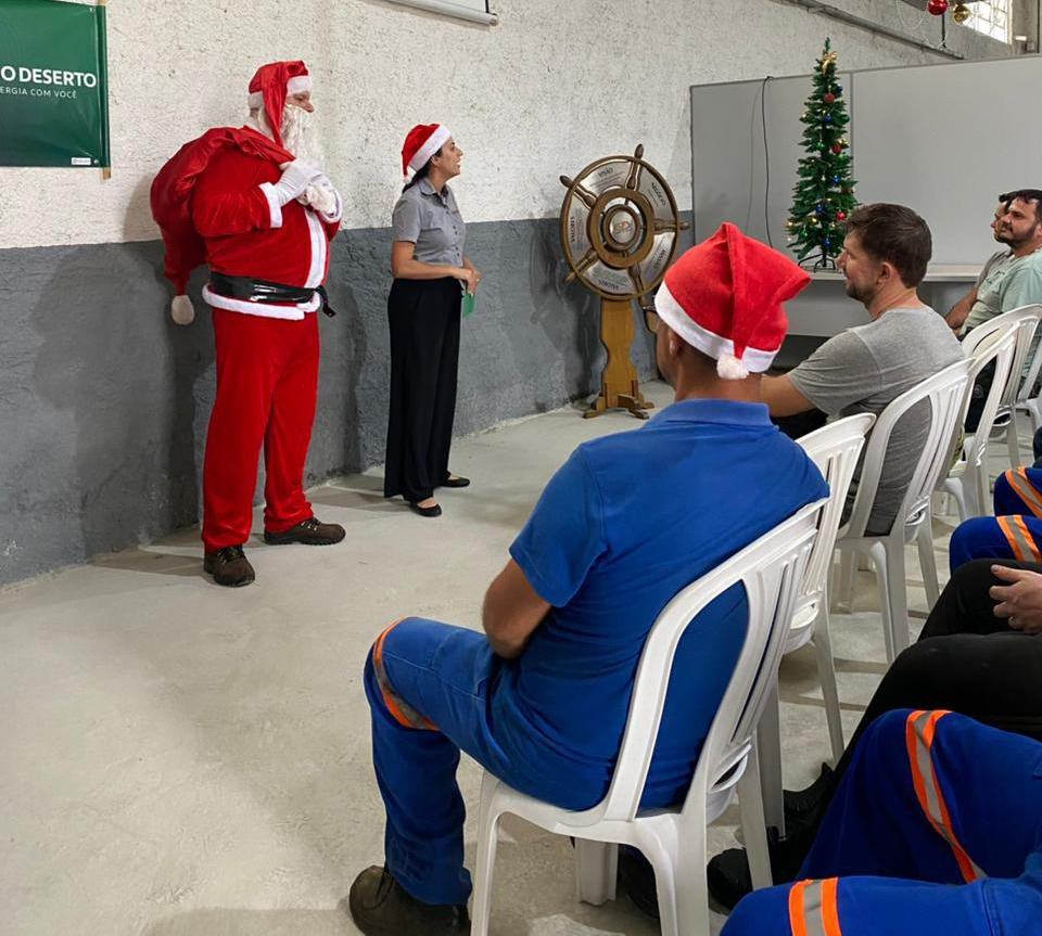 Como forma de reconhecimento e agradecimento pelo trabalho realizado ao longo do ano, a Rio Deserto realizou a entrega dos kits natalinos aos colaboradores. A ação, já tradicional na empresa, reforça os valores de união, cuidado e valorização das pessoas que fazem parte da organização. O kit busca contribuir para a celebração do Natal em família, fortalecendo o espírito de partilha e confraternização que marca este período especial.