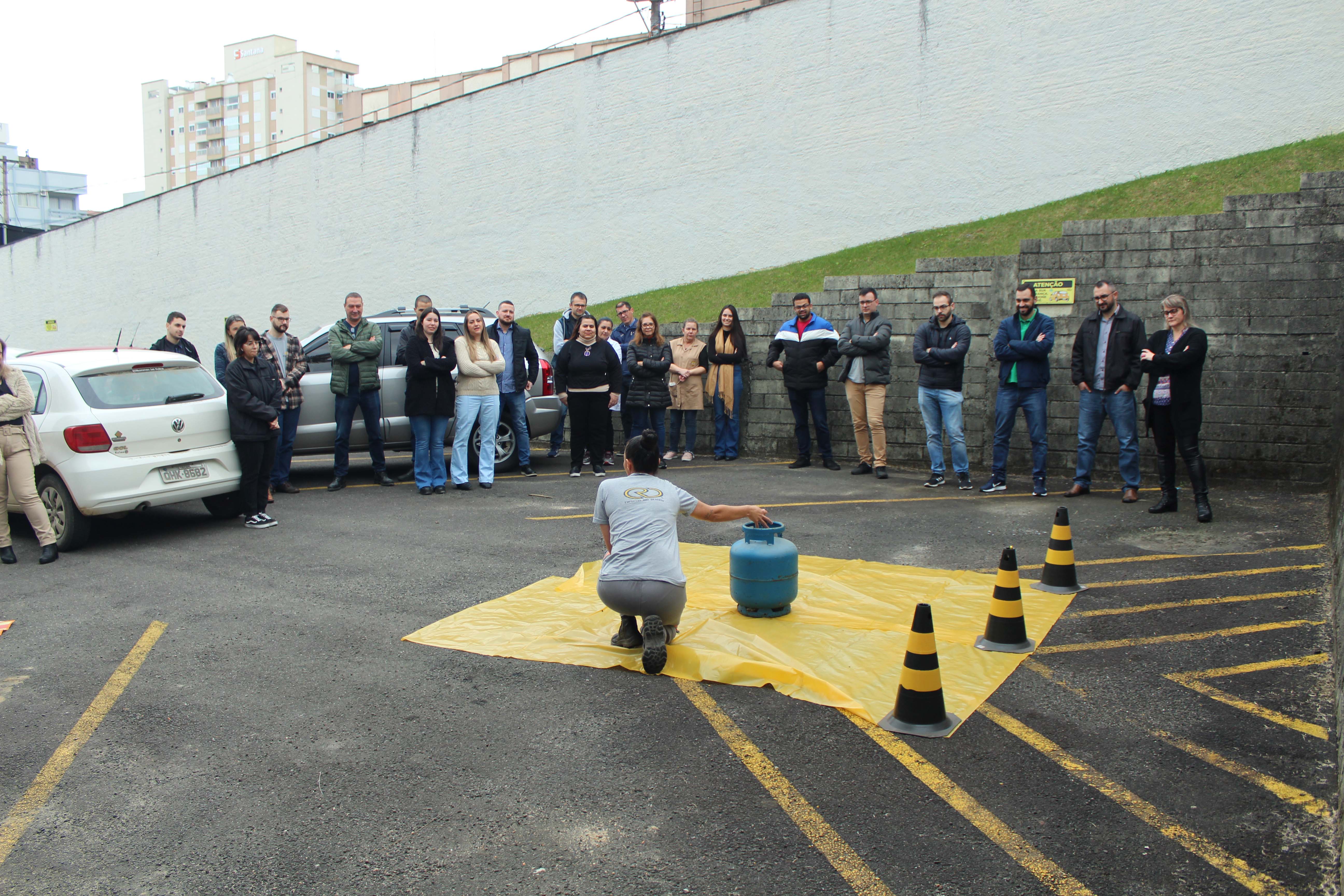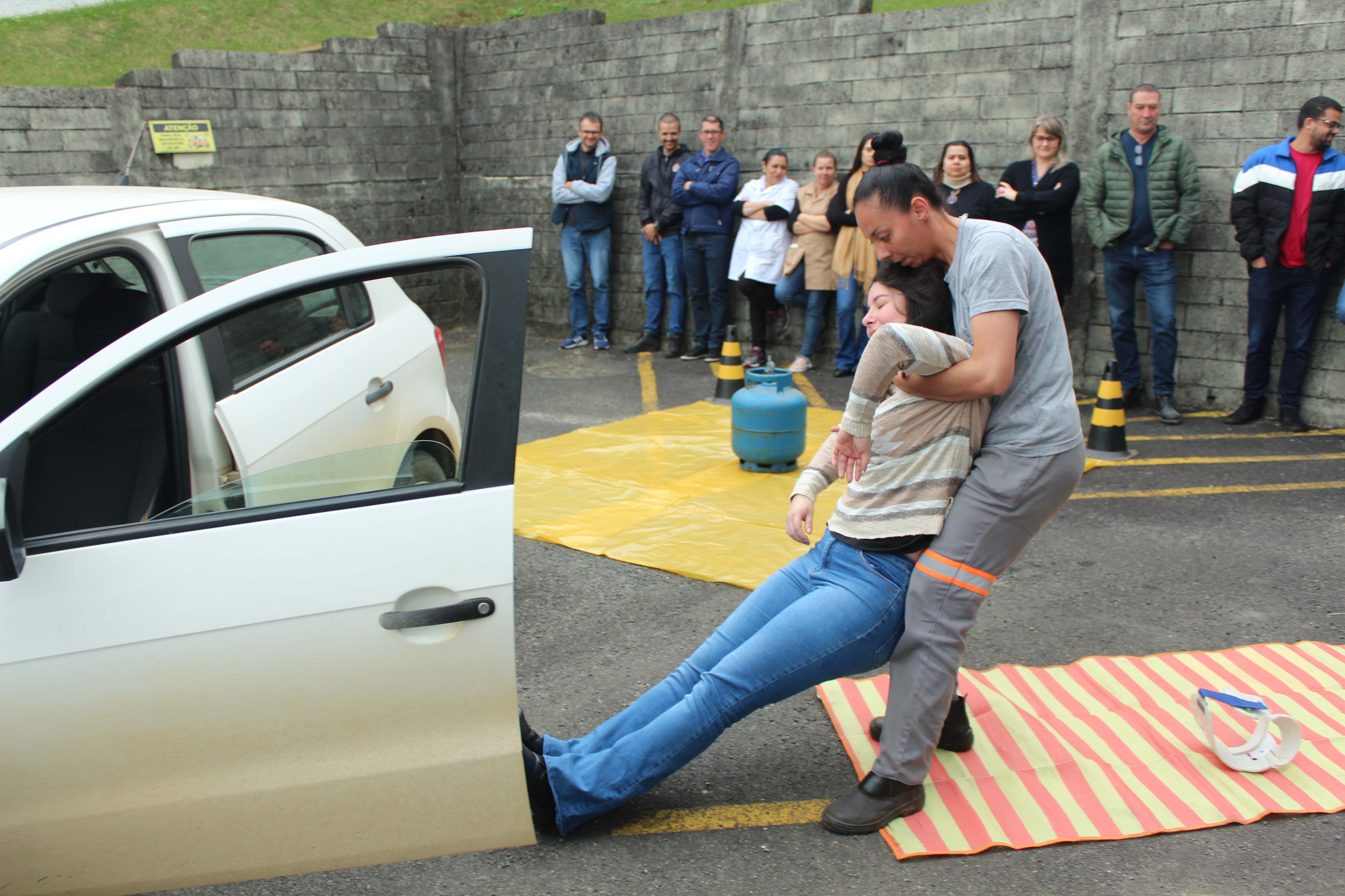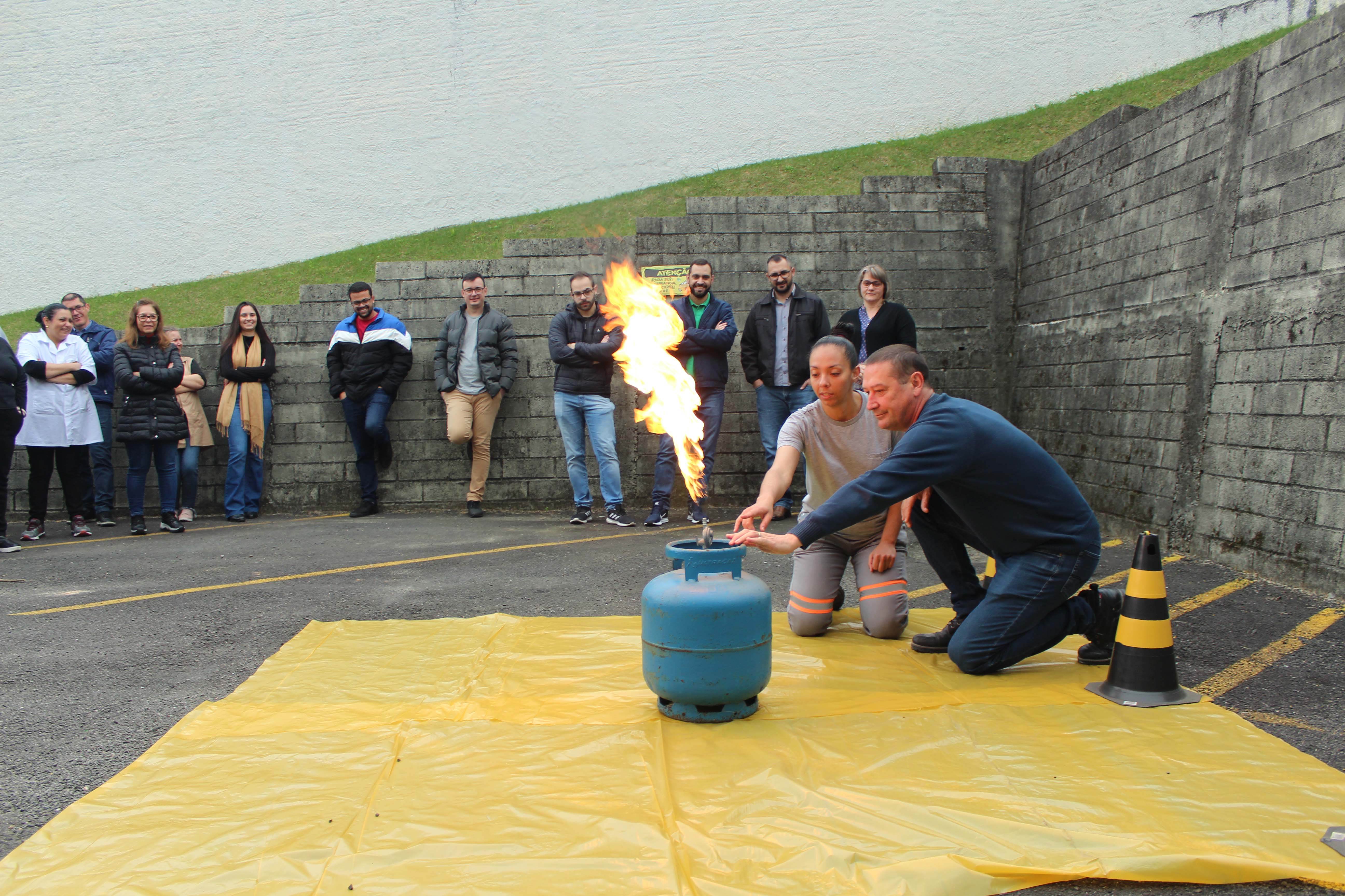 Para a atividade, foi reservado um local do estacionamento, sendo colocado um botijão de gás com chama aberta. “Na prática, foi demonstrado como combater o princípio de incêndio nesse caso específico. Um conhecimento que é muito importante para o dia a dia de todos”, explicou a técnica em segurança do trabalho, Tairine da Silva Motta. Durante o simulado, também foram demonstrados métodos sobre como retirar uma vítima de dentro de um veículo com princípio de incêndio.