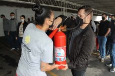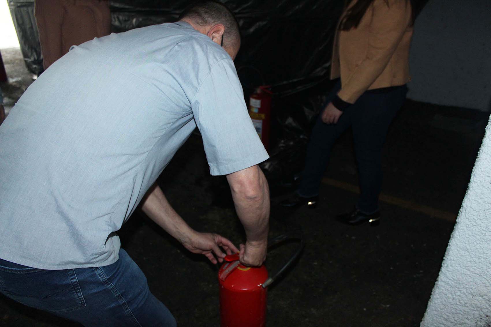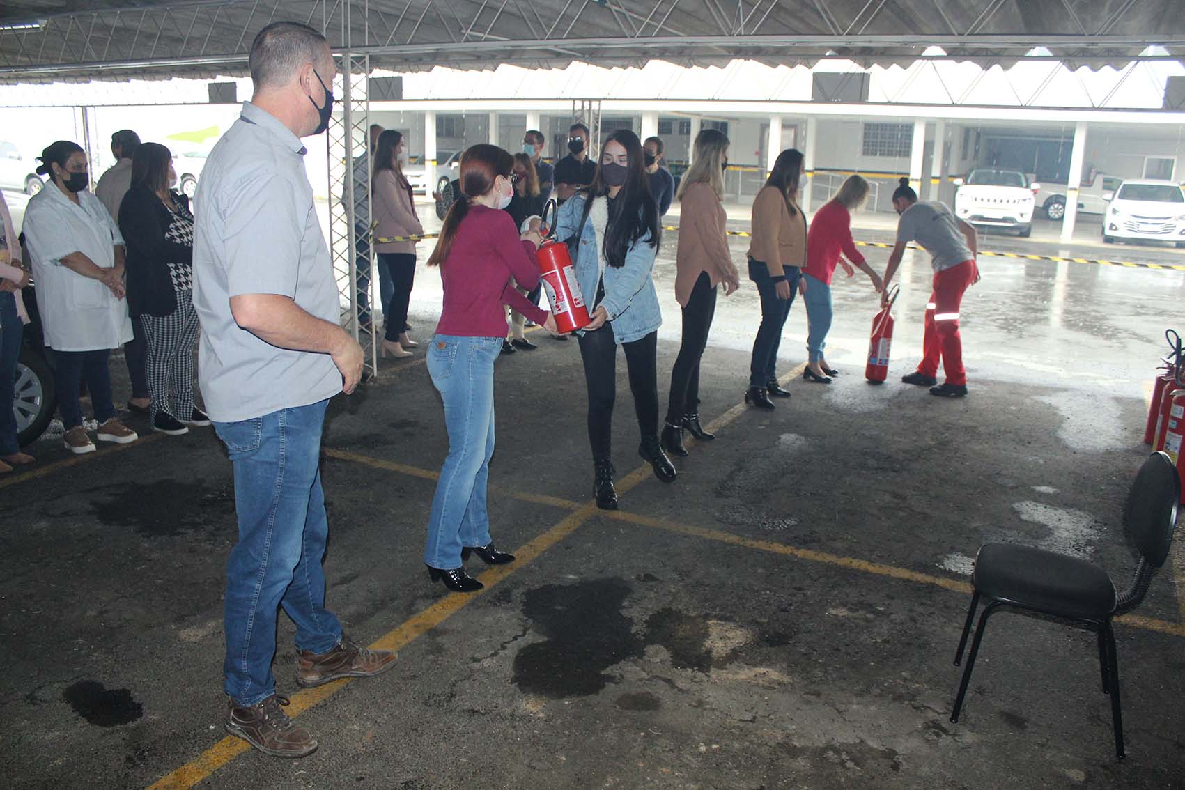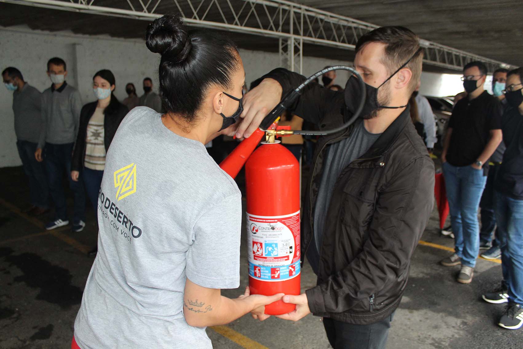 Para a ação, foi montado um espaço no estacionamento, sendo simulado um princípio de incêndio com uma vítima desmaiada. Após a sirene de emergência ser acionada, aconteceu o processo de evacuação do prédio, com todos os colaboradores se reunindo no ponto de encontro. Na sequência, em grupos, foi realizado o manuseio dos extintores de incêndio e o resgate da vítima.