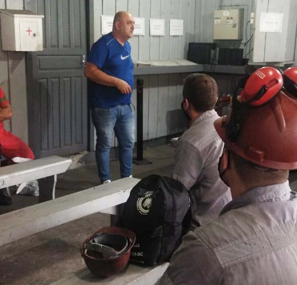 A conversa com os colaboradores aconteceu durante o DDSS (Diálogo Diário de Saúde e Segurança), no início de cada turno. “No fim de ano, quando as pessoas já estão pensando em confraternizações e encontros, é ainda mais importante fortalecer o assunto segurança, para que sigam sempre com muita atenção às atividades”, disse Rampinelli. A iniciativa do Sindicato e da Federação é realizada anualmente, sempre nesta época, junto às carboníferas.