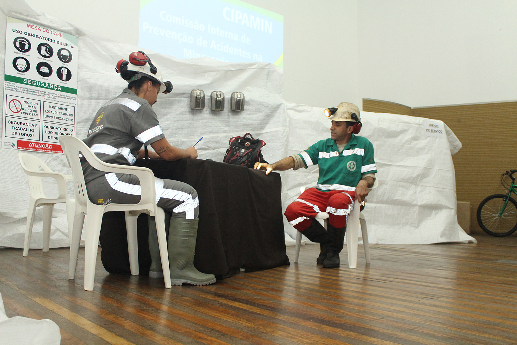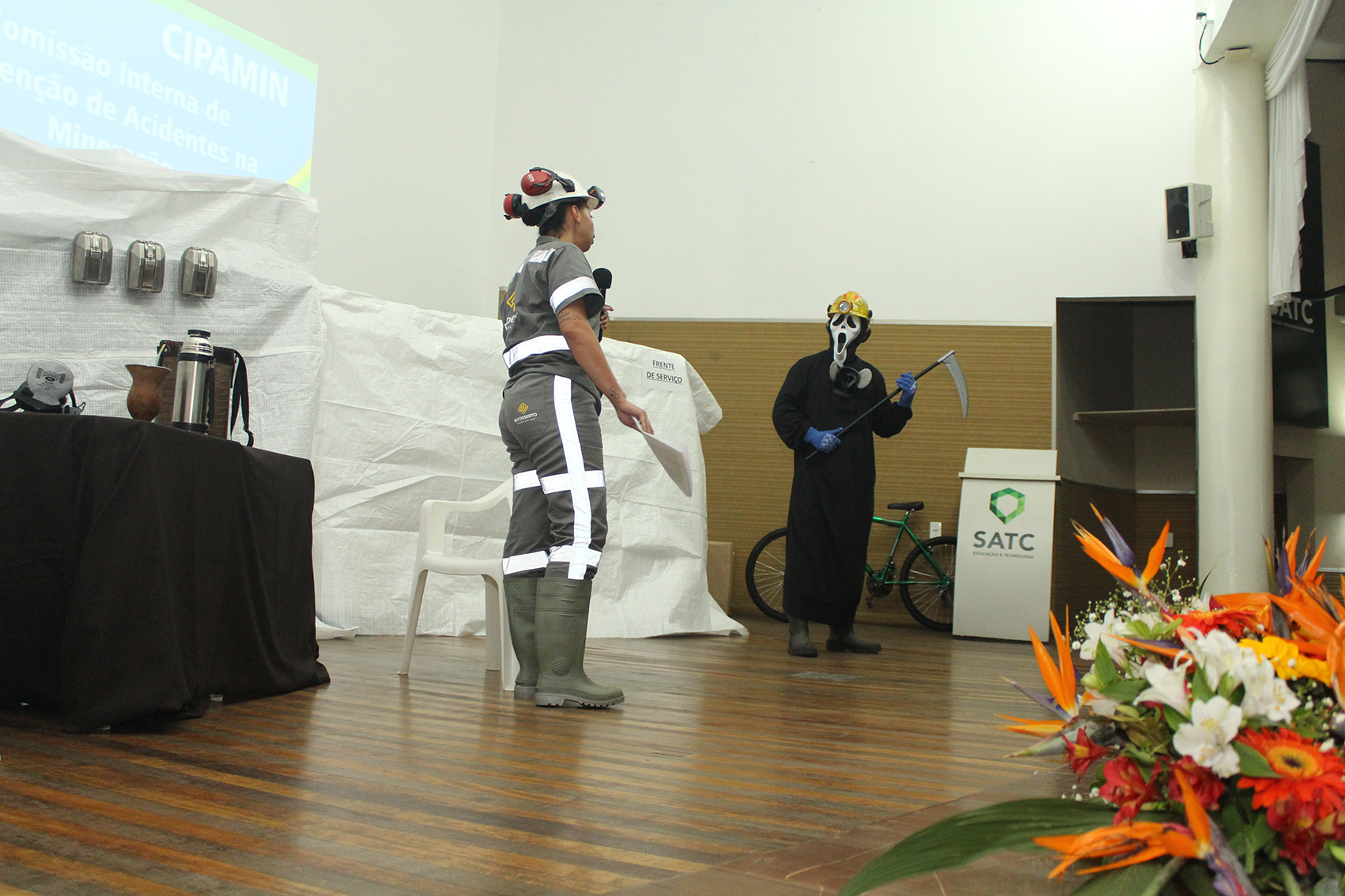 Um teatro apresentado por colaboradores da Rio Deserto marcou o fechamento do 19º Seminário da Comissão Interna de Prevenção de Acidentes na Mineração (CIPAMIN), realizado de quarta a sexta-feira, 24 a 26 de julho, na Associação Beneficente da Indústria Carbonífera de Santa Catarina (SATC). O evento reuniu cerca de 100 mineiros, representantes das carboníferas da região de Criciúma, além de representantes da Comissão Regional do Setor Mineral (CRSM) e bombeiros. A CIPAMIN é realizada anualmente com o intuito de difundir boas práticas de segurança e saúde, bem como de preparar os membros das CIPA´s para uma atuação proativa.